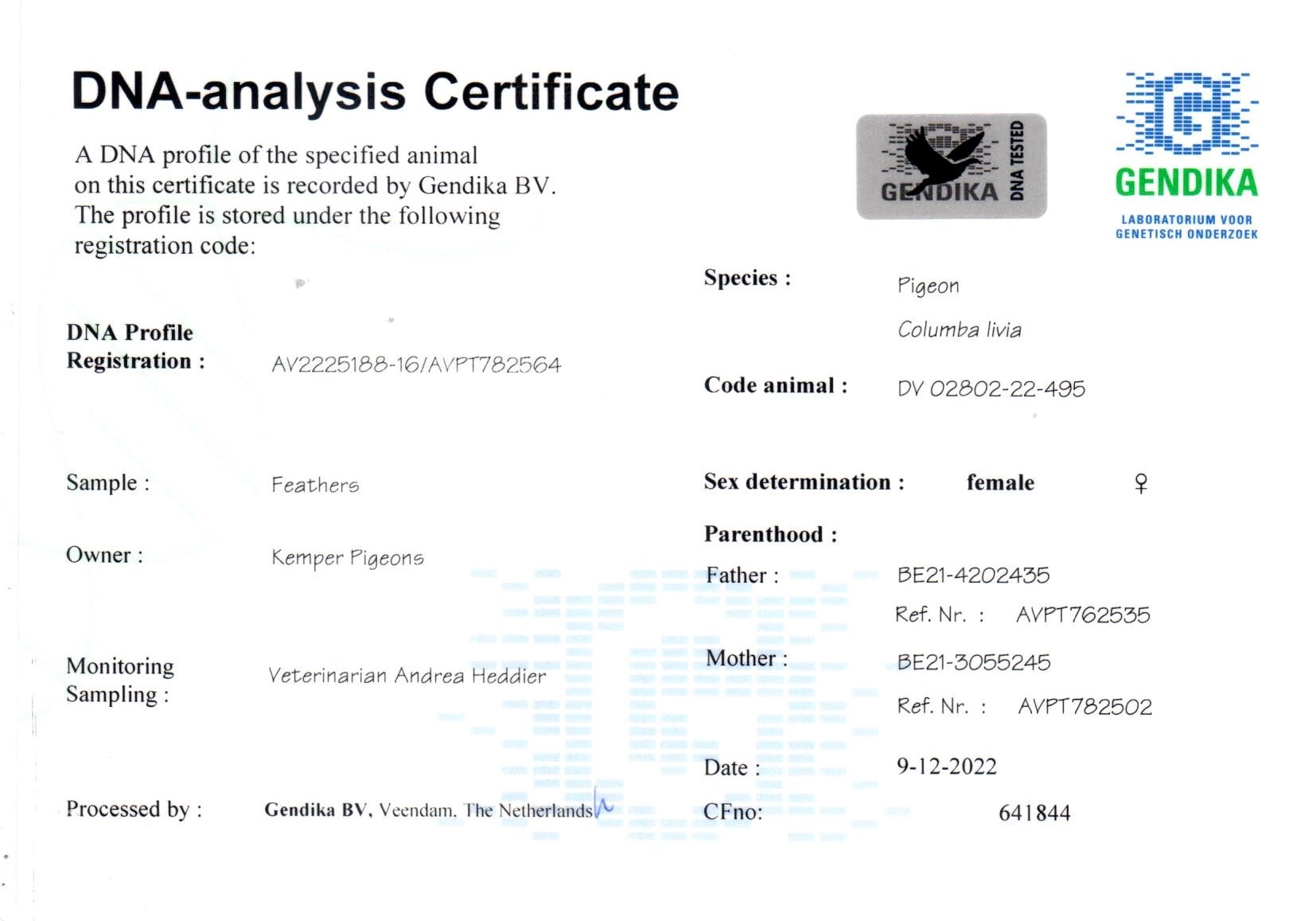 Vader BE21-4202435 – PIPA Breeding & Kemper Pigeons