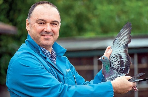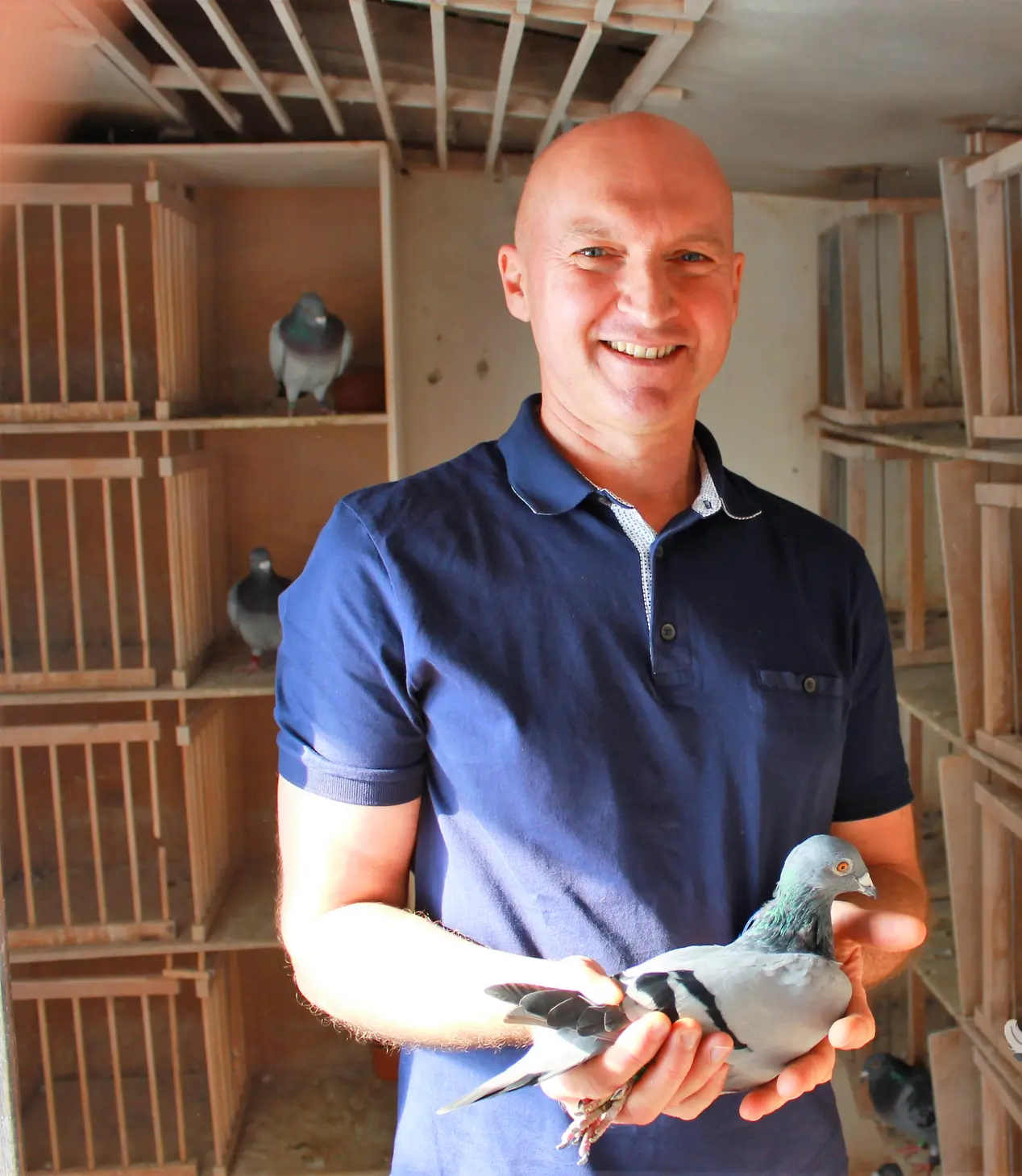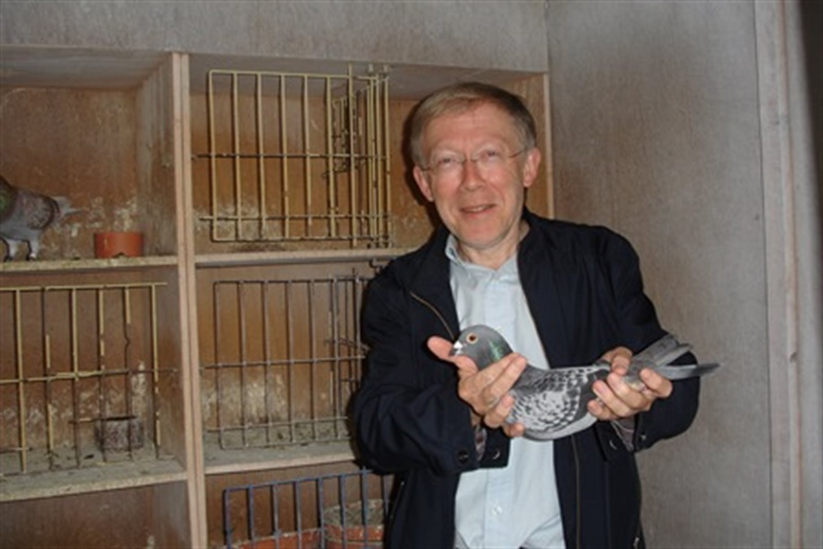 Deze sympatieke duivenmelker speelt kopprijzen van 350 km tot Barcelona.