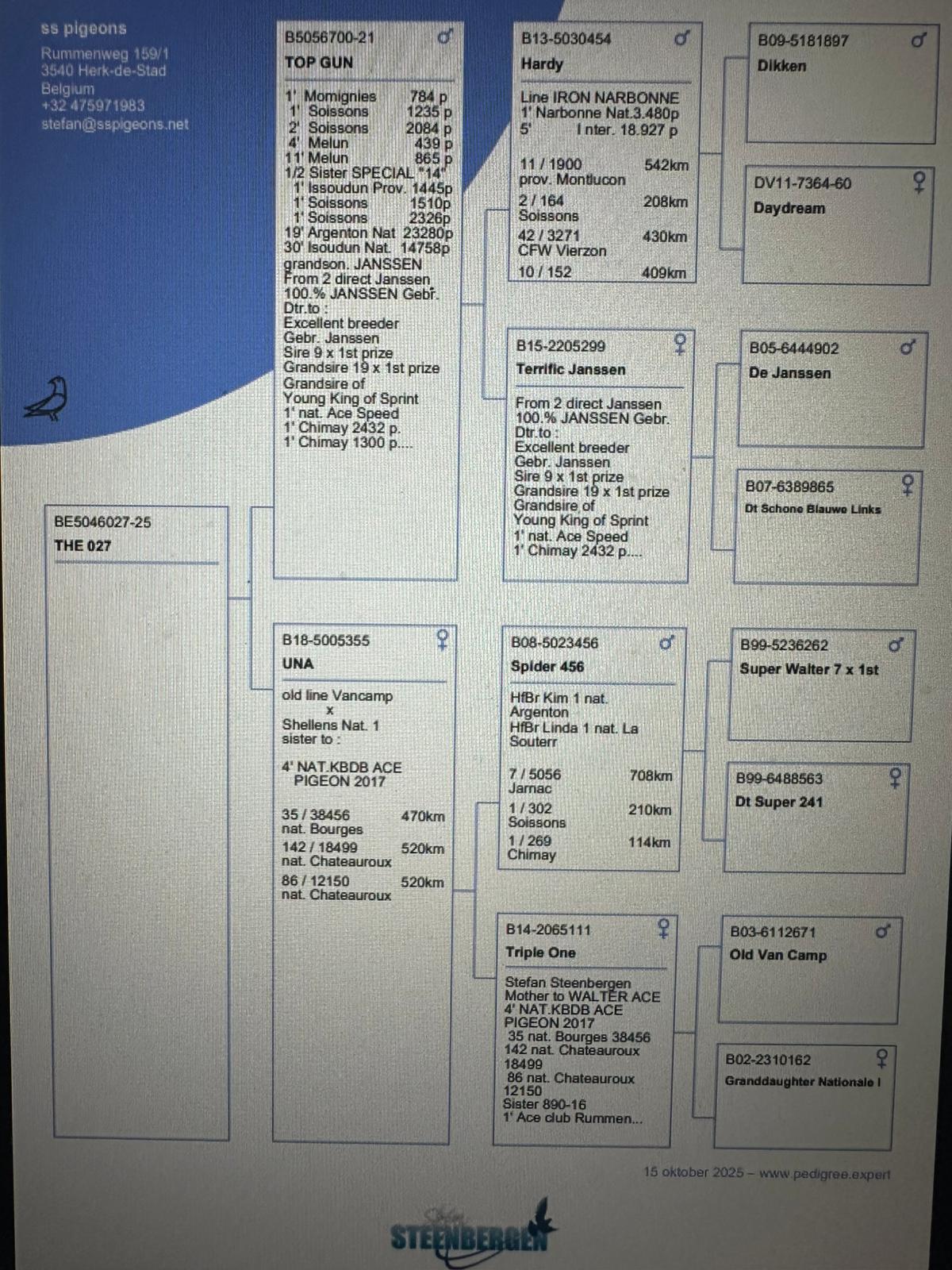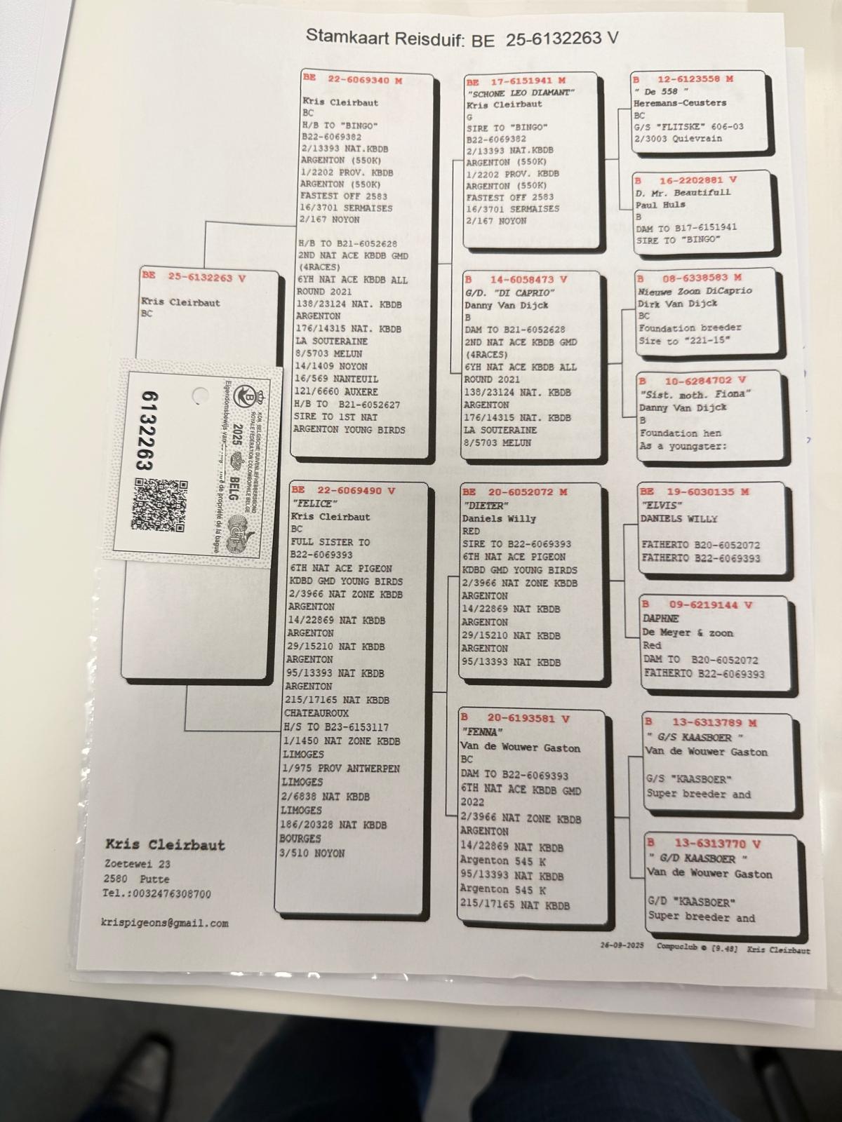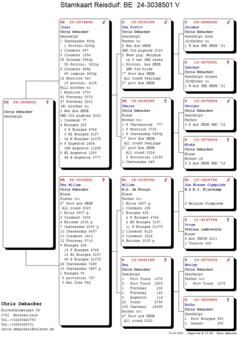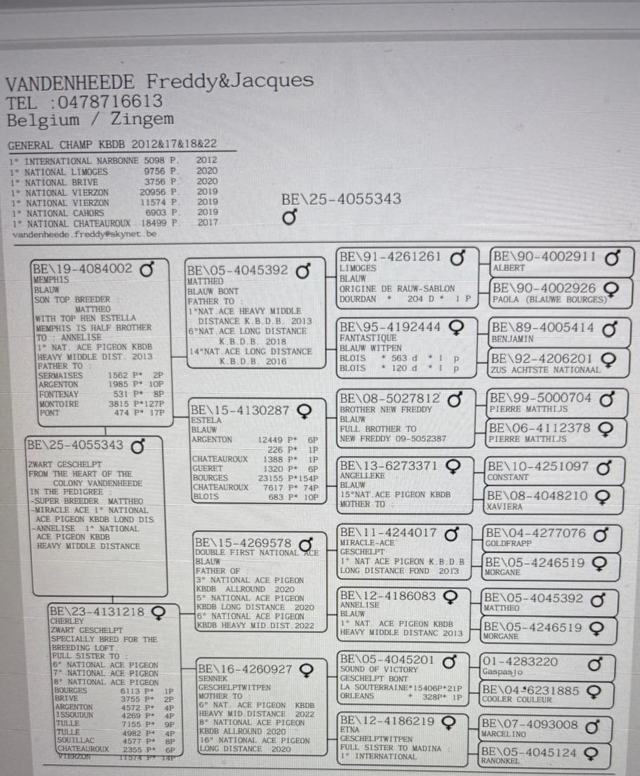 Een absolute topper met een schitterend palmares en knappe vermeldingen in de nationale kampioenschappen o.a. 1ste Nationale Asduif Fond.