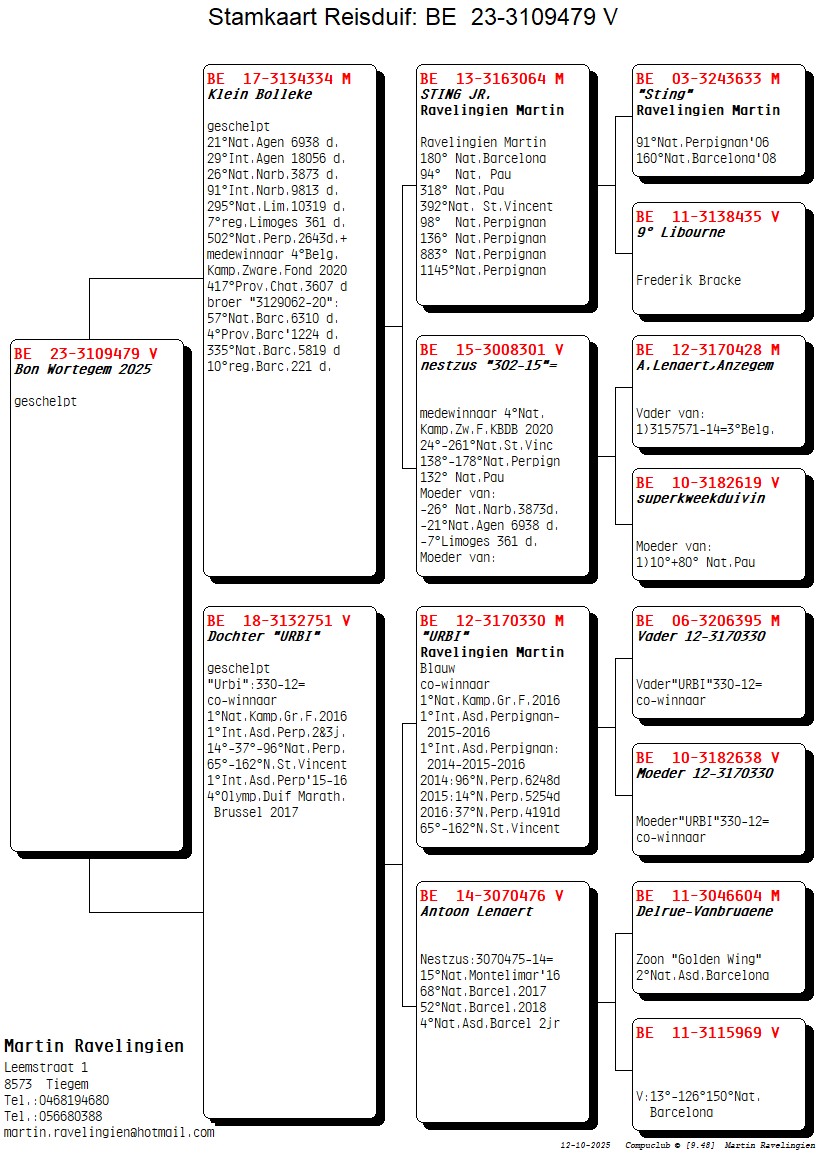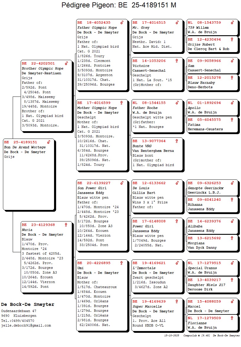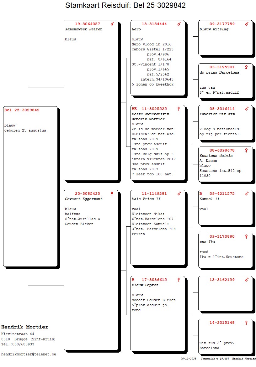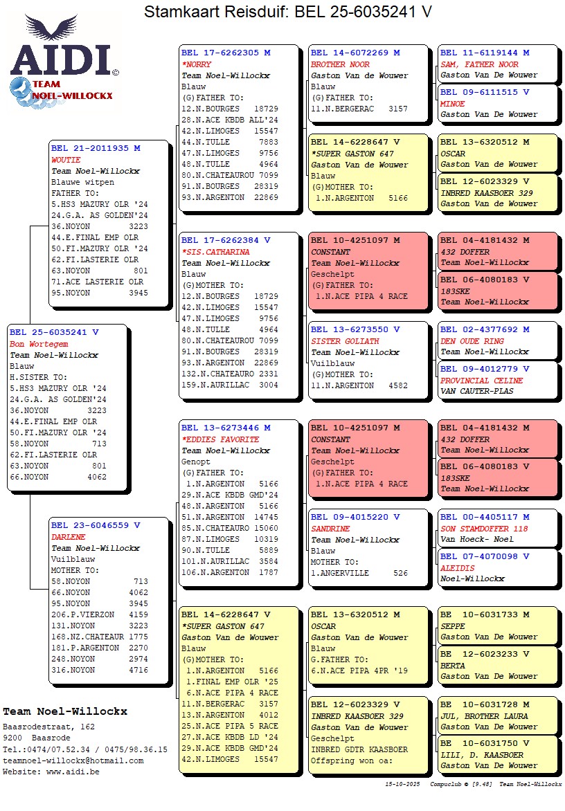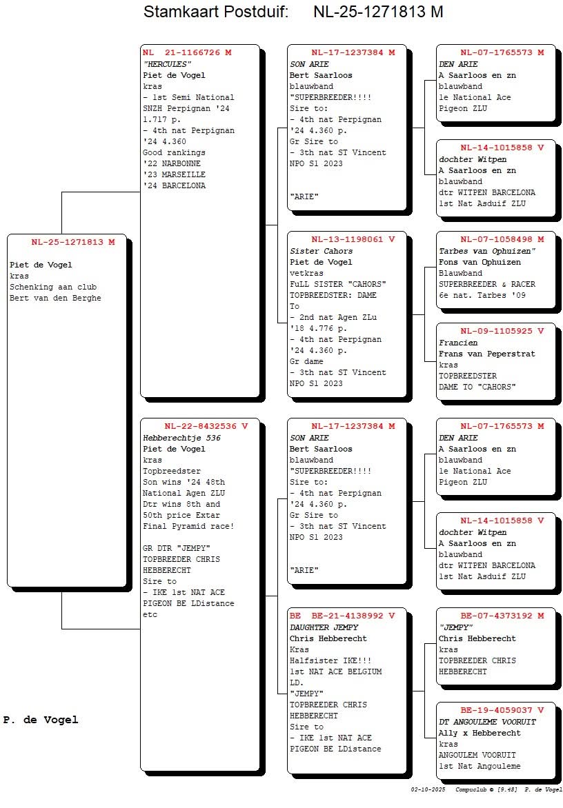 Een absolute topper met een schitterend palmares en knappe vermeldingen in de nationale kampioenschappen o.a. 1ste Nationale Asduif Fond.