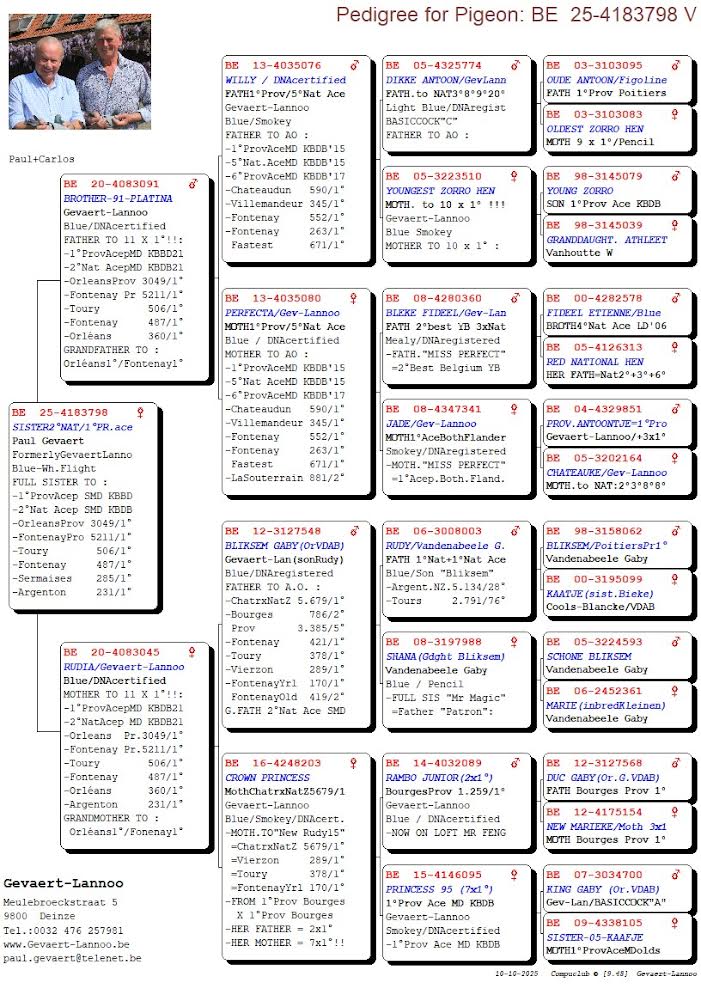 Voor Wortegem schenk ik iets speciaals : uit dit koppel kweek ik reeds 5 jaar na elkaar één of meerdere eerste prijsvliegers, dit op alle afstanden.