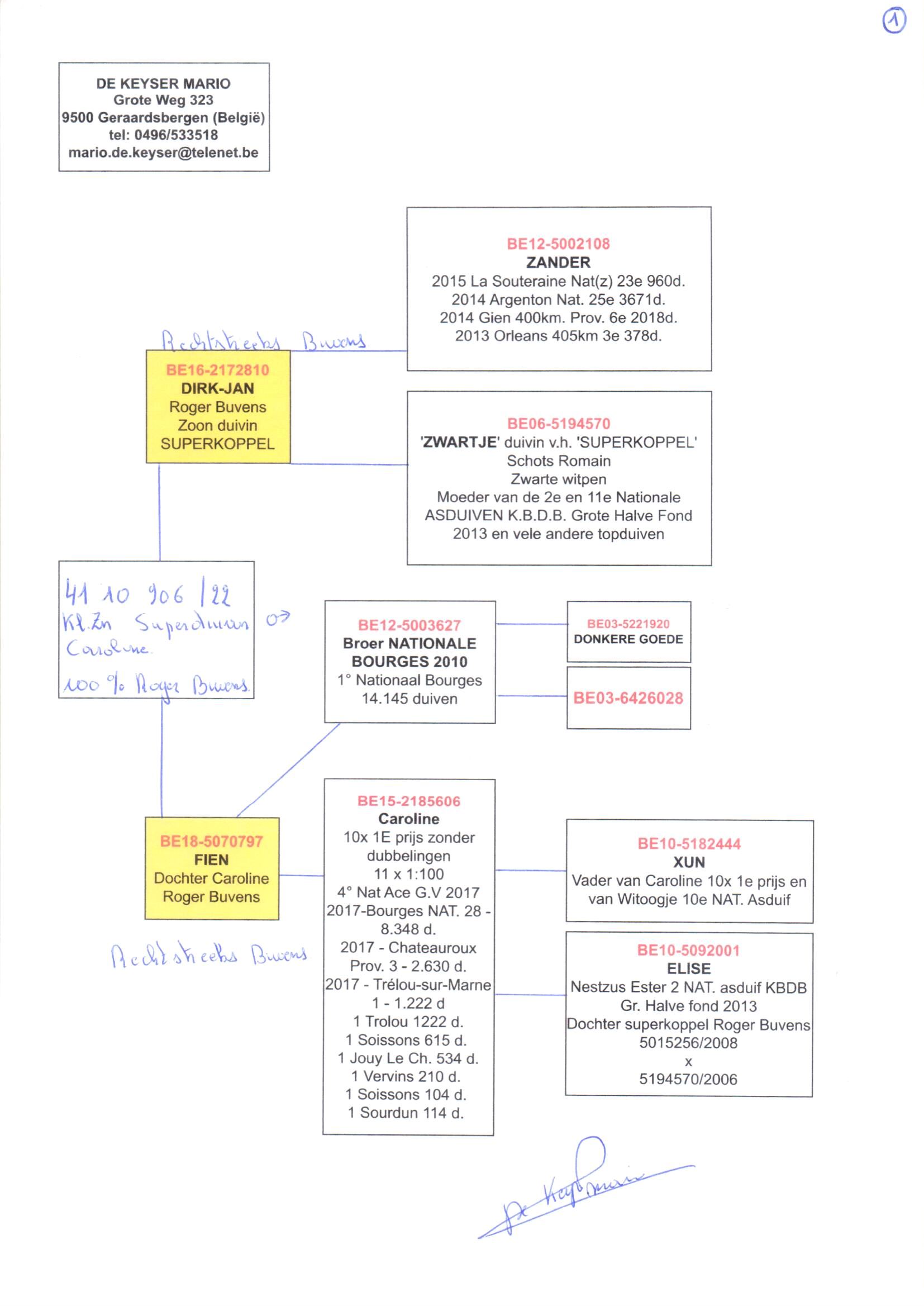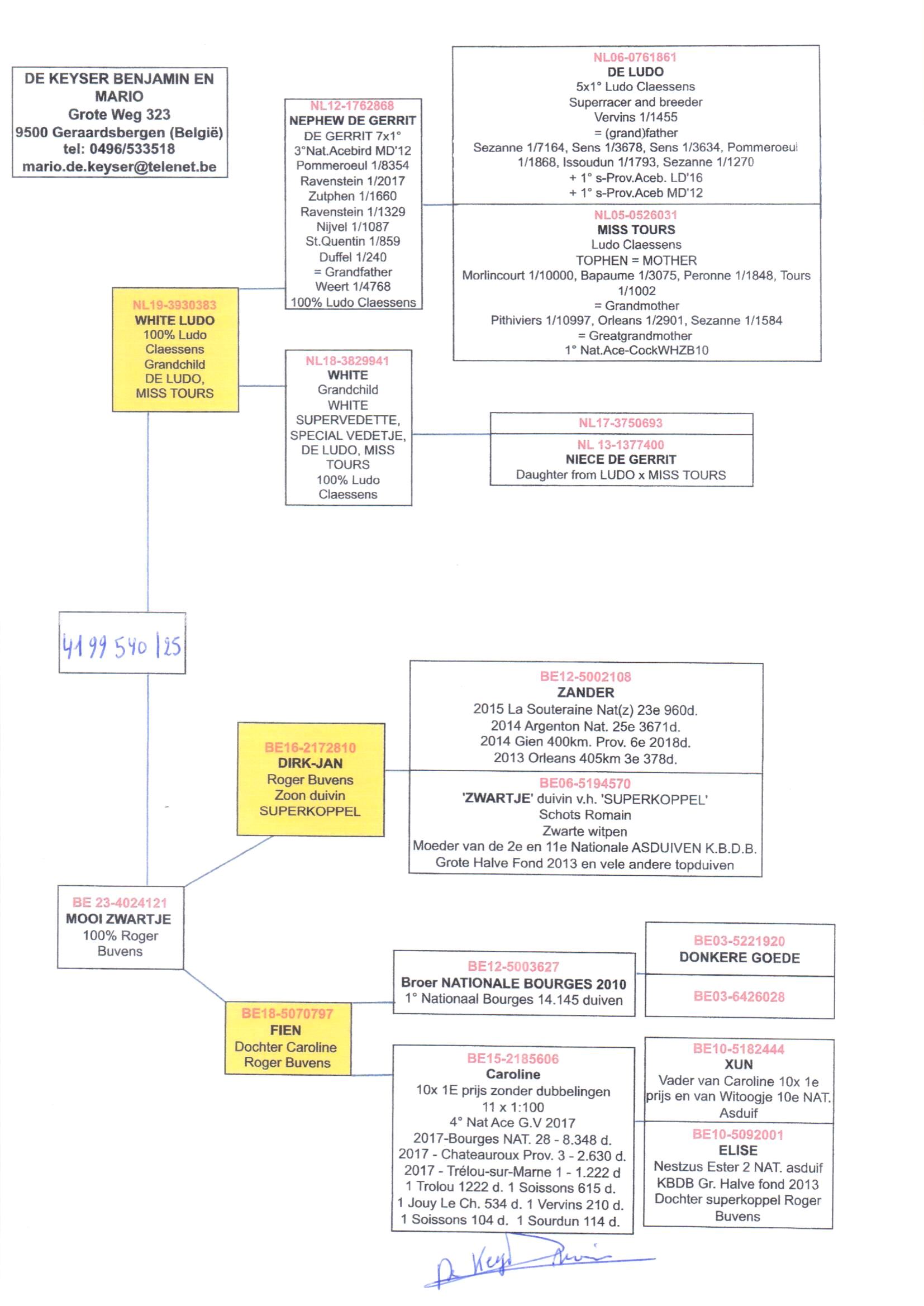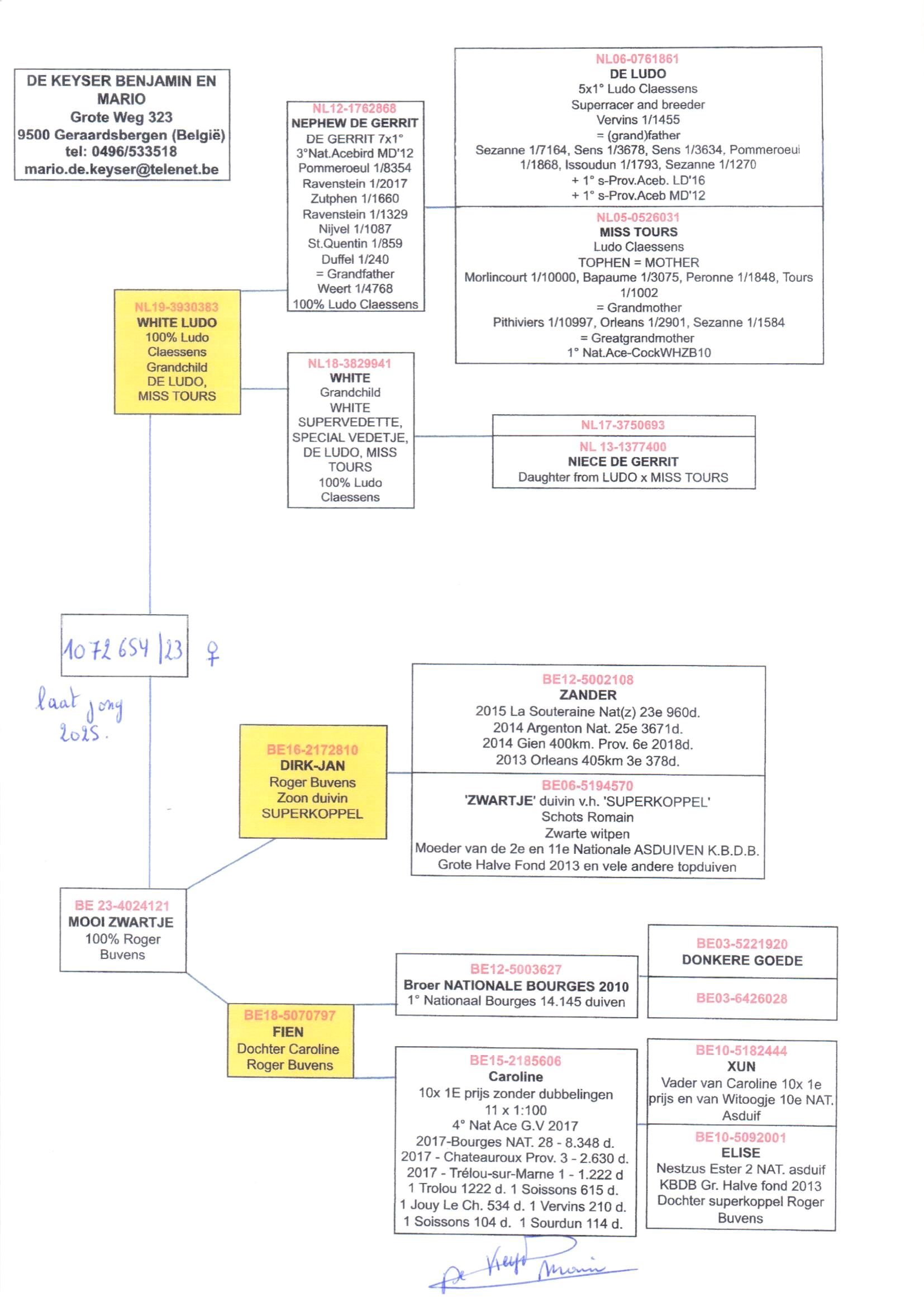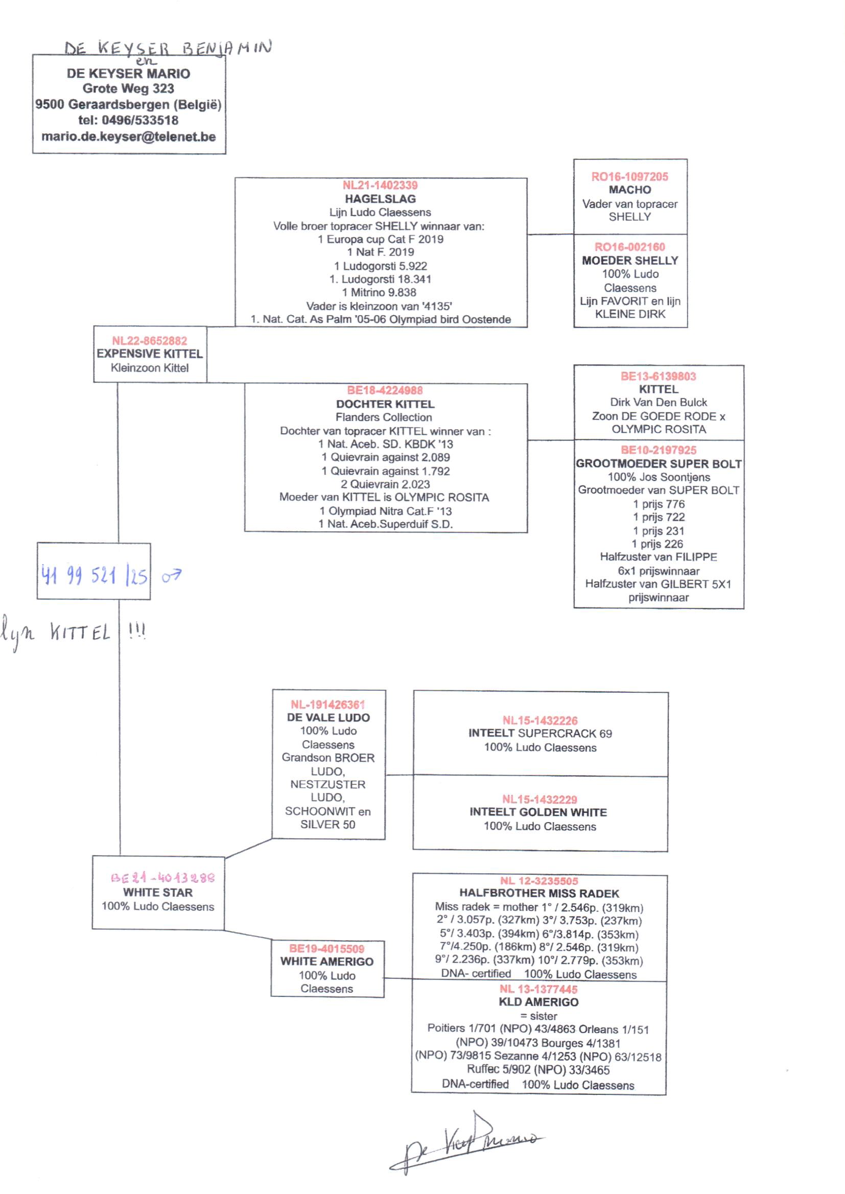 · Vader is kleinzoon van ‘4135’; 1° Nat Cat As Palm ’05-’06 Olympiade duif Oostende