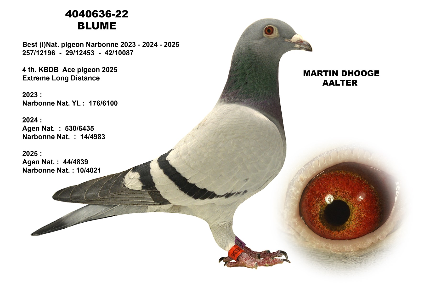 Martin Dhooge (Ursel, AALTER) heeft met BLUME de beste Narbonne duif van de afgelopen 3 jaren