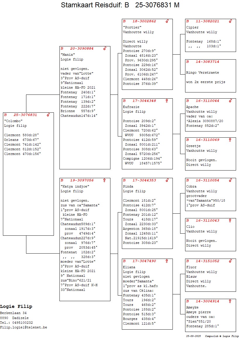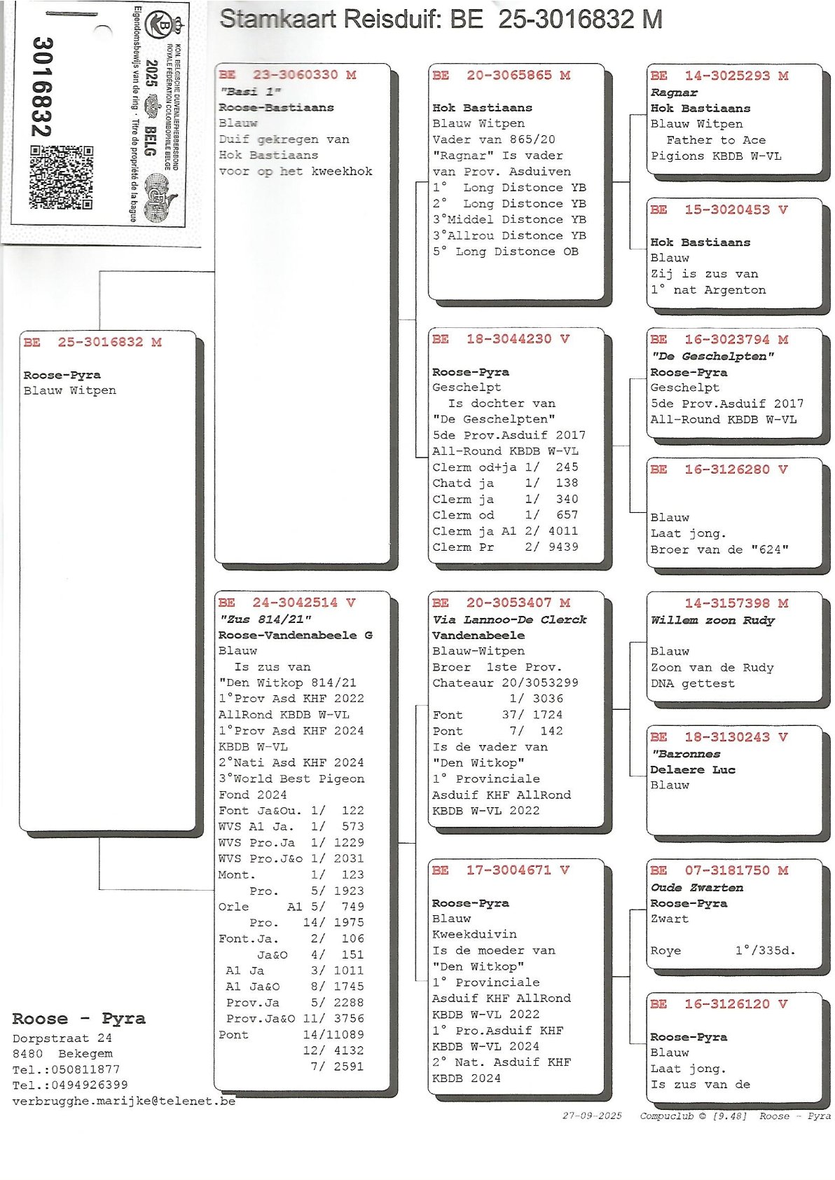 In 2025: 1° Provinciaal Kampioen zware fond jaarse KBDB West-Vl