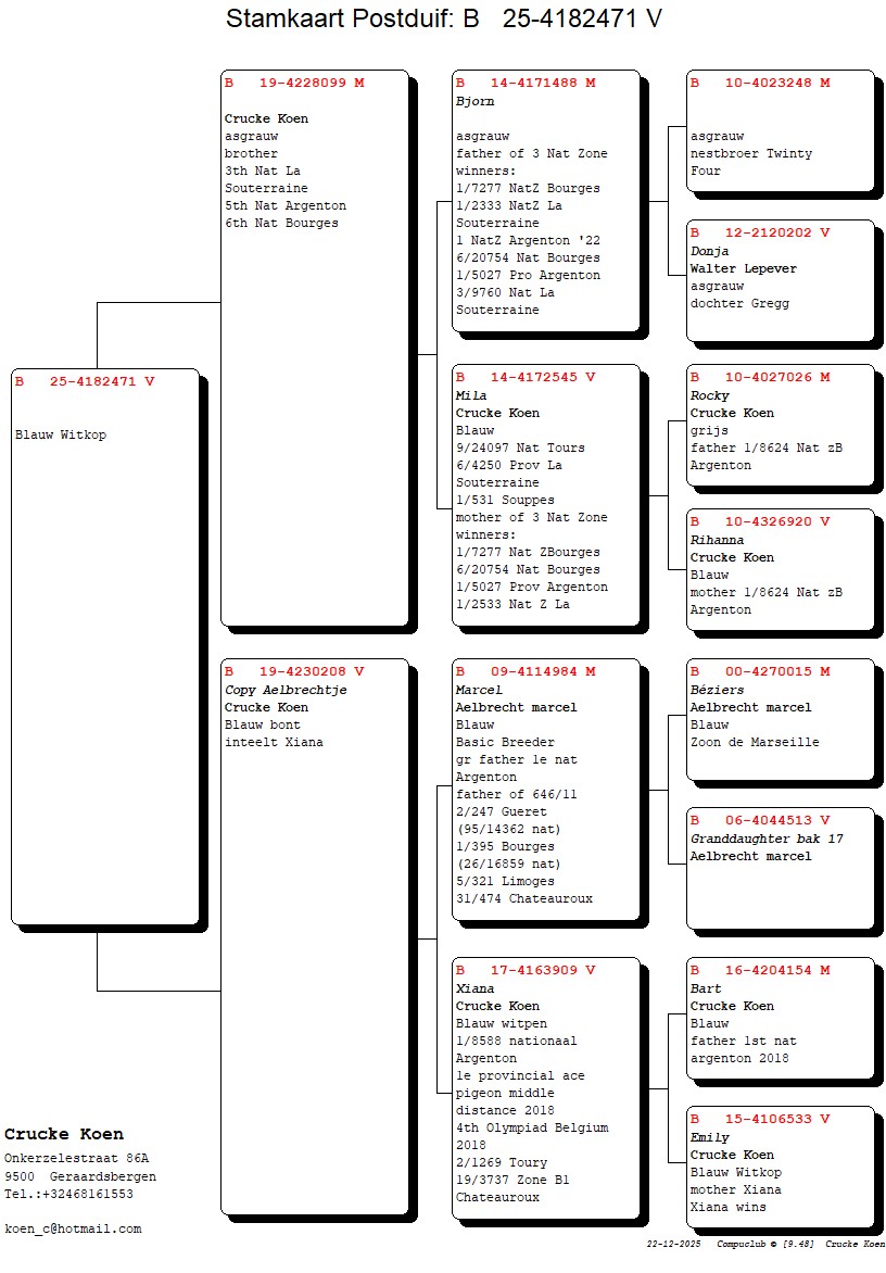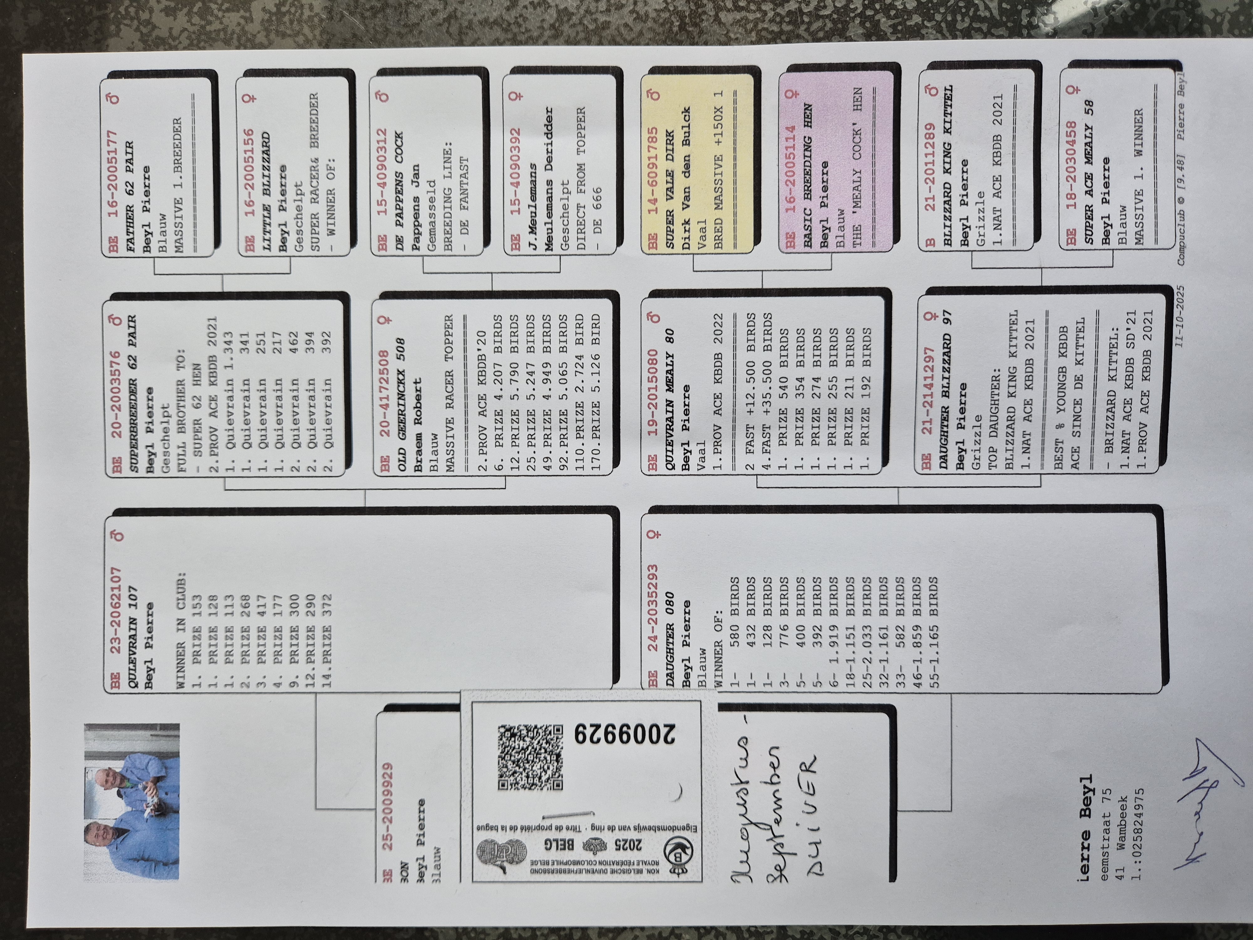 3e kampioen 1 + 2 Zware Halve Fond bij de oude, 4e bij de jaarse en 7e bij de jonge
