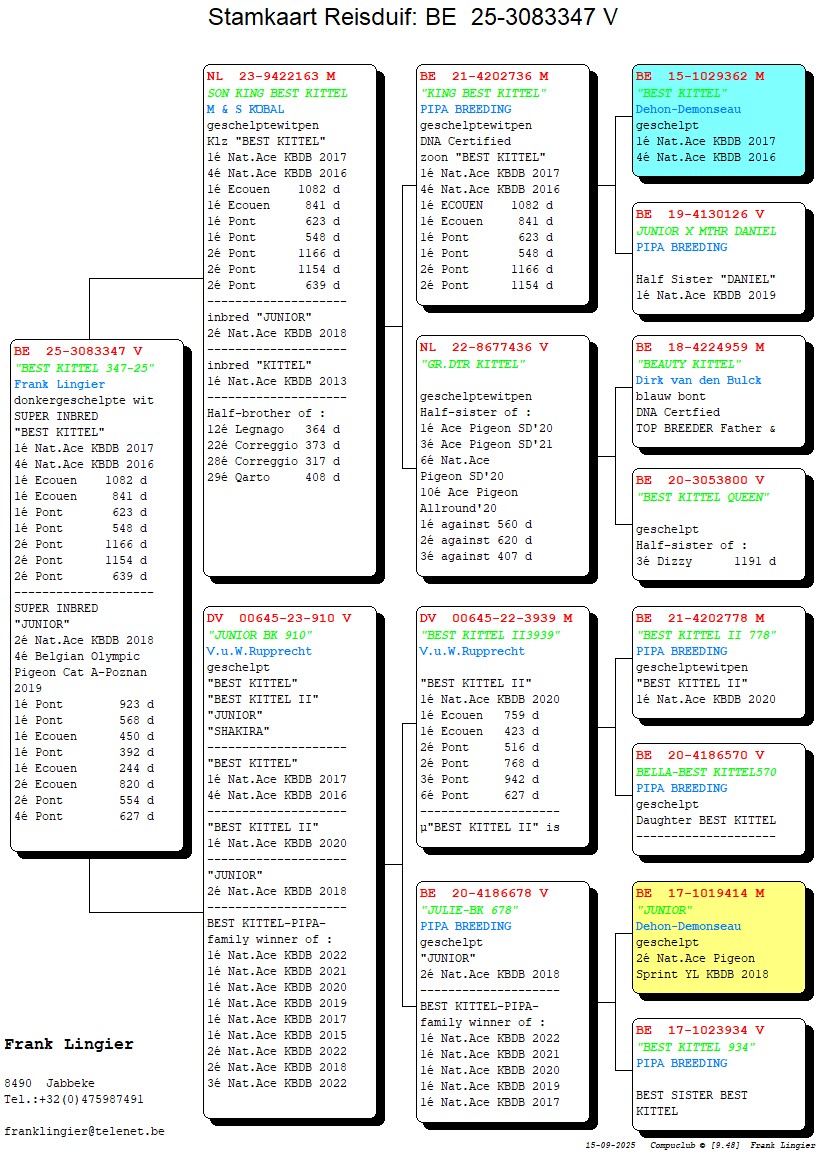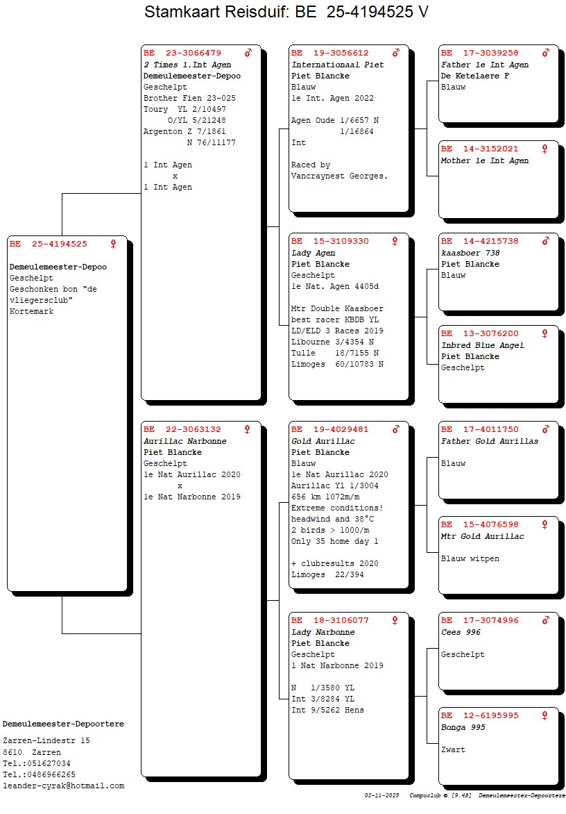Dat ondervonden ook Galle-Wynants toen een duiver uit samenkweek met Marnik de 1°reg., de 1°prov., en de 8°nationaal Barcelona vloog in keiharde omstandigheden.