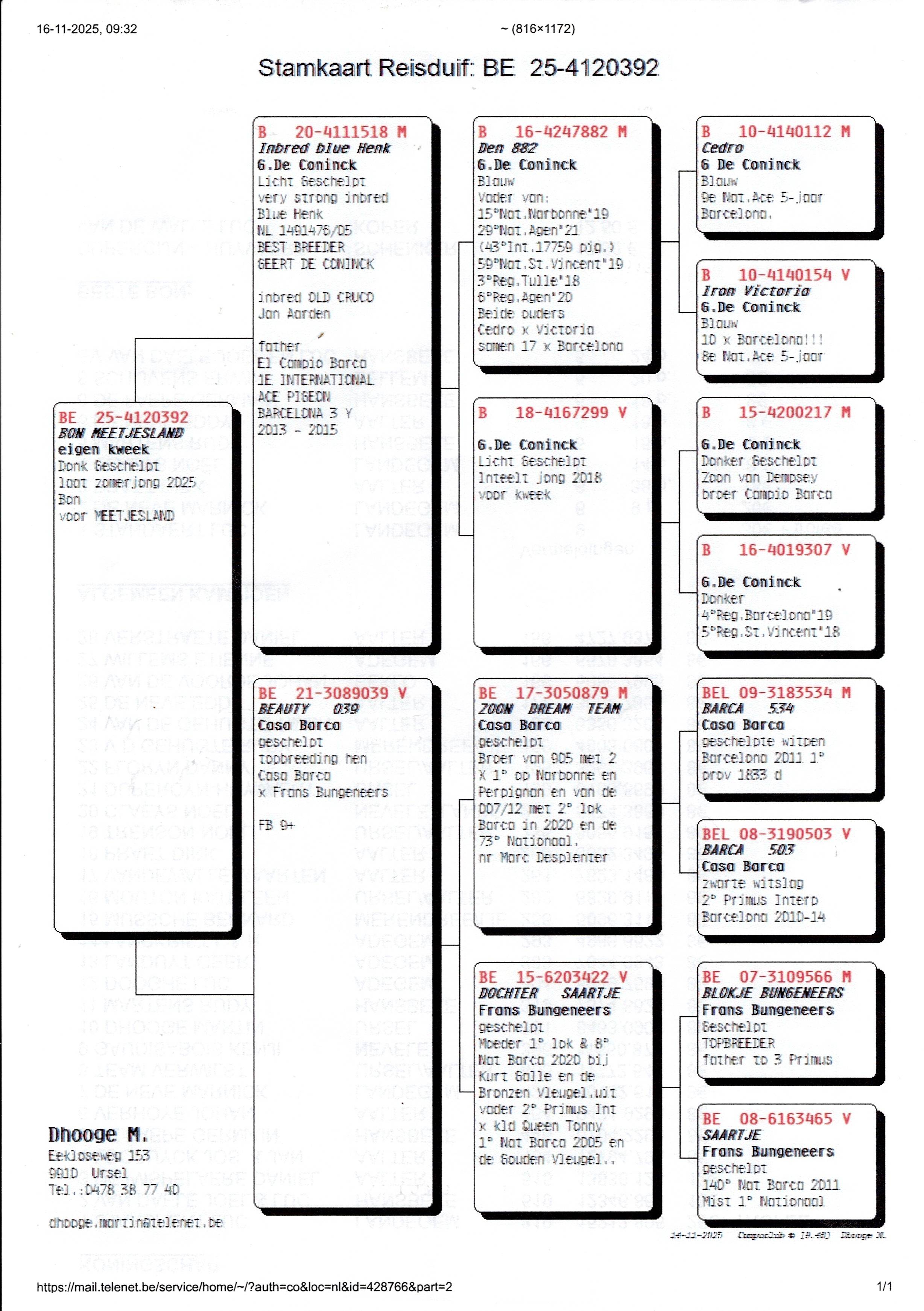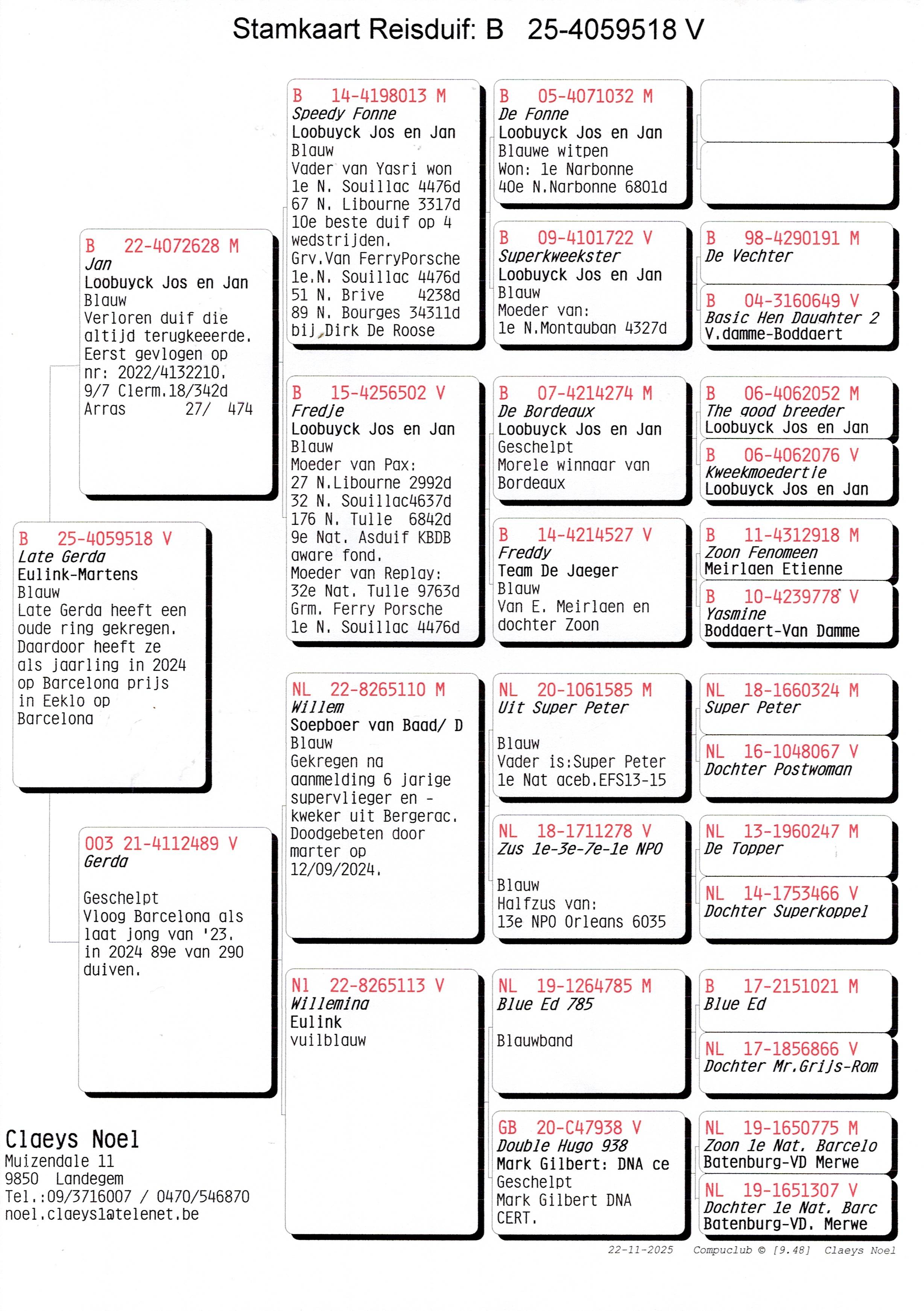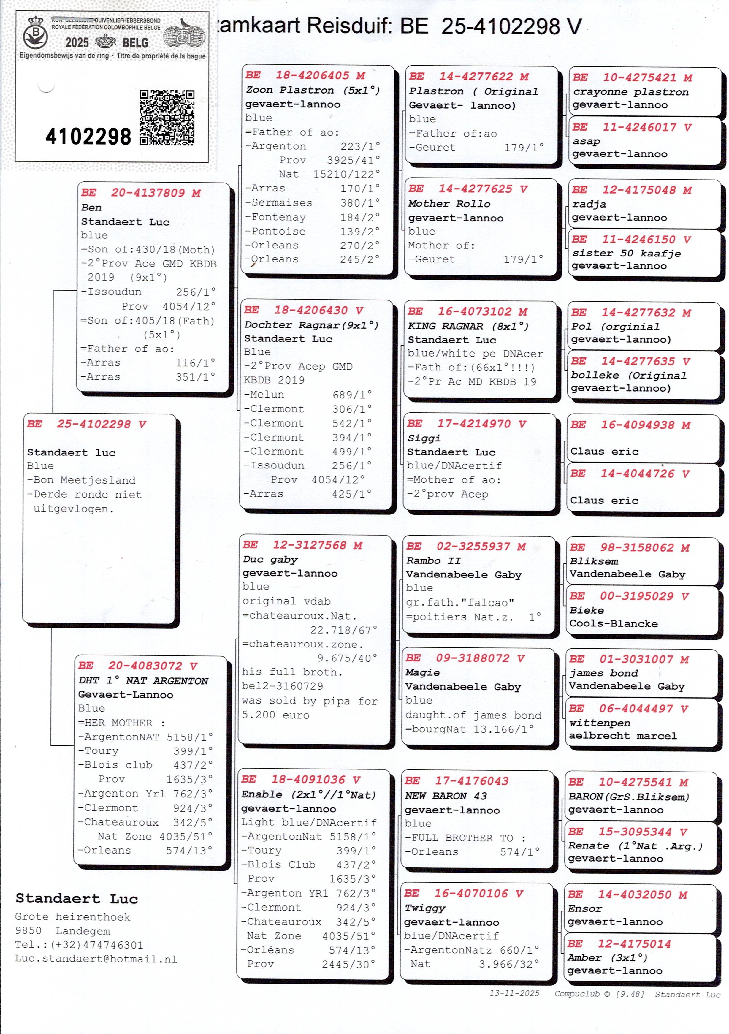 In het Meetjesland 2025, zoals steeds, alom tegenwoordig met 11 klasseringen, dit met o.a. 2e asduif zware halve fond oude, 3e asduif kleine halve fond jonge, 5e asduif kleine halve fond oude en 2e puntenkampioen zware halve fond.