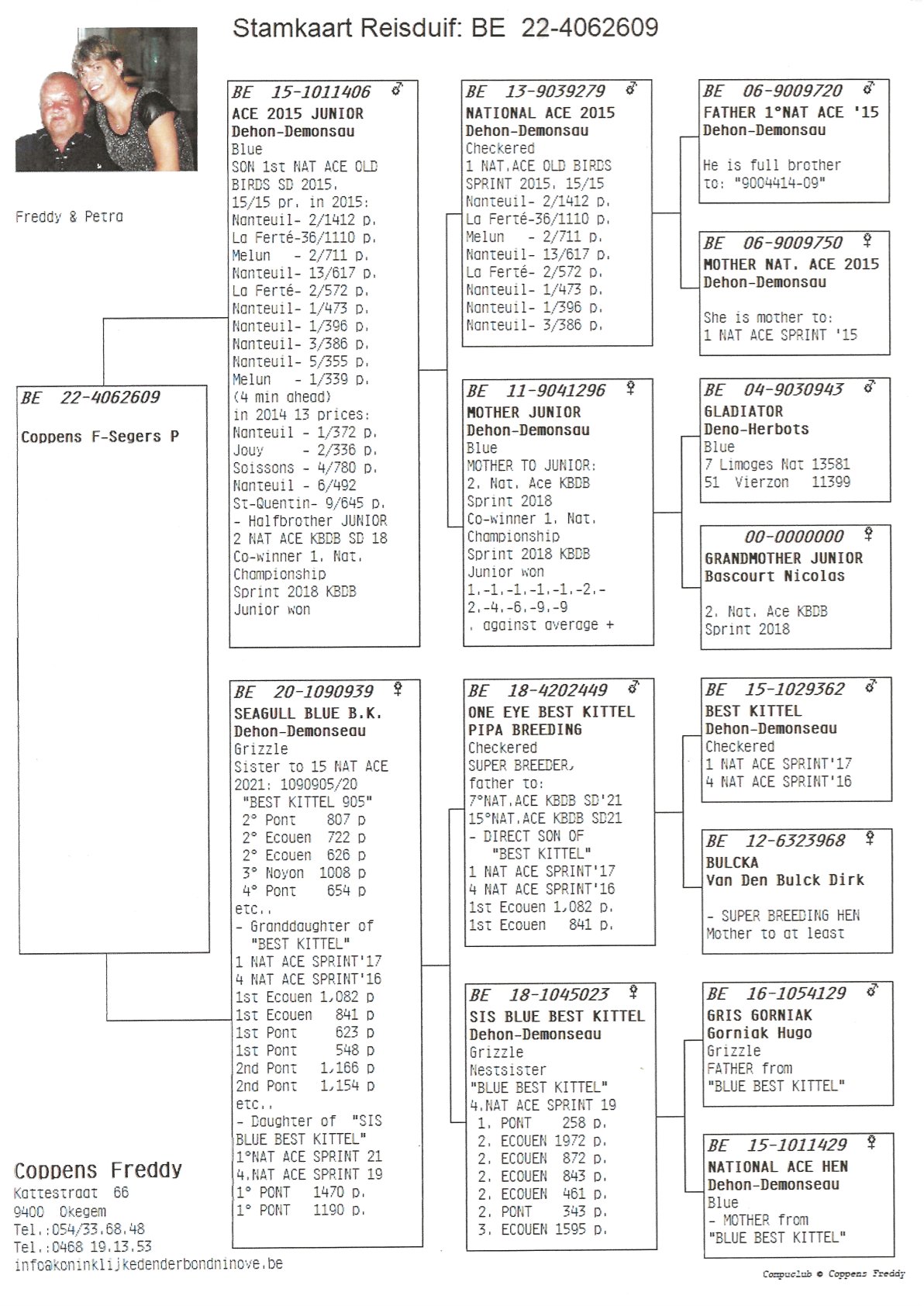 • Afkomstig uit een lijn die meerdere 1e Nationale Asduiven SD voortbrachtGrootouders: