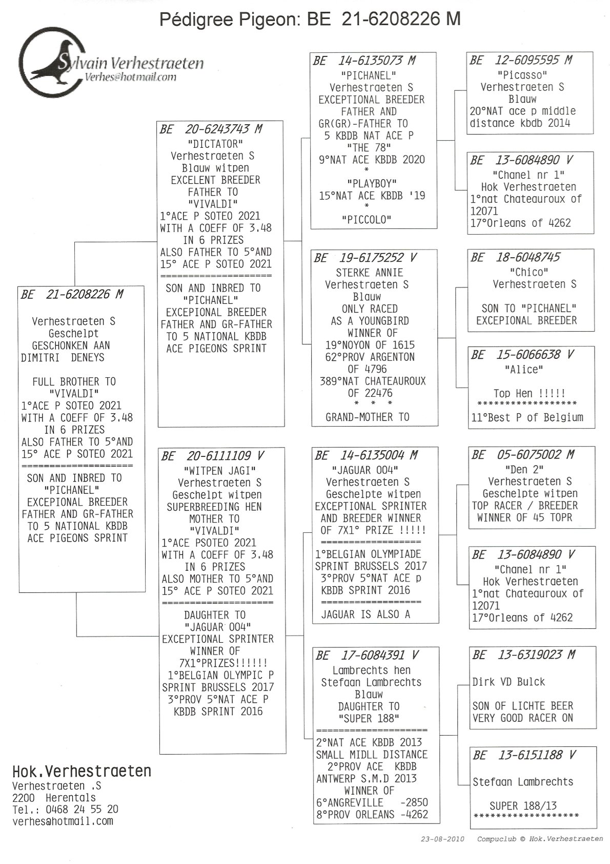 Uit de beste lijnen van Verhestraeten Sylvain (Herentals, BE) – lijnen “Vivaldi”, “Dictator”, “Pichanel”, “Jaguar 004” en “Chanel nr 1”.