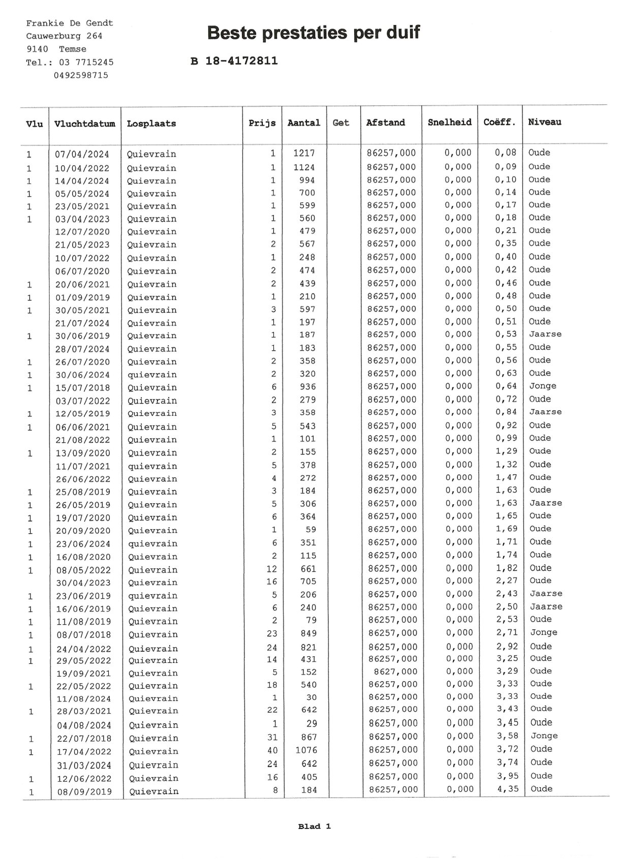 17 maal 1e prijs, 23 maal per 100-tal en 67 maal per 10-tal !!