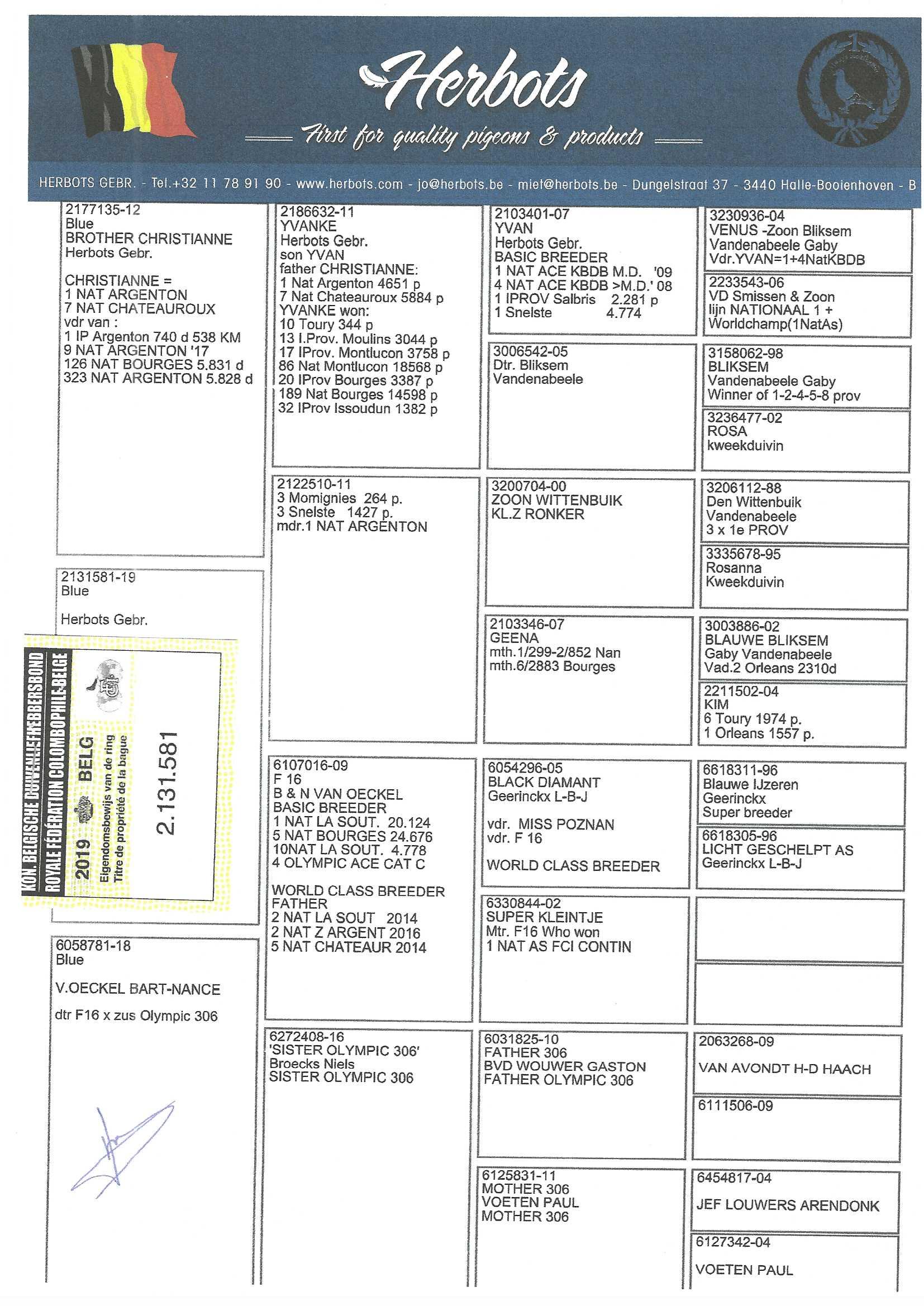 Lijnen Herbots(Yvan)/Vandenabeele Gaby(Wittenbuik)/Van Oeckel (F16)/Broeckx(Olympic 306)
