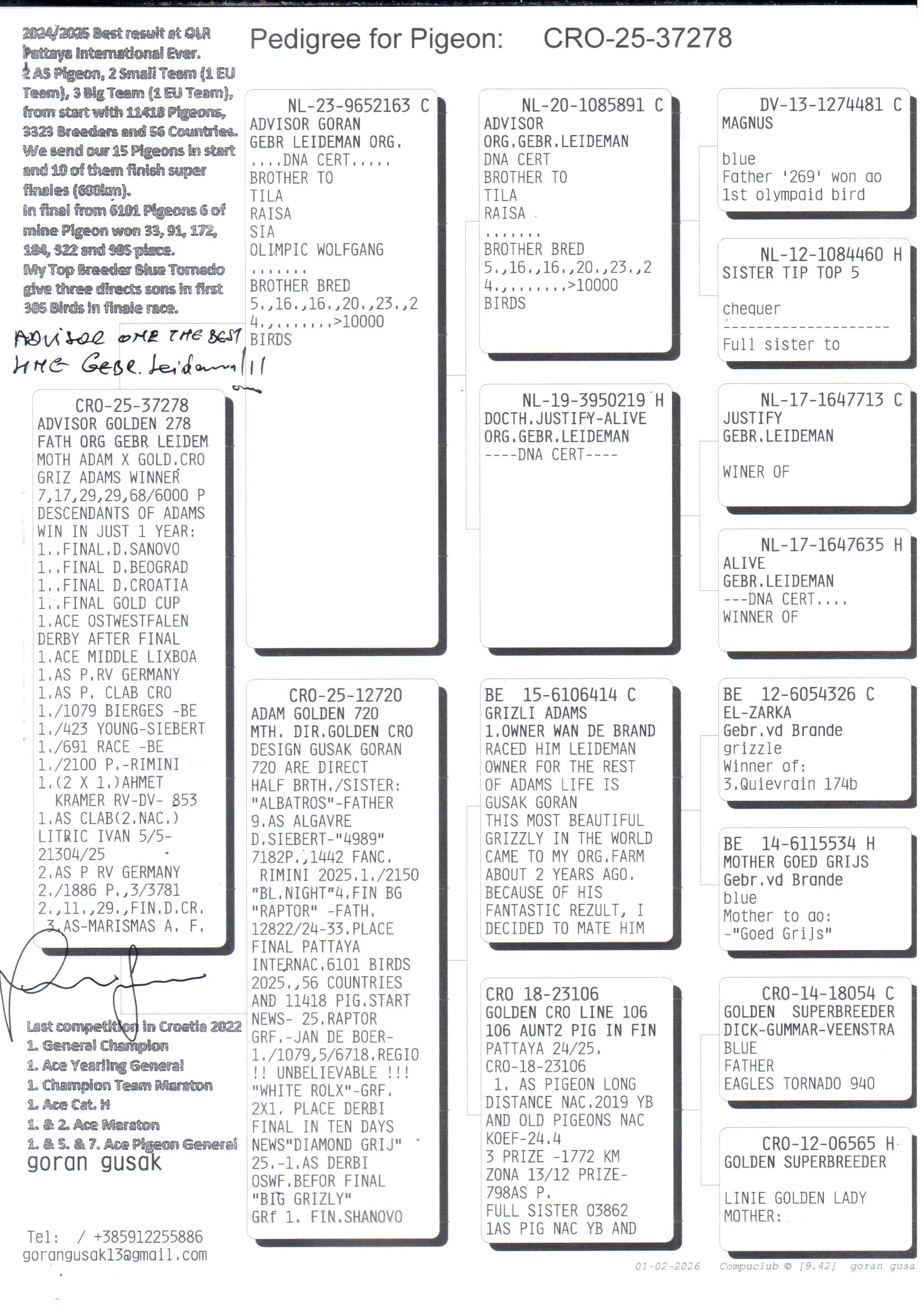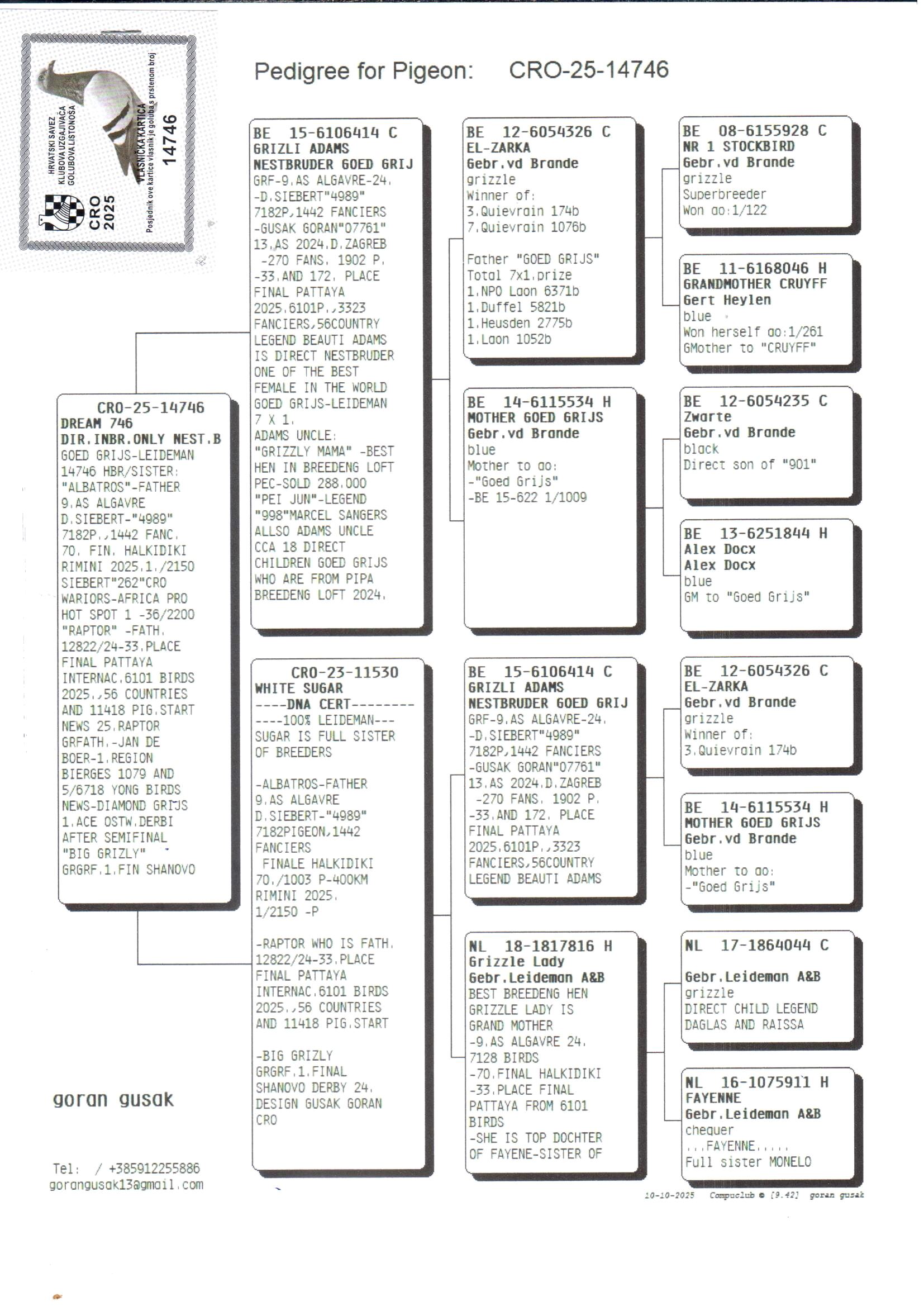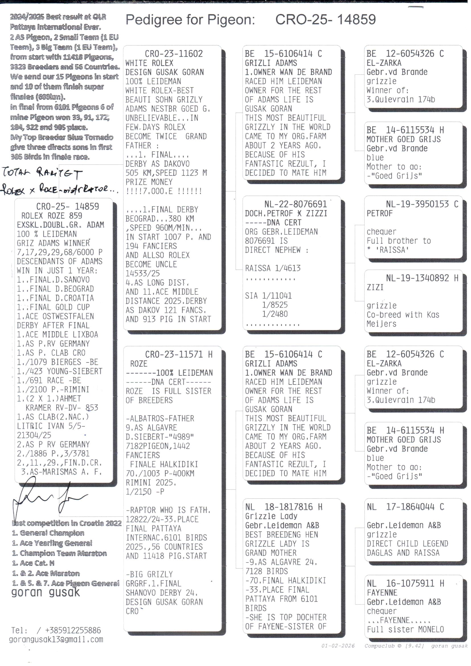 D.Siebert “4989”, 7182d, 1442 fanciers, 70° Finale Halkidiki Rimini ’25 1/2150