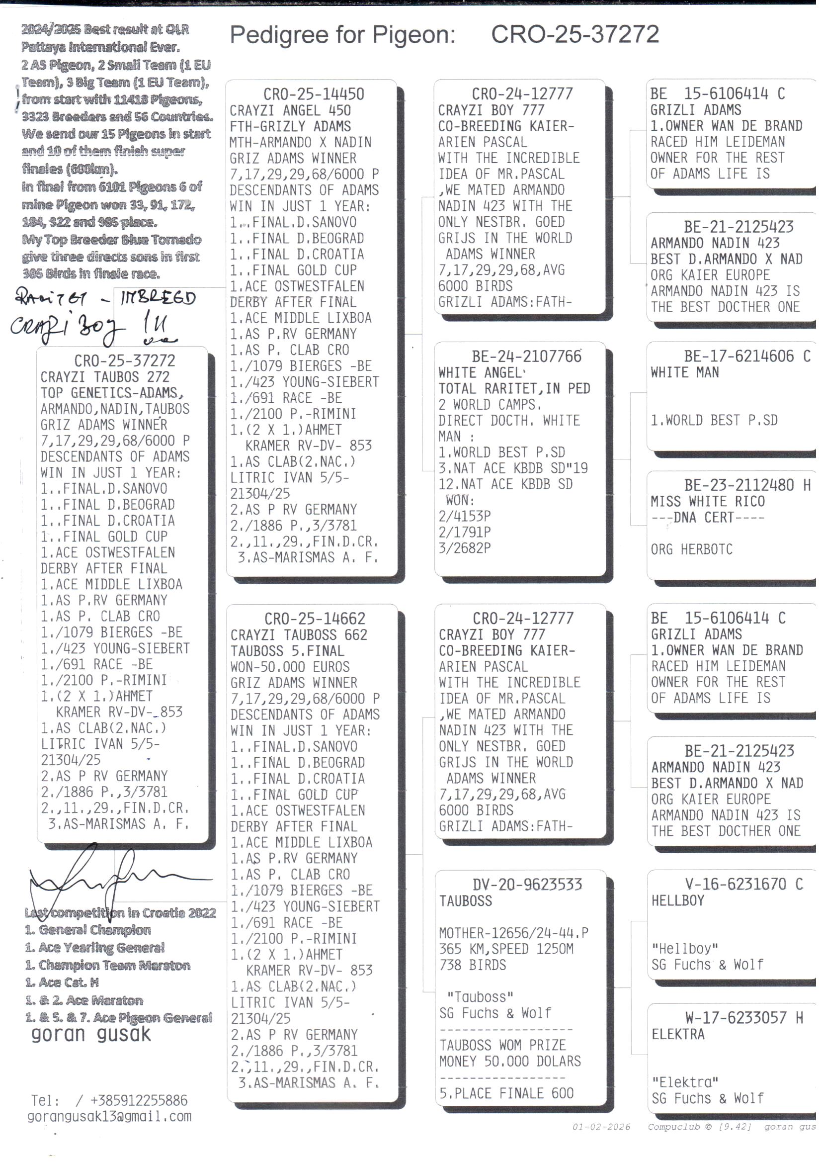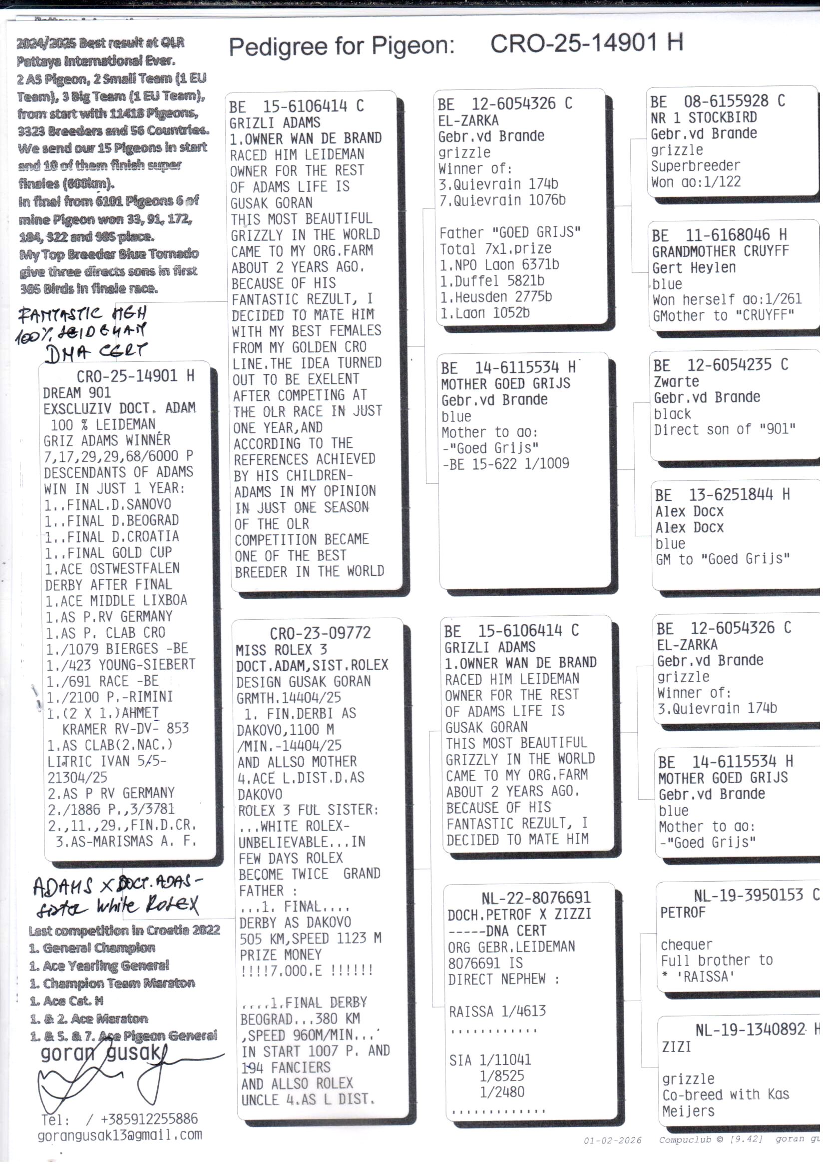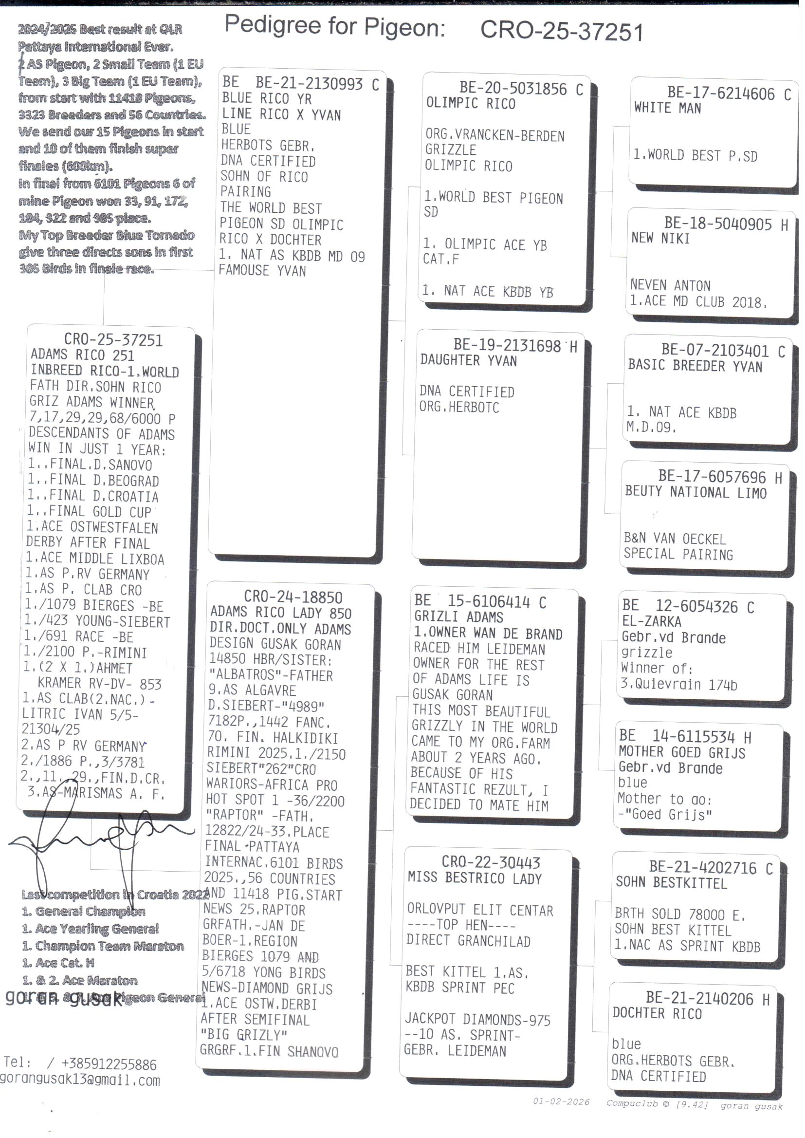 D.Siebert “4989”, 7182d, 1442 fanciers, 70° Finale Halkidiki Rimini ’25 1/2150