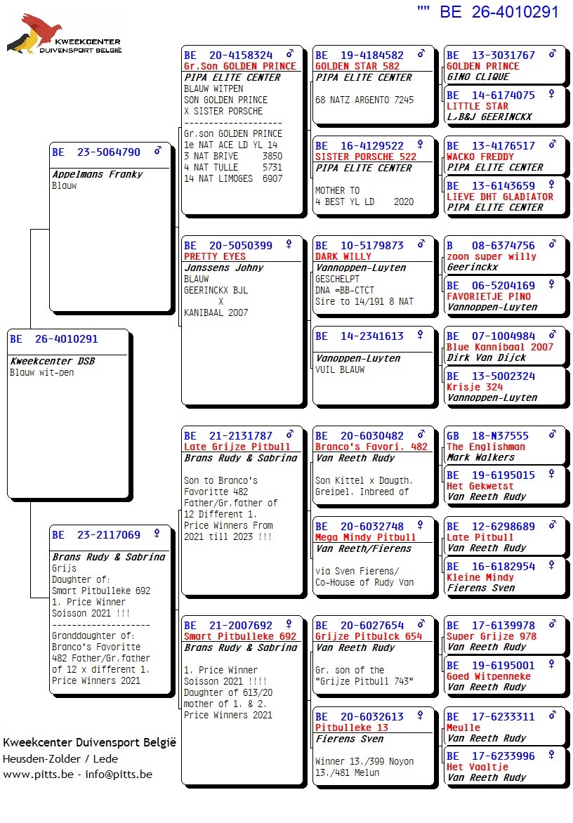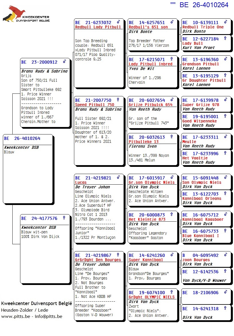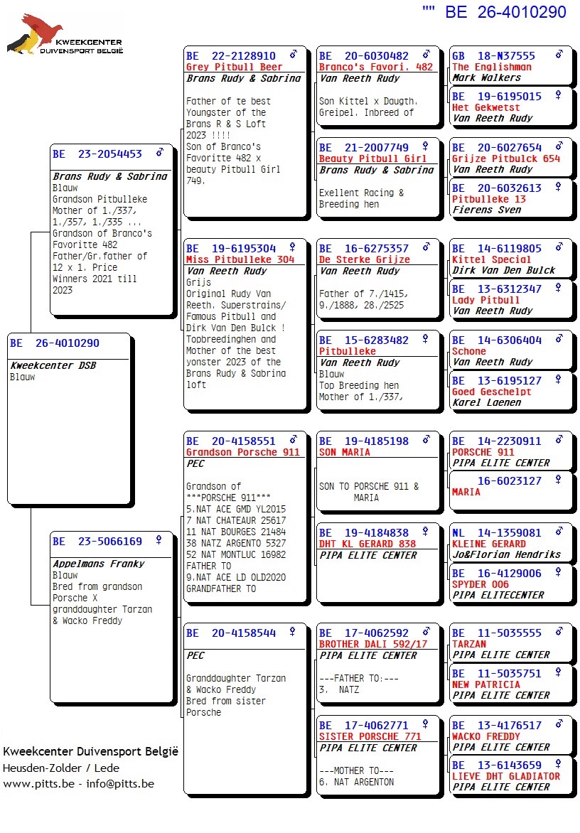 zoon van top kweekkoppel “Redbull 651” vader van 1./156 Vierzon x “Lady Pitbul Inbred” 1./296 Chervain winnares.