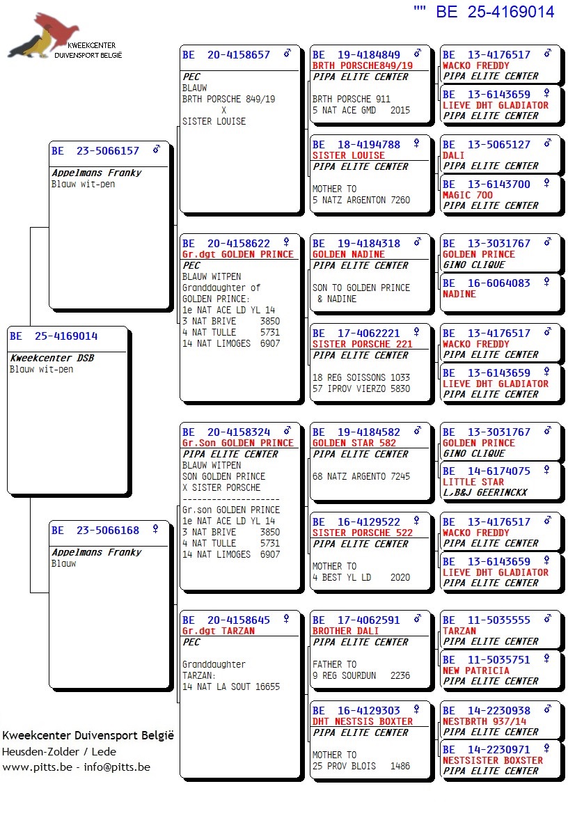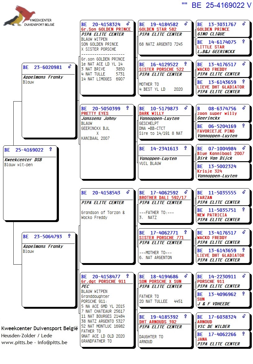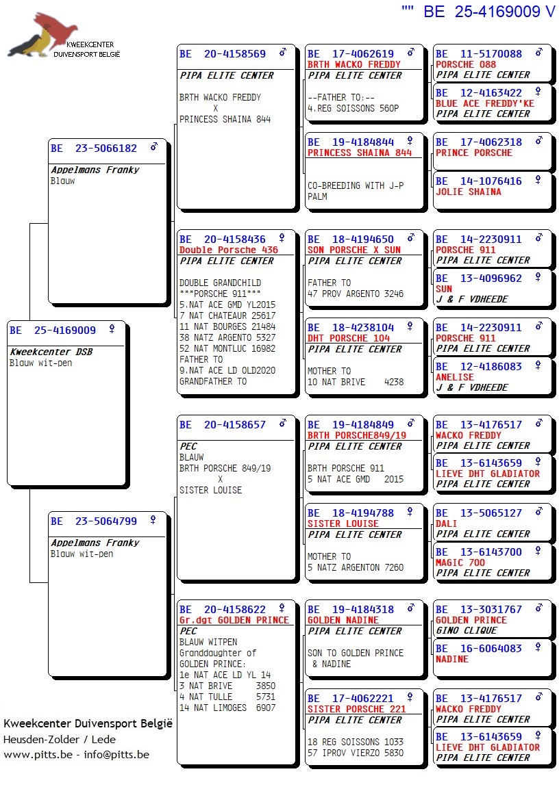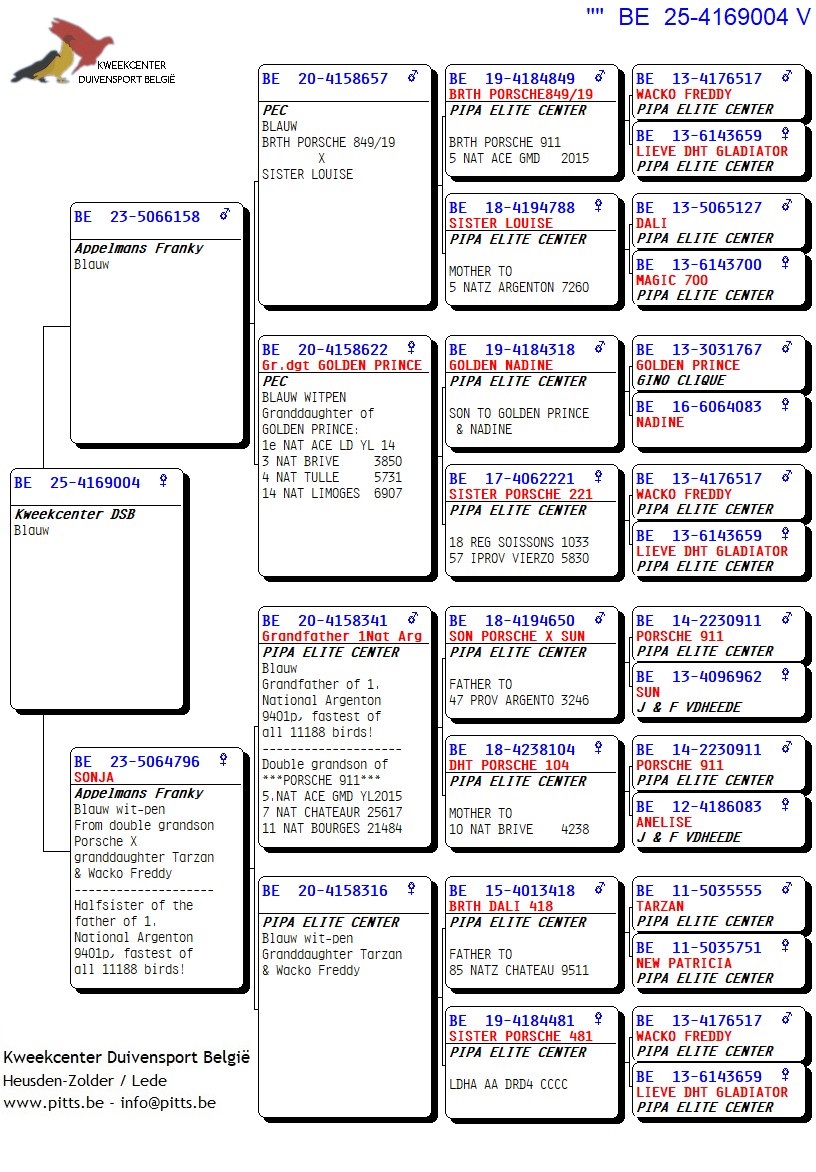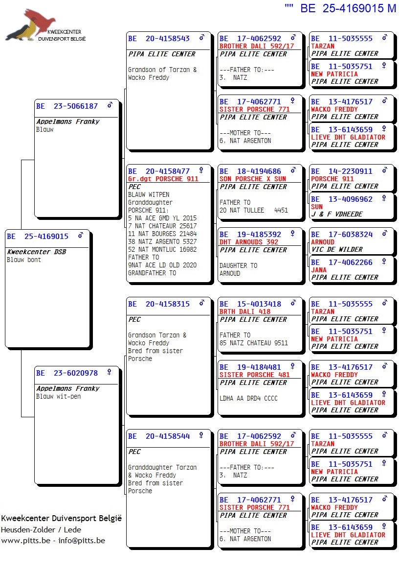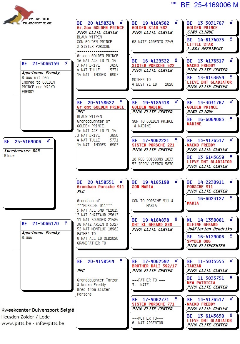 Voor deze Porsche-collectie werd een verbluffende selectie kweekduiven van Franky Appelmans naar de boxen van ons kweekcenter gebracht en zorgvuldig gekoppeld volgens hun individuele kenmerken. We bieden dan ook met trots deze selectie zomerjongen aan, stuk voor stuk teruggekoppeld naar de basis nl. "Porsche 911". Een uitgelezen kans om iets te pakken te krijgen van uit deze bewezen toplijn!