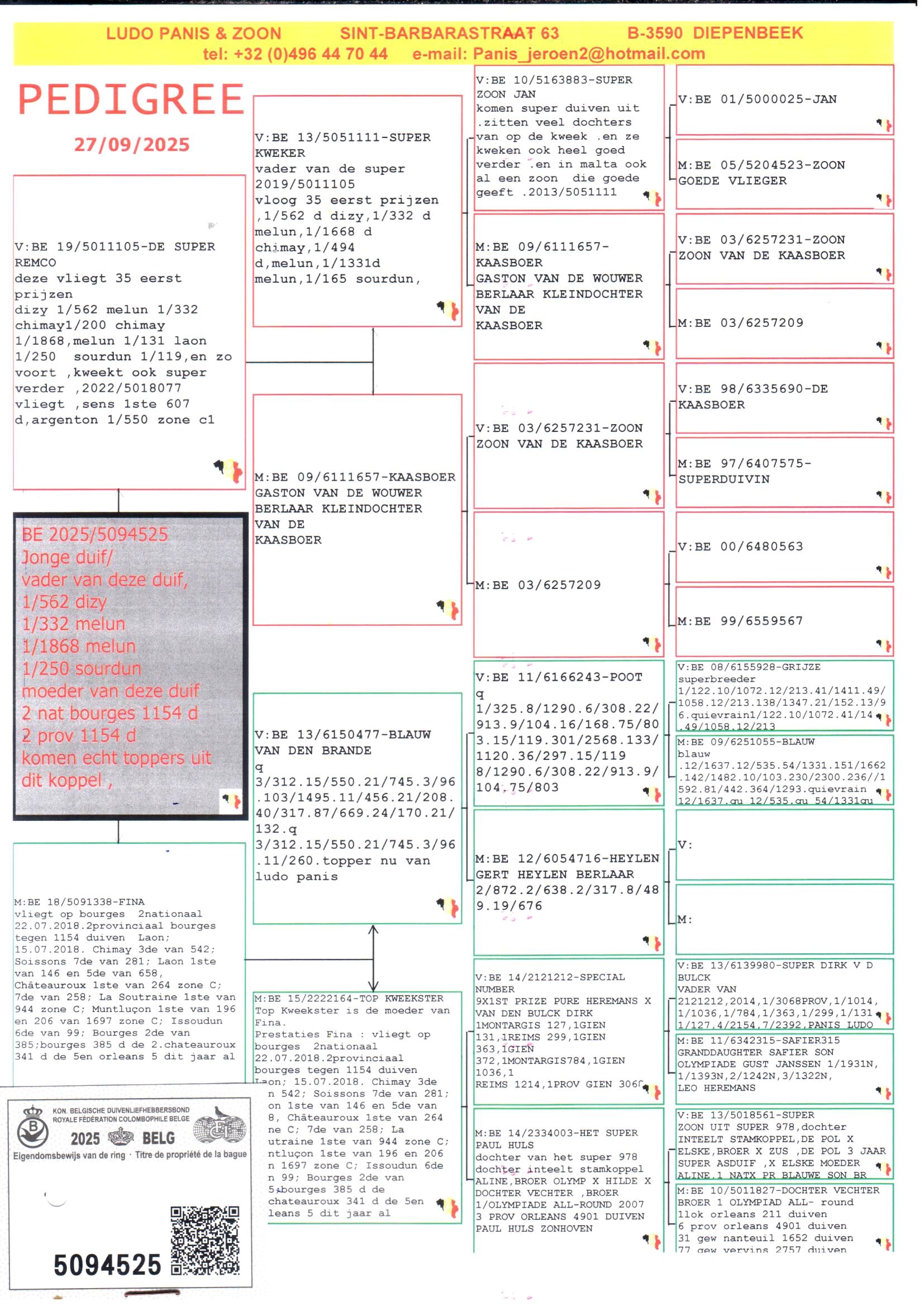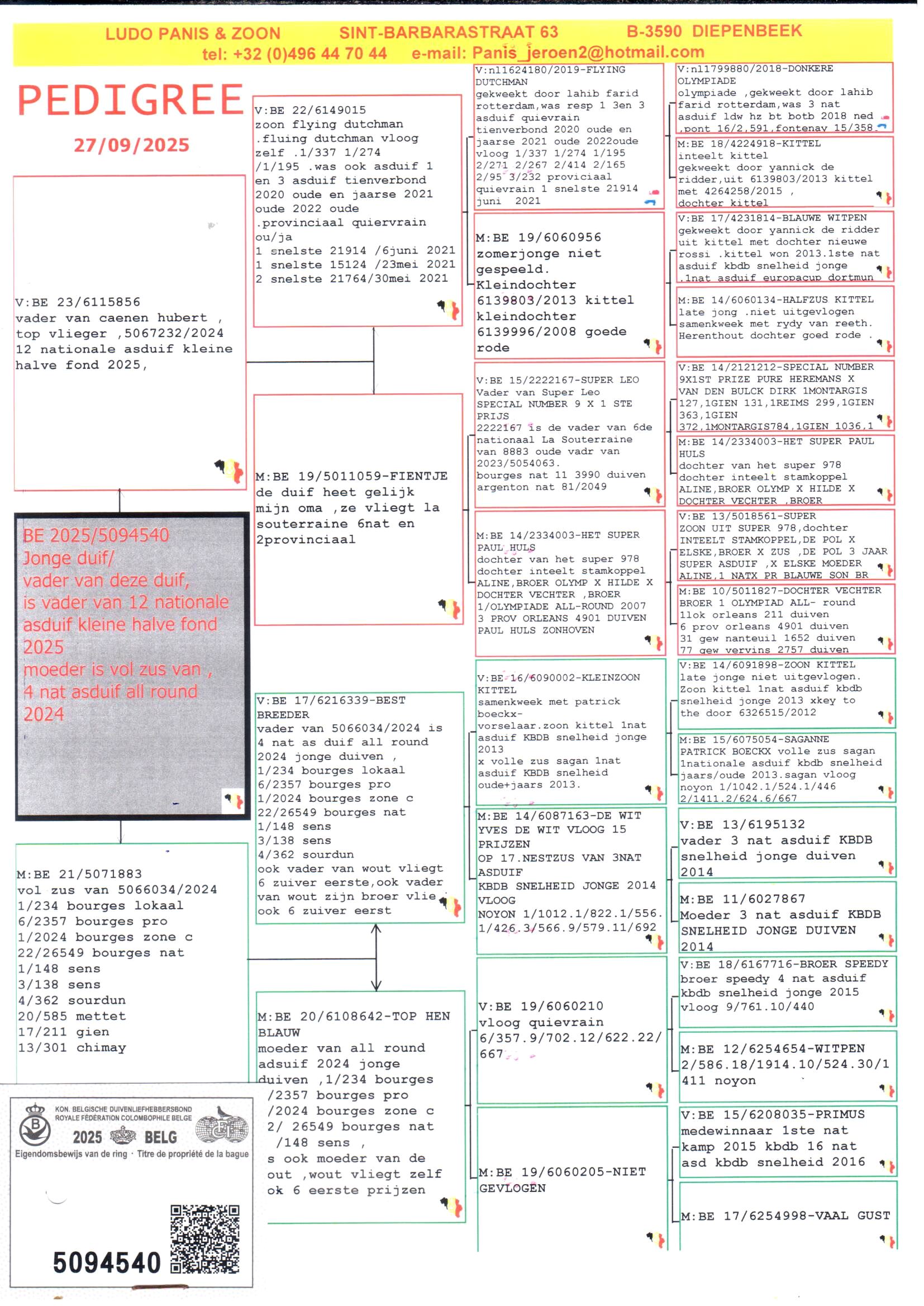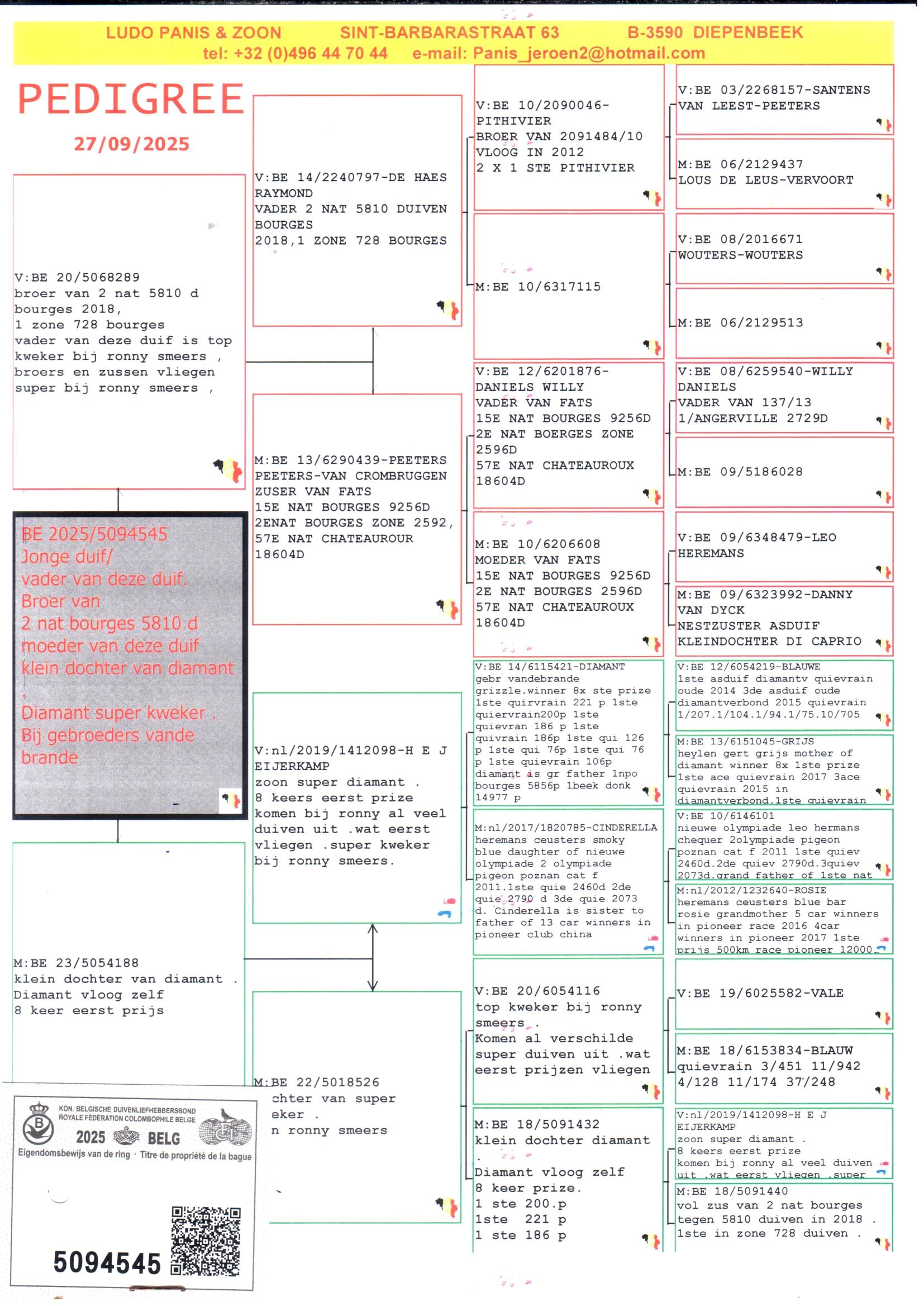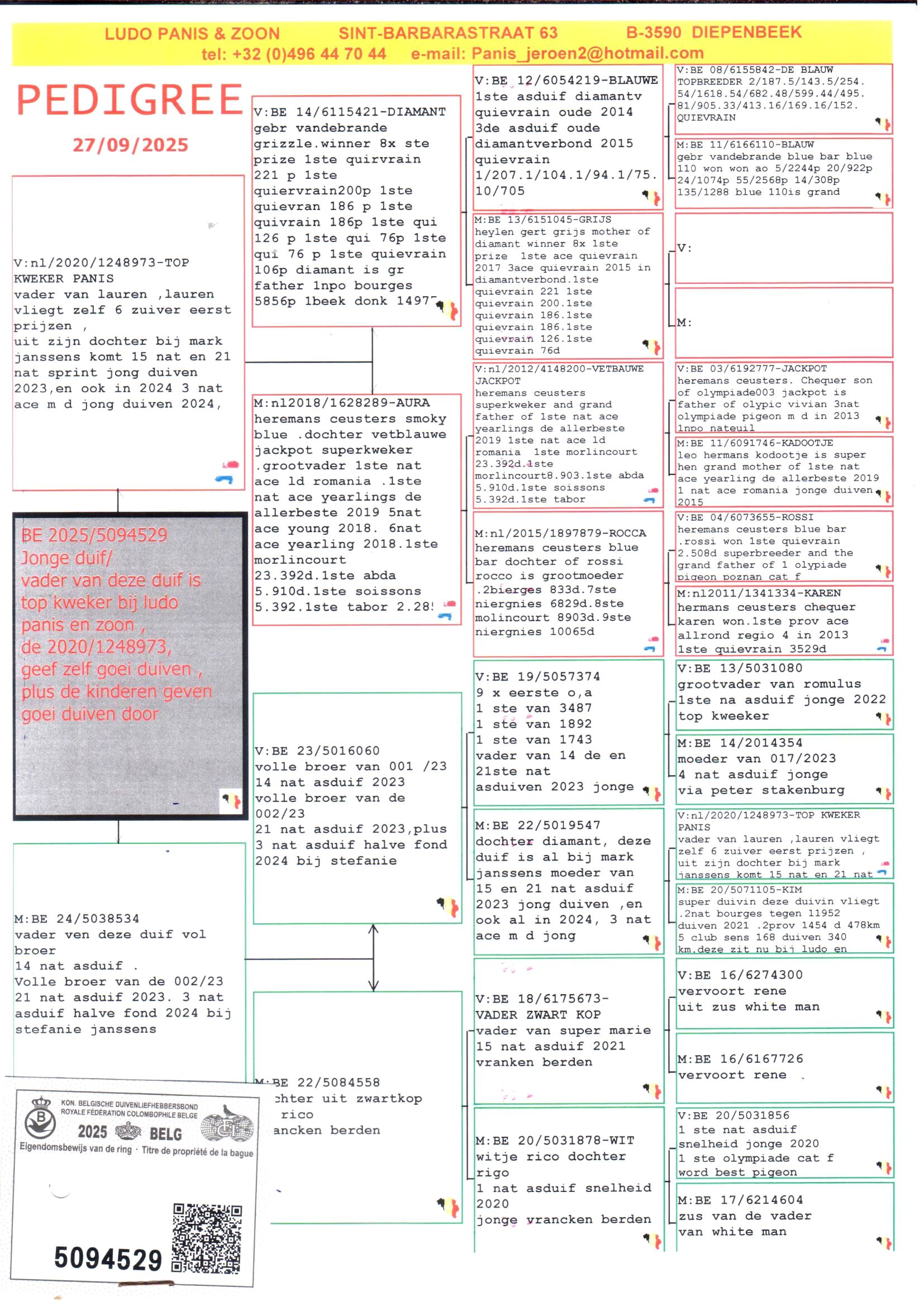 Vader van deze duif is topkweker bij Ronny Smeers, broers en zussen vliegen super