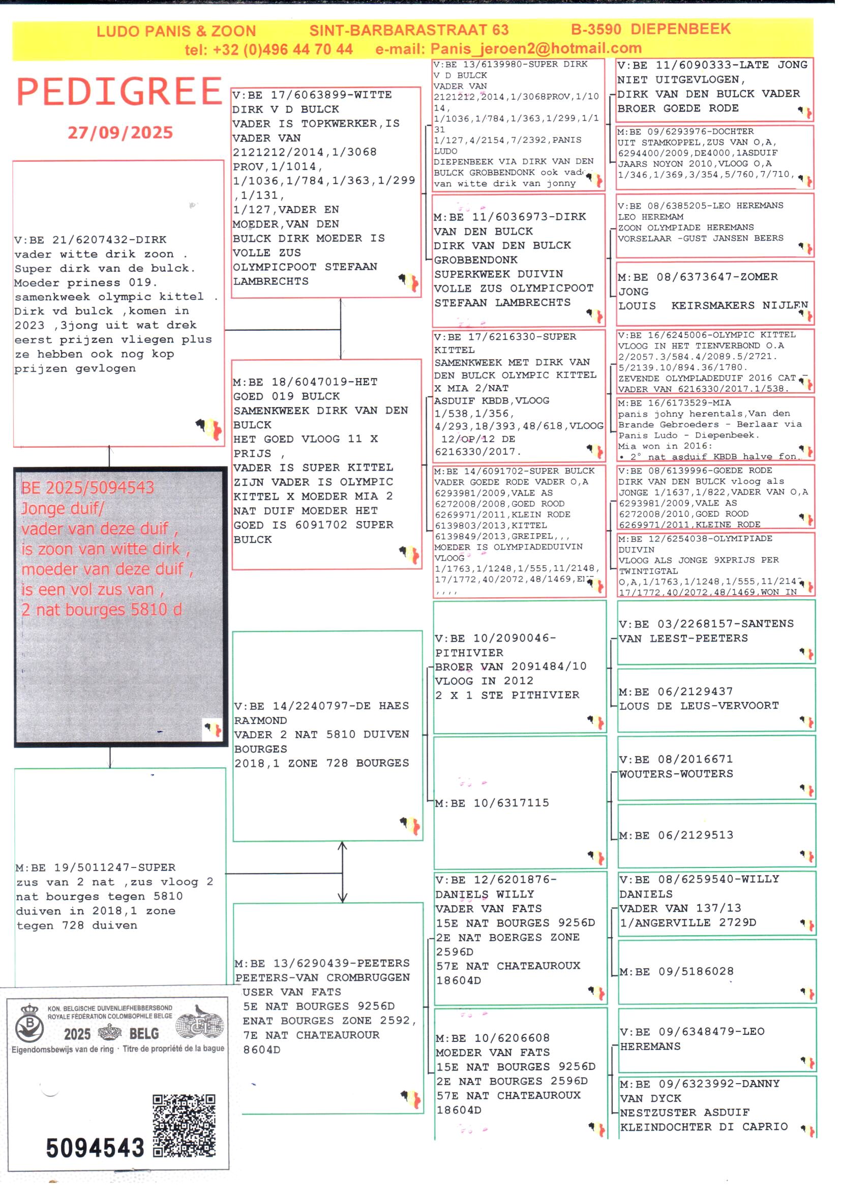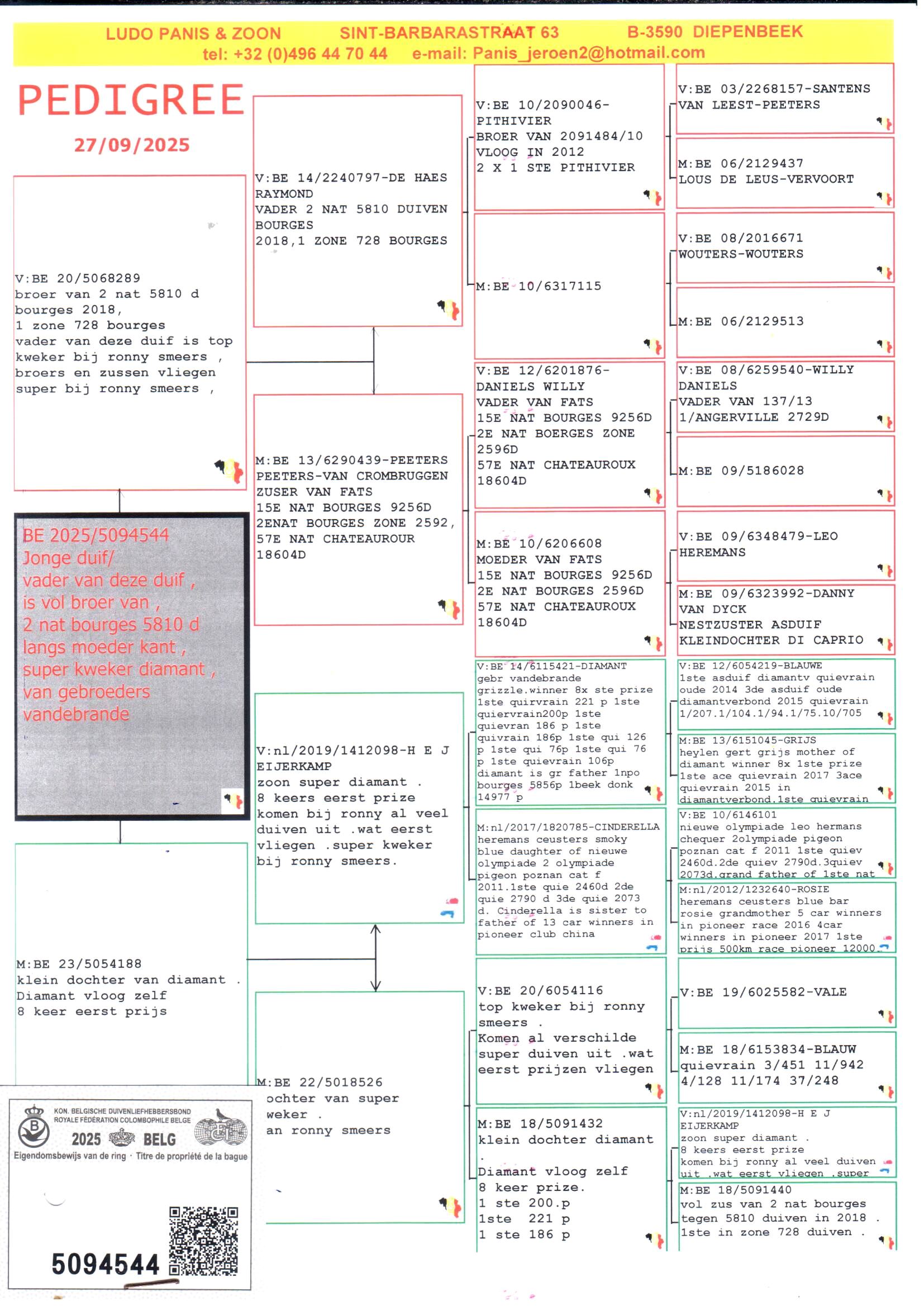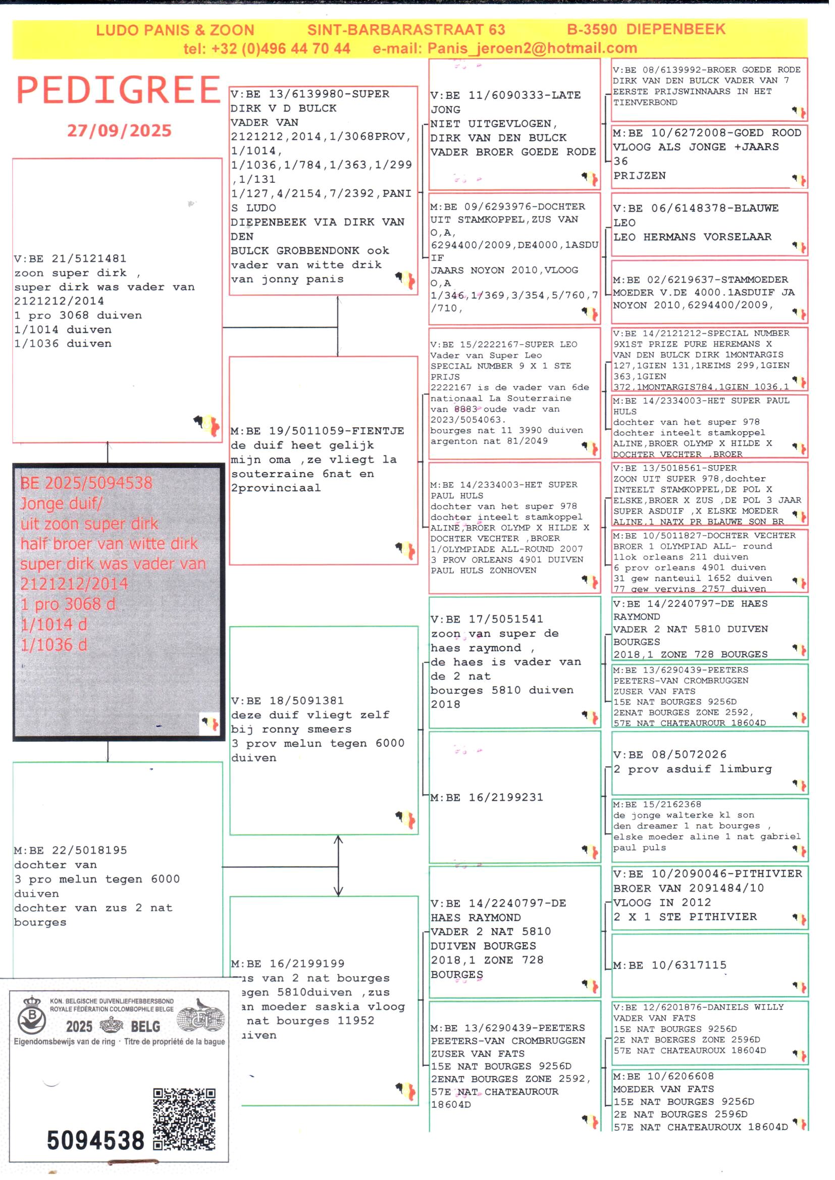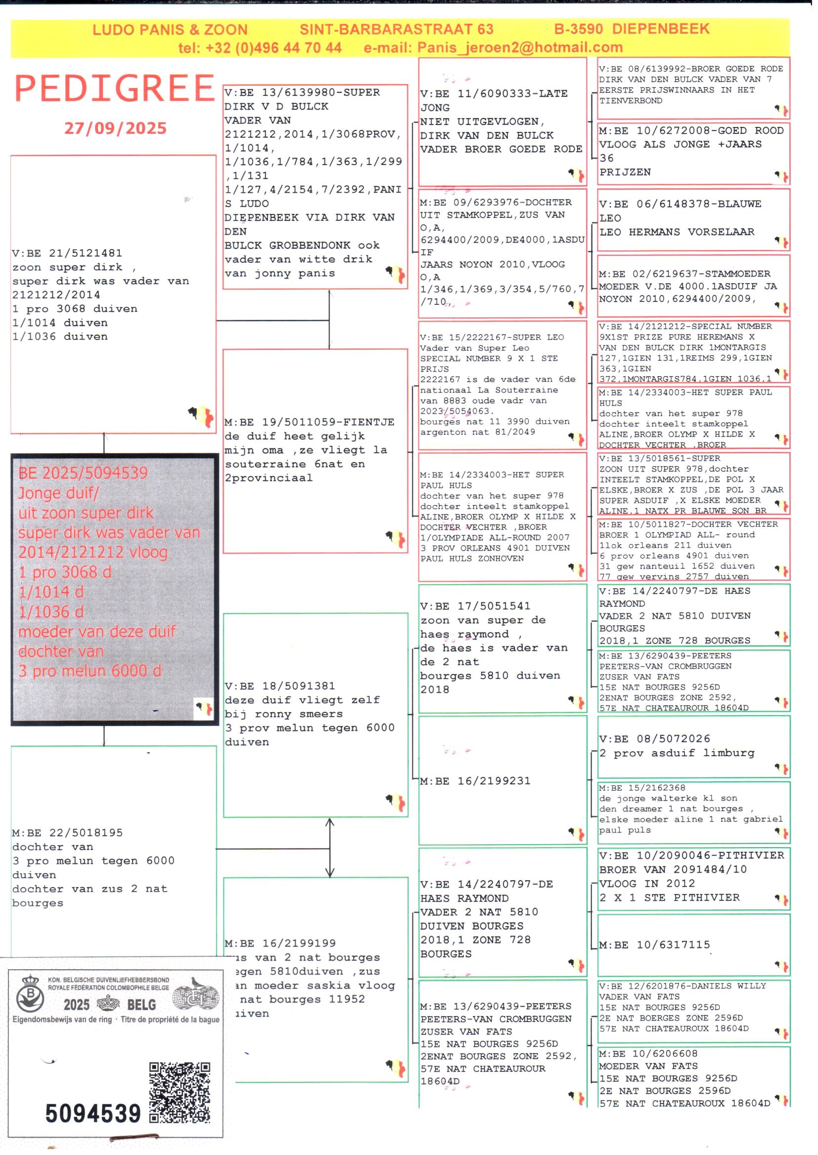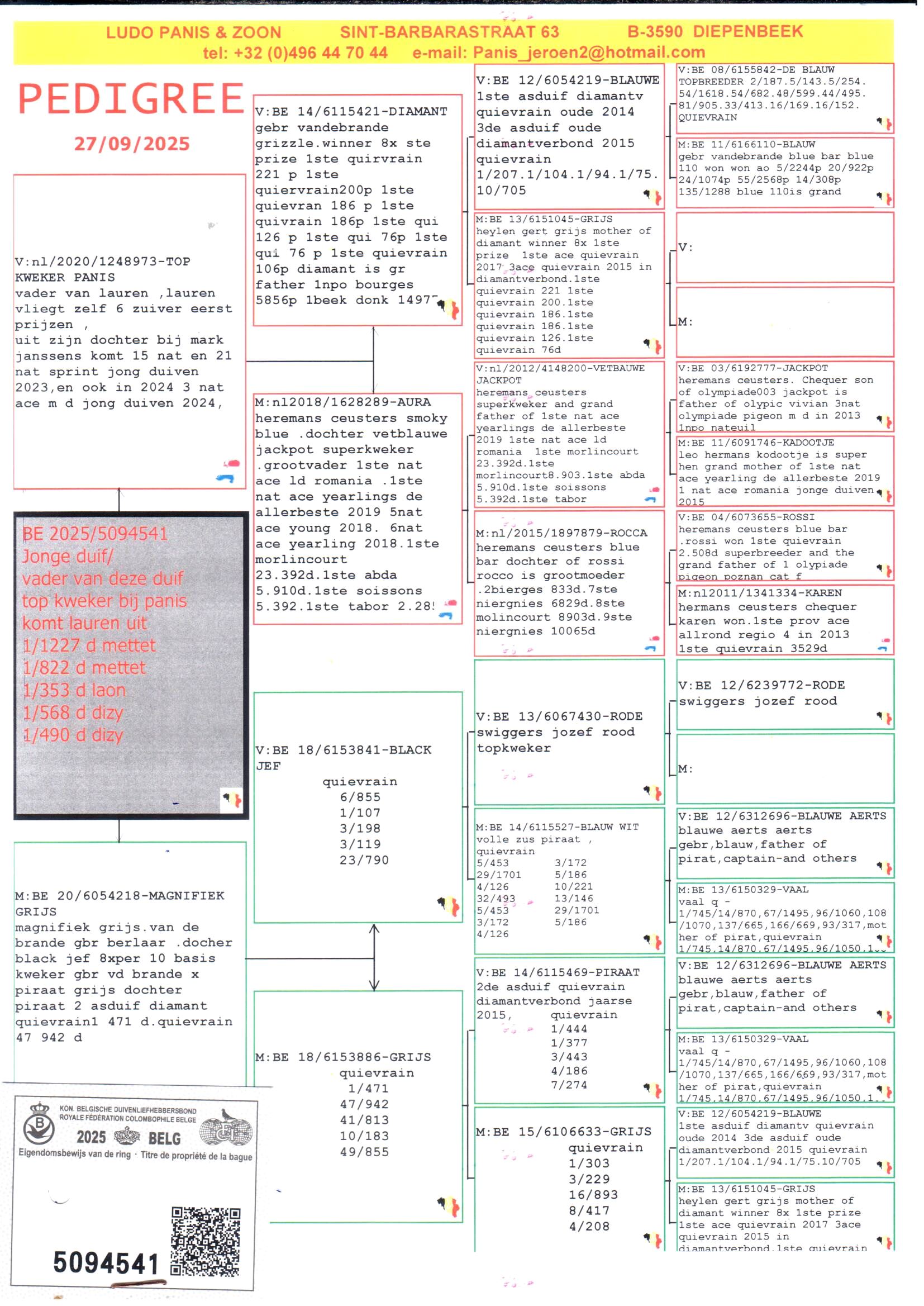 Vader van deze duif is topkweker bij Ronny Smeers, broers en zussen vliegen super