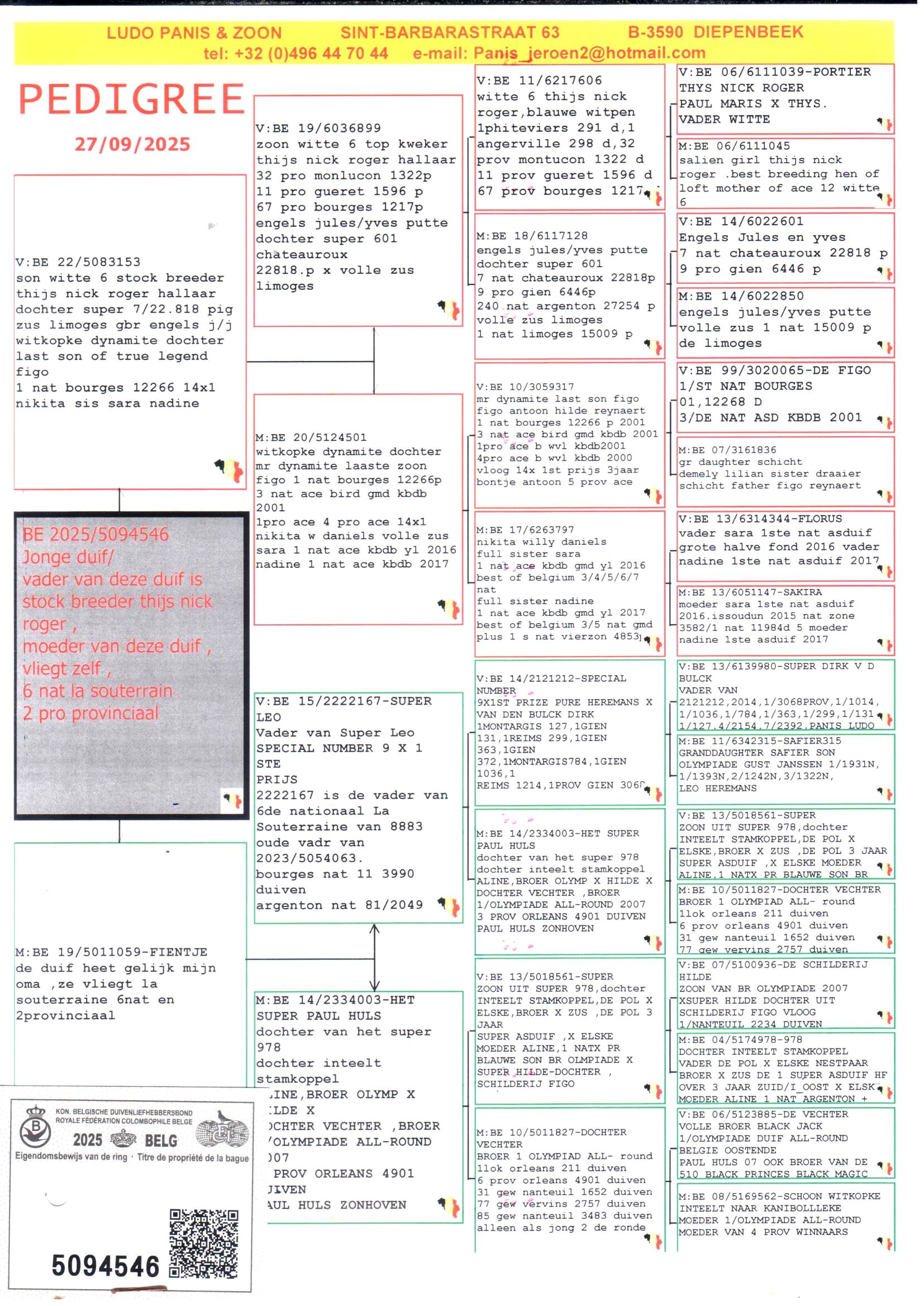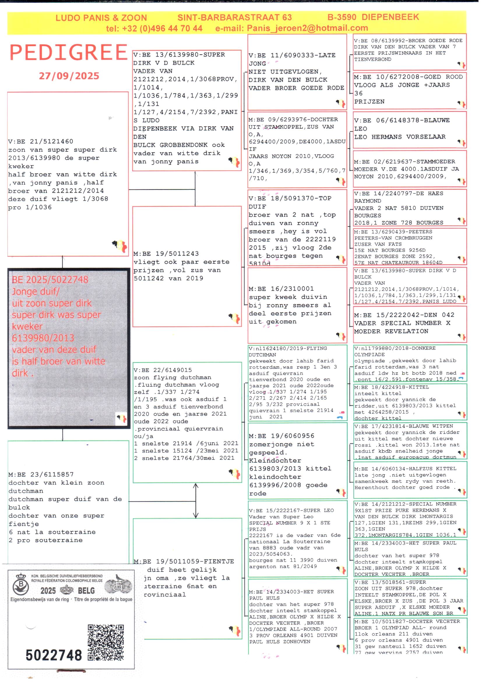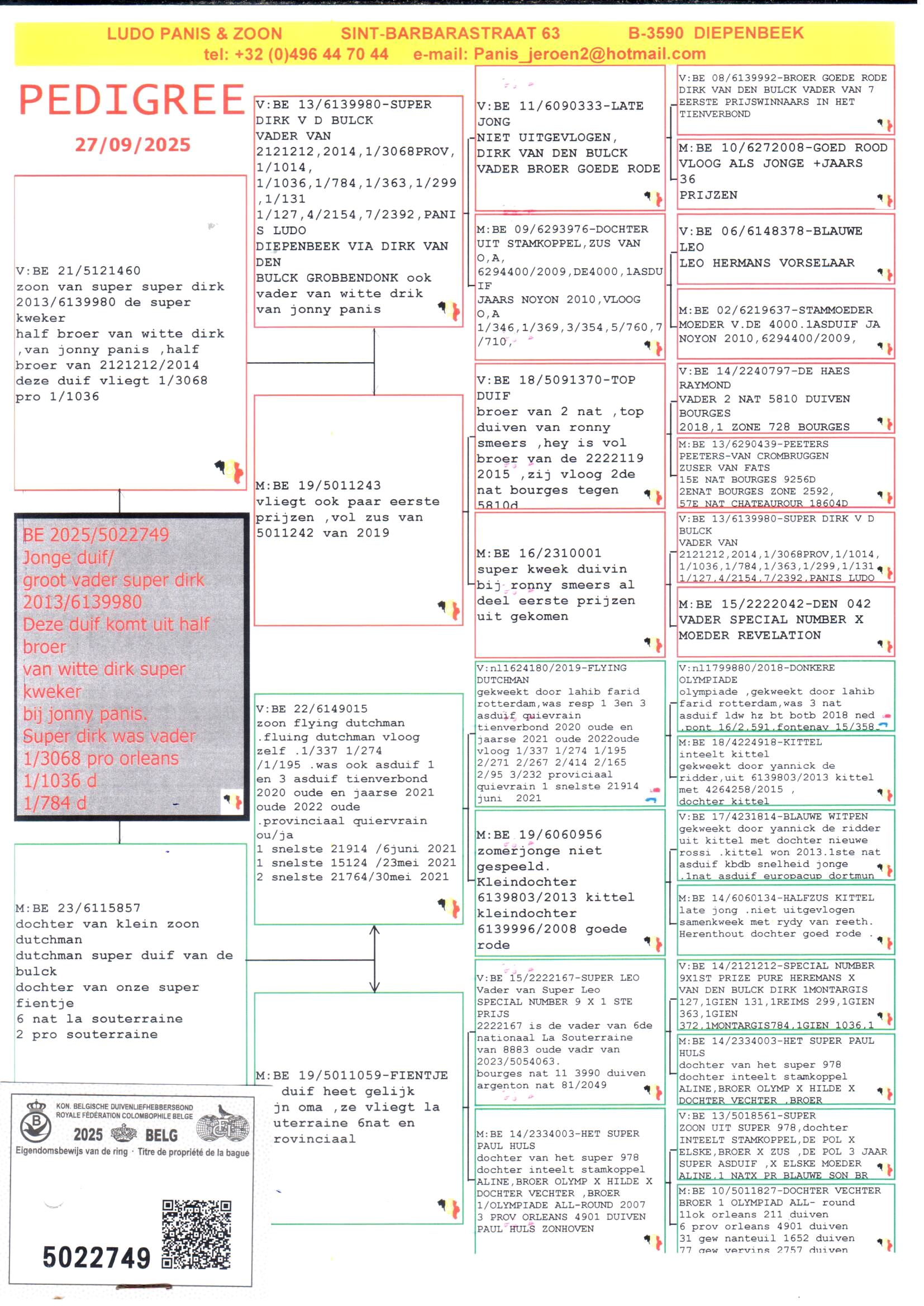 Moeder “019” is samenkweek “Olympic Kittel” Dirk vd Bulck, komen in ’23 3 jongen uit die 1° prijzen en aan de kop vliegen