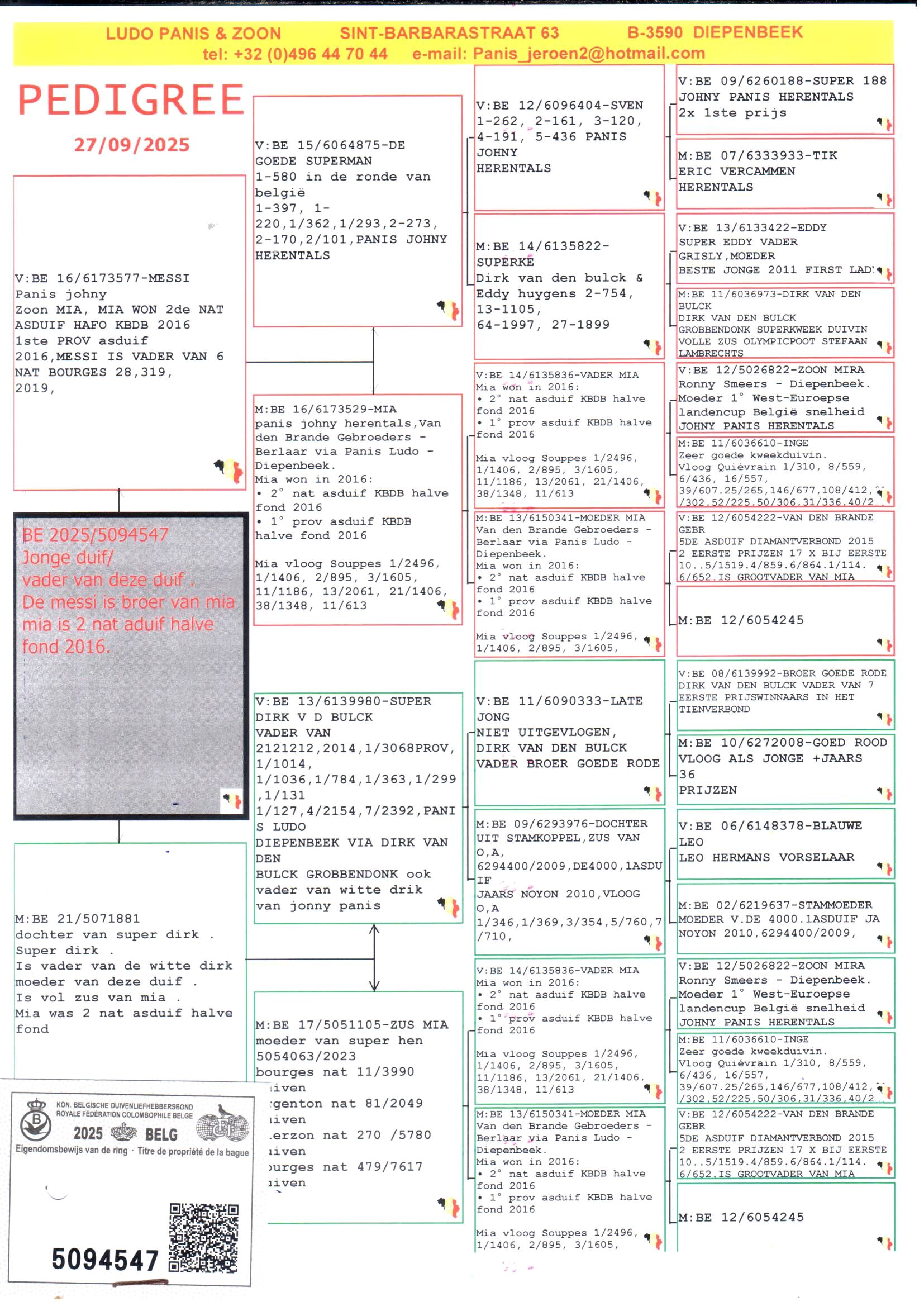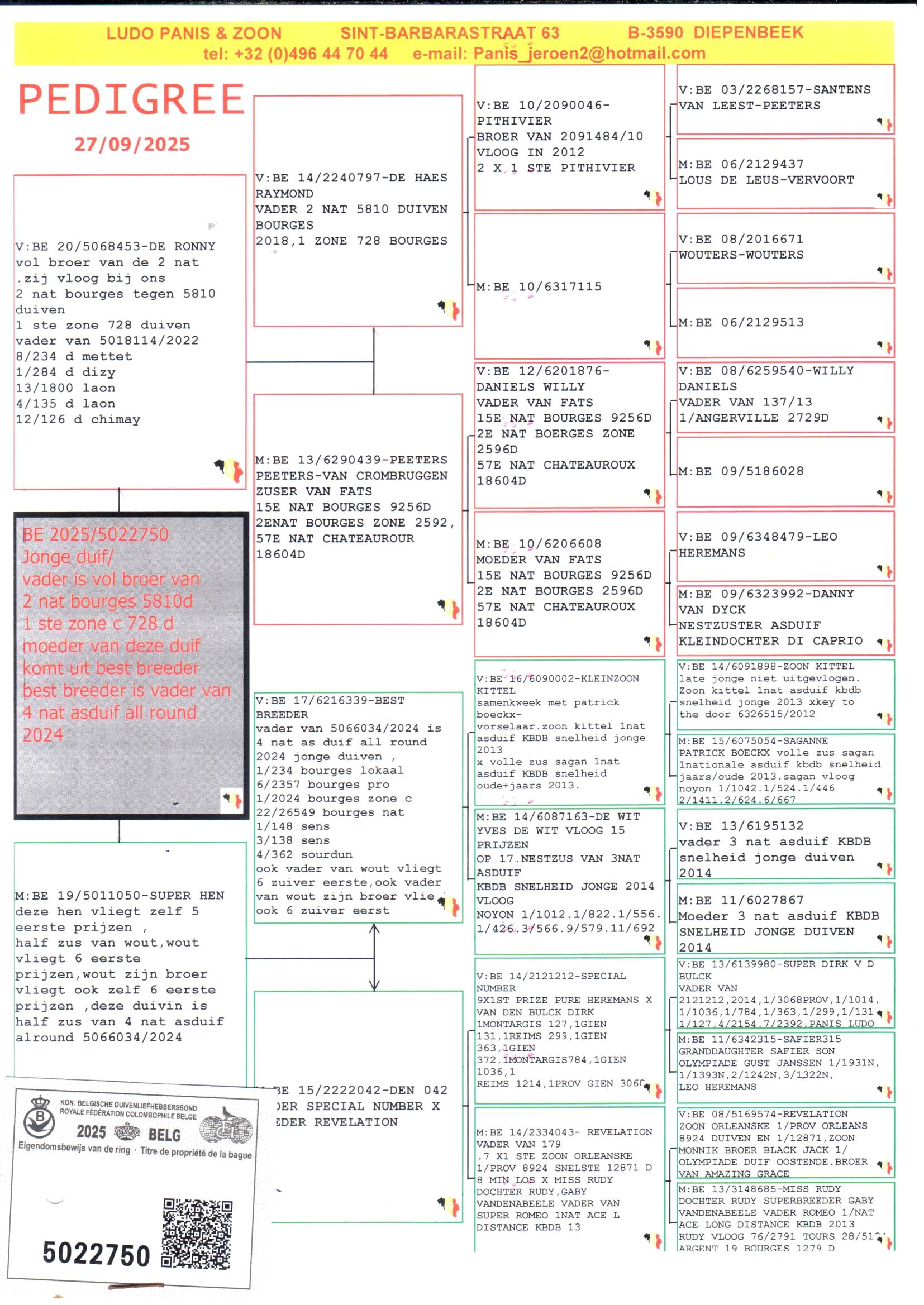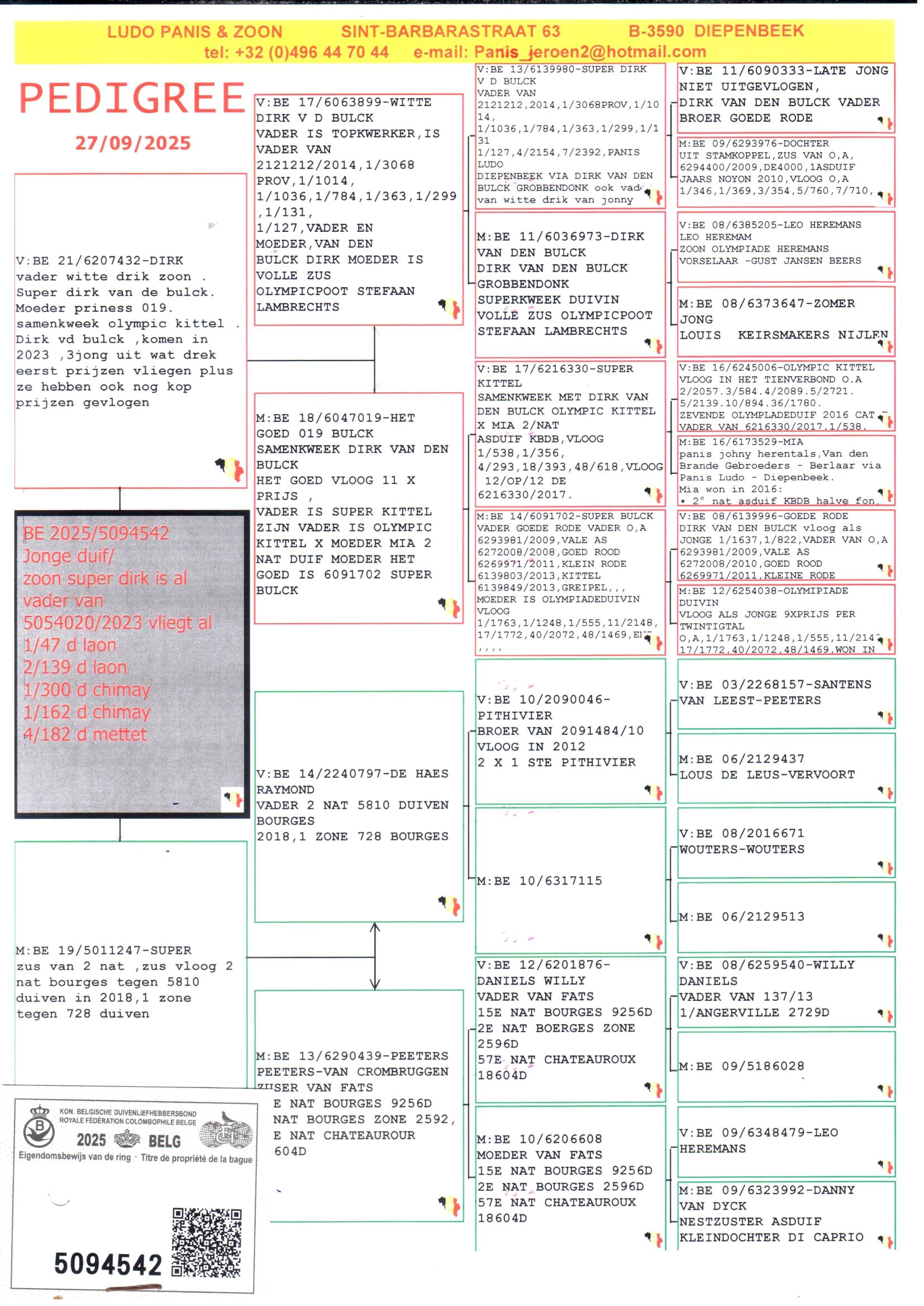 Moeder “019” is samenkweek “Olympic Kittel” Dirk vd Bulck, komen in ’23 3 jongen uit die 1° prijzen en aan de kop vliegen