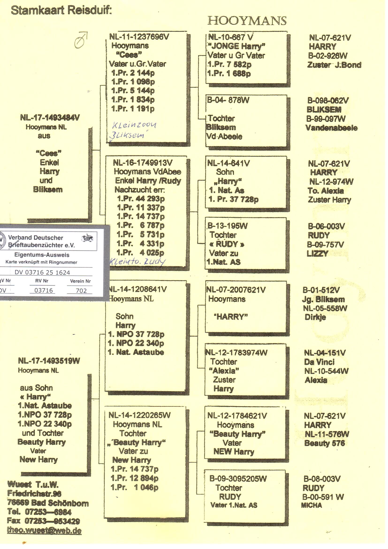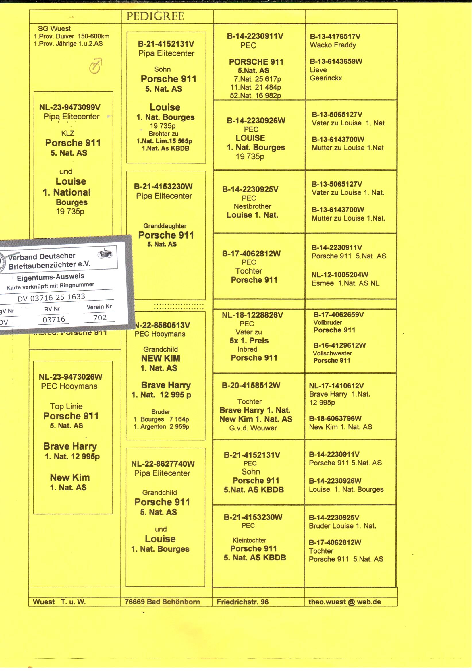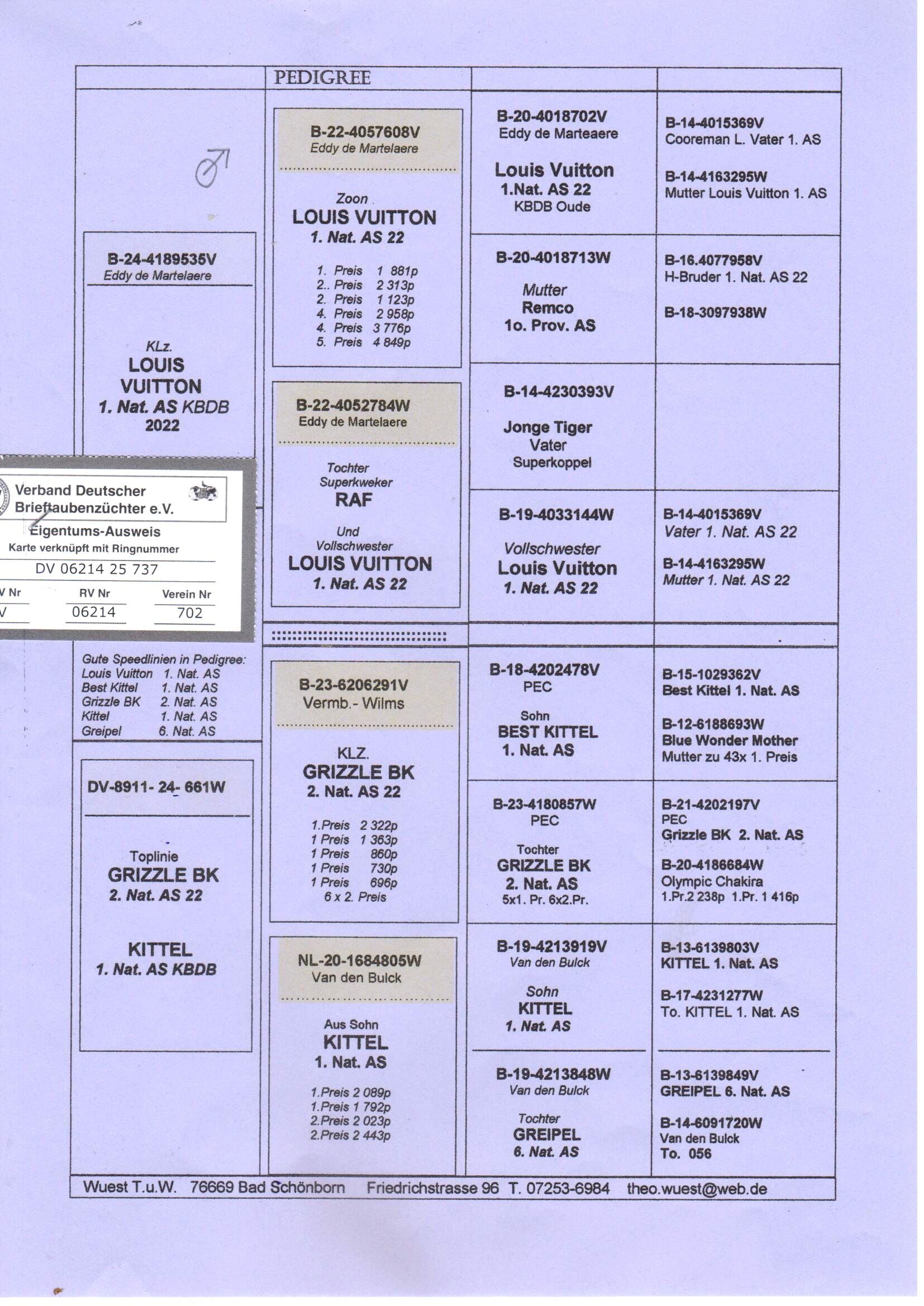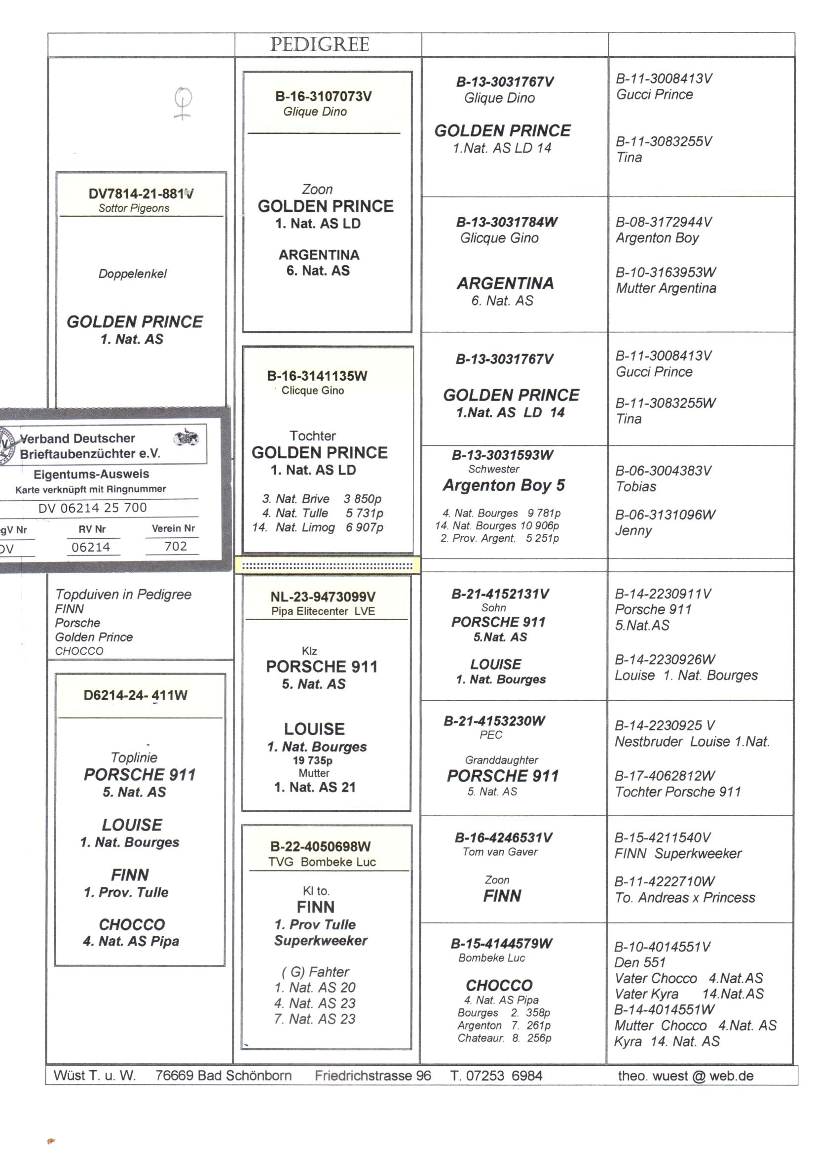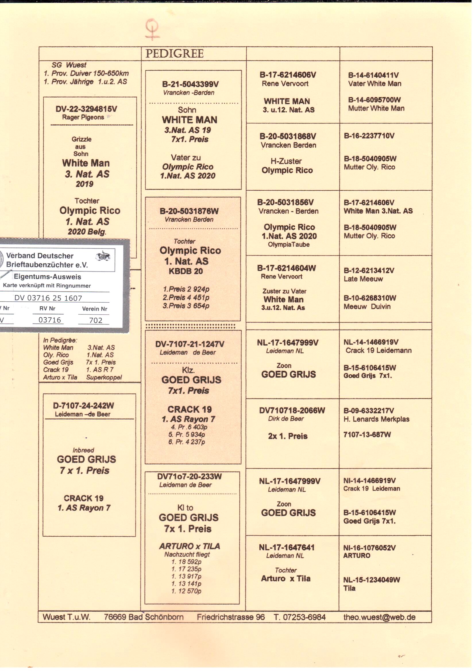 In het Duitse Bad Schönborn, gelegen halverwege tussen Frankfurt en Stuttgart, bevinden zich de hokken van Theo Wüst. Jarenlang gaat hij reeds op zoek naar afstammelingen van de allerbeste duiven ter wereld en hij bespaarde kosten noch moeite om deze in huis te halen. Wereldnamen als Kittel, Greipel, Porsche, White Man, Olympic Rico, Kaasboer, Wonderboy, Jackpot, Special One, Golden Prince, Harry, Jef, Champ, Murphy's Law, Di Caprio... zijn de stokpaardjes van het kweekhok van Theo Wüst. Zijn neus voor topduiven bracht hem bij de beste liefhebbers wereldwijd en zorgde ervoor dat het intussen één van de meest gerenommeerde hokken werd, met talrijke referenties in binnen- en buitenland!