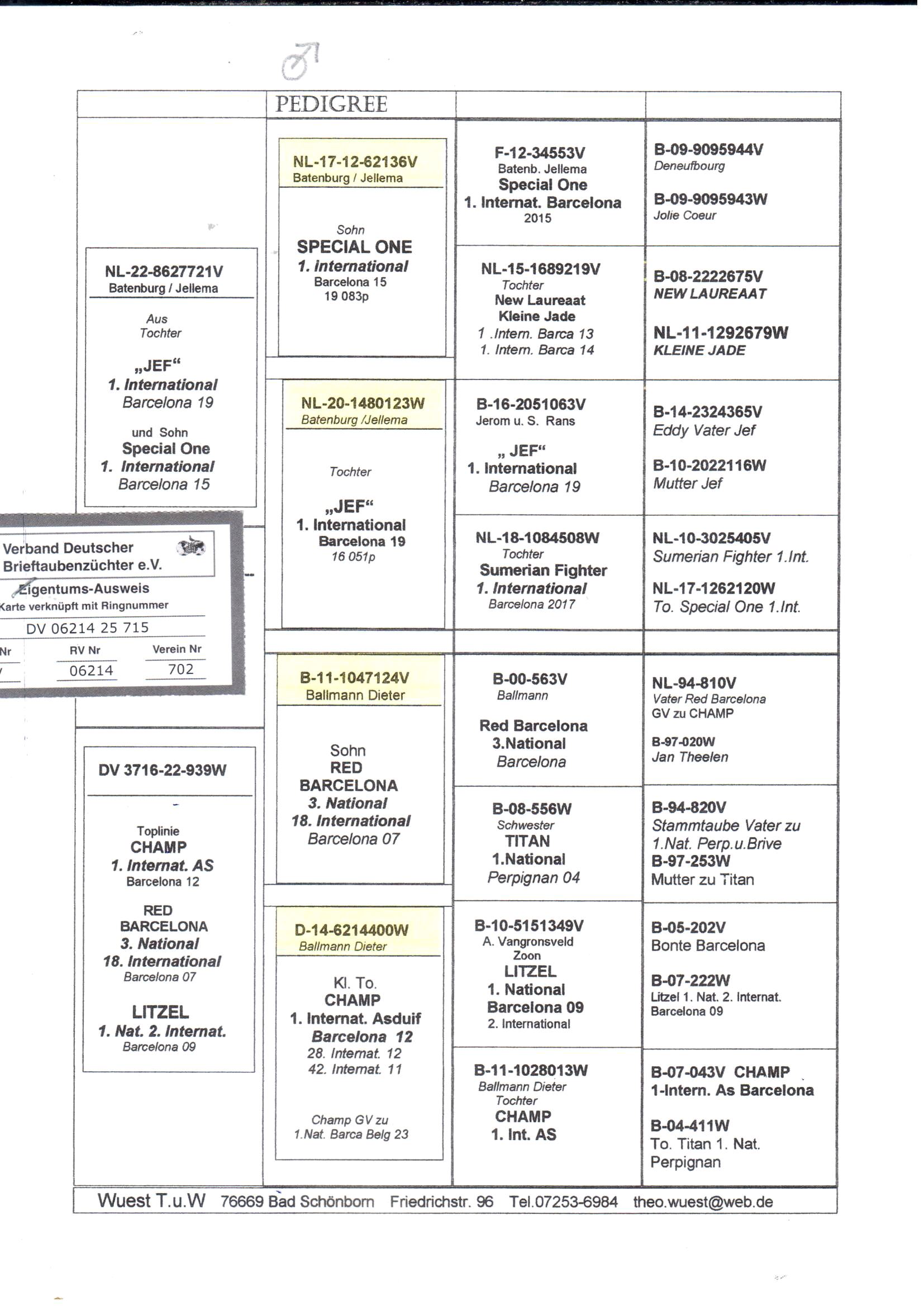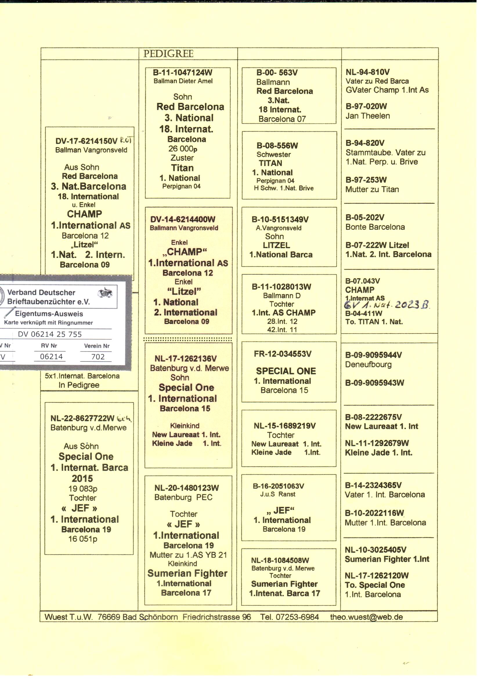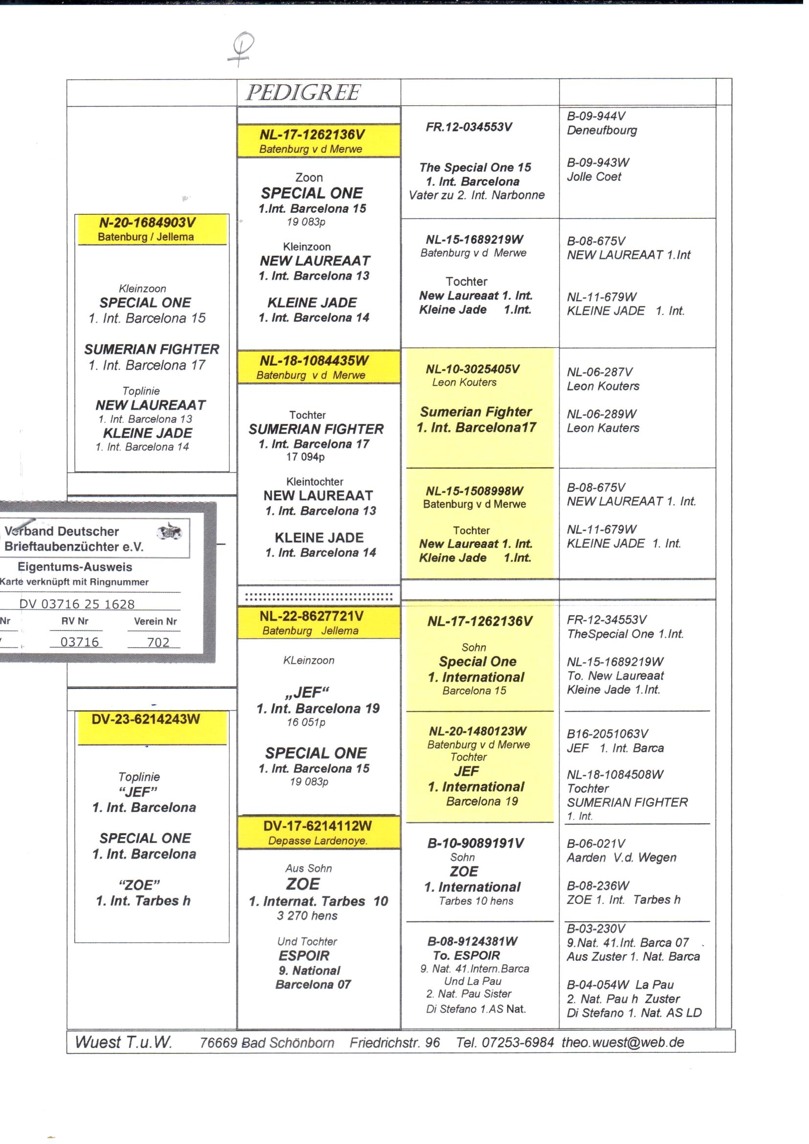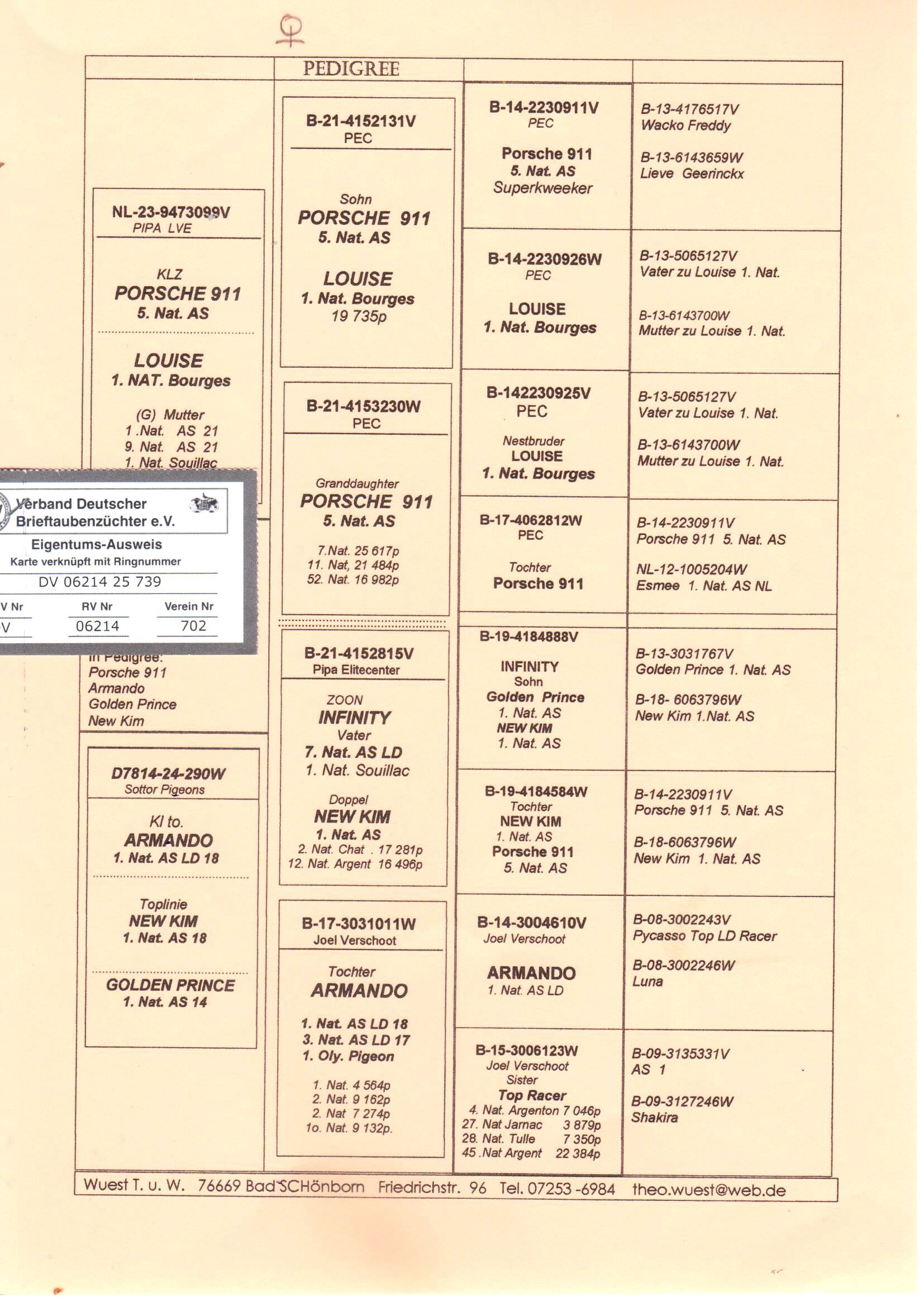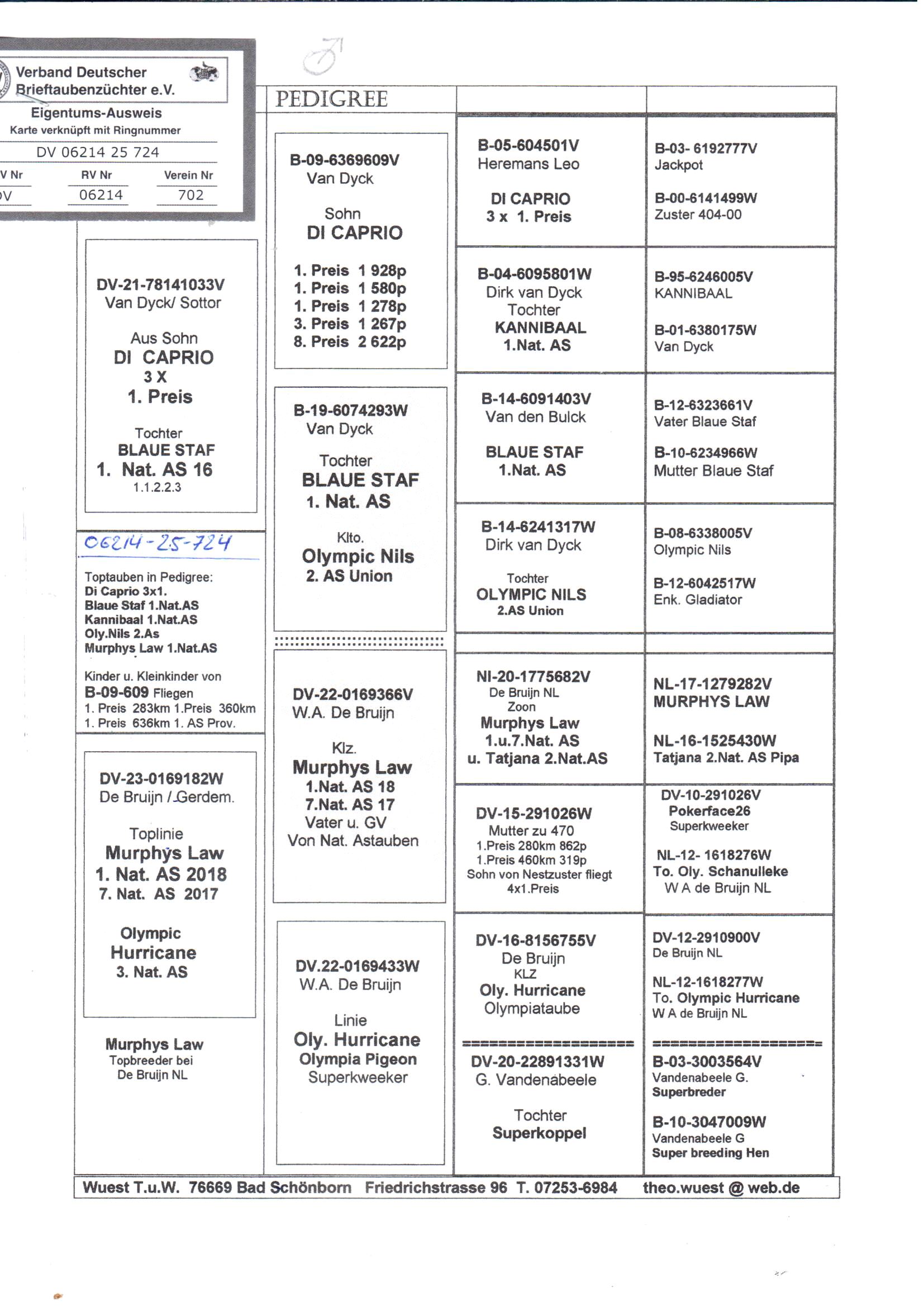 In het Duitse Bad Schönborn, gelegen halverwege tussen Frankfurt en Stuttgart, bevinden zich de hokken van Theo Wüst. Jarenlang gaat hij reeds op zoek naar afstammelingen van de allerbeste duiven ter wereld en hij bespaarde kosten noch moeite om deze in huis te halen. Wereldnamen als Kittel, Greipel, Porsche, White Man, Olympic Rico, Kaasboer, Wonderboy, Jackpot, Special One, Golden Prince, Harry, Jef, Champ, Murphy's Law, Di Caprio... zijn de stokpaardjes van het kweekhok van Theo Wüst. Zijn neus voor topduiven bracht hem bij de beste liefhebbers wereldwijd en zorgde ervoor dat het intussen één van de meest gerenommeerde hokken werd, met talrijke referenties in binnen- en buitenland!