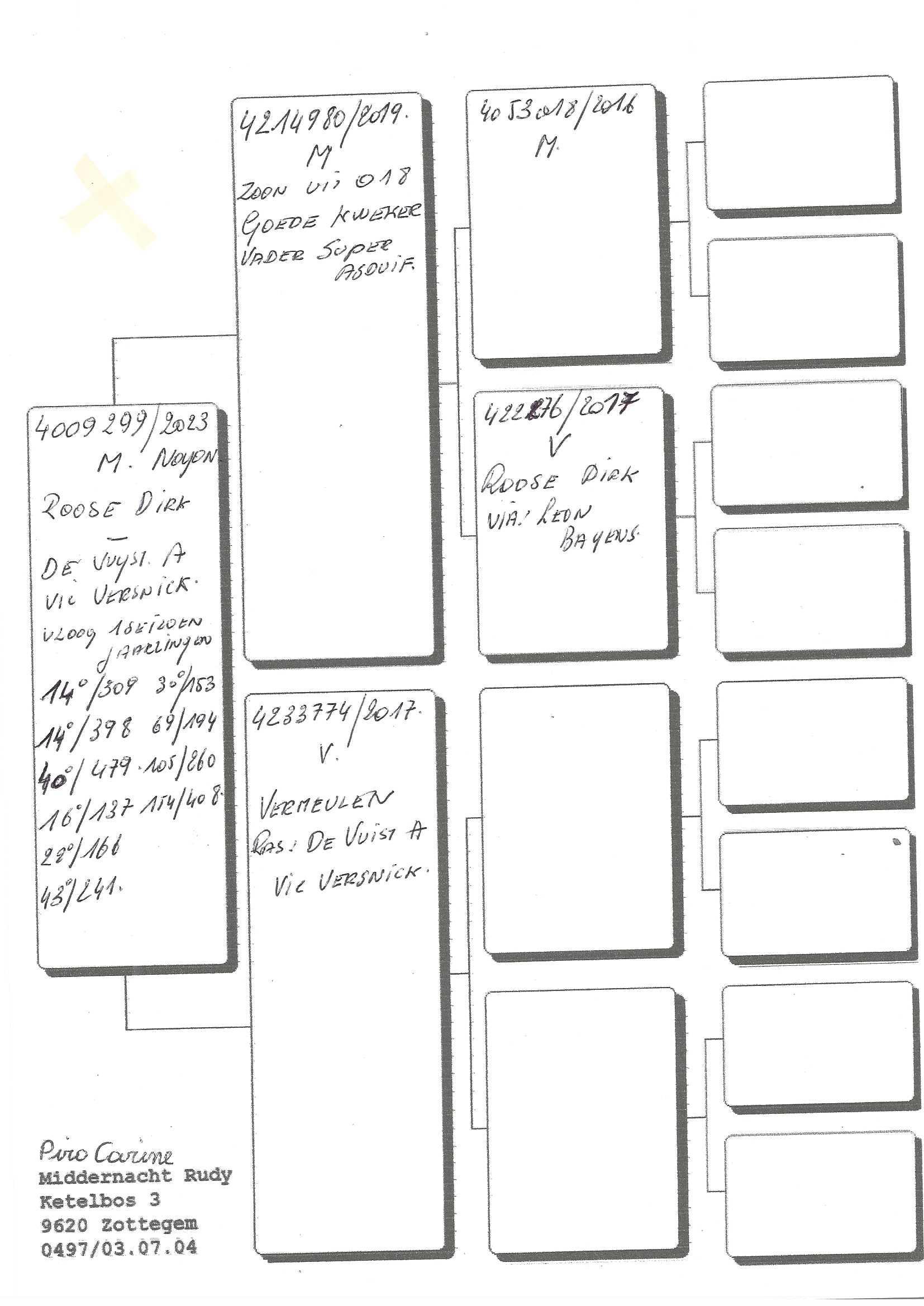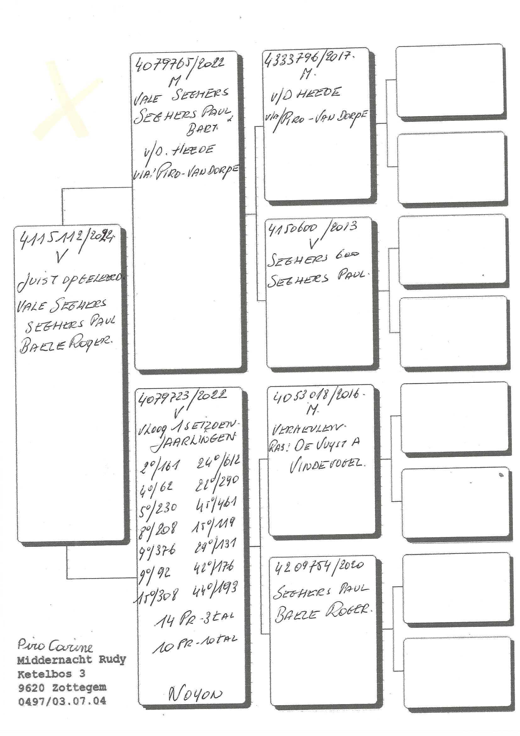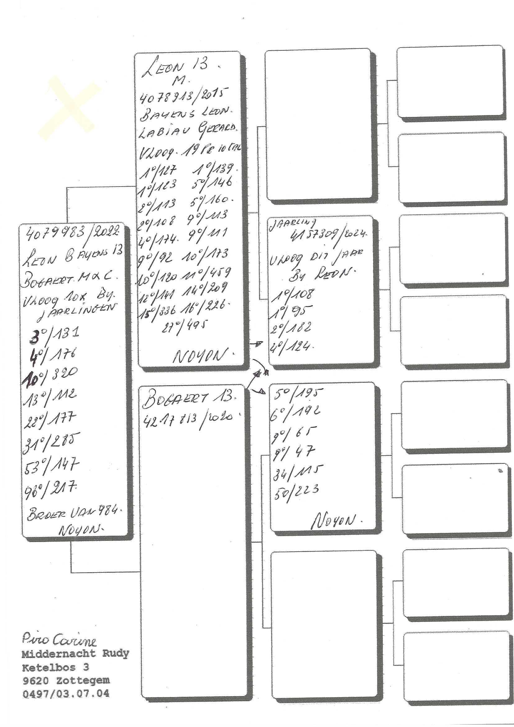 · Achterkleinkind wereldberoemd kweekkoppel Heremans Leo ‘Rossi x Spinneke’