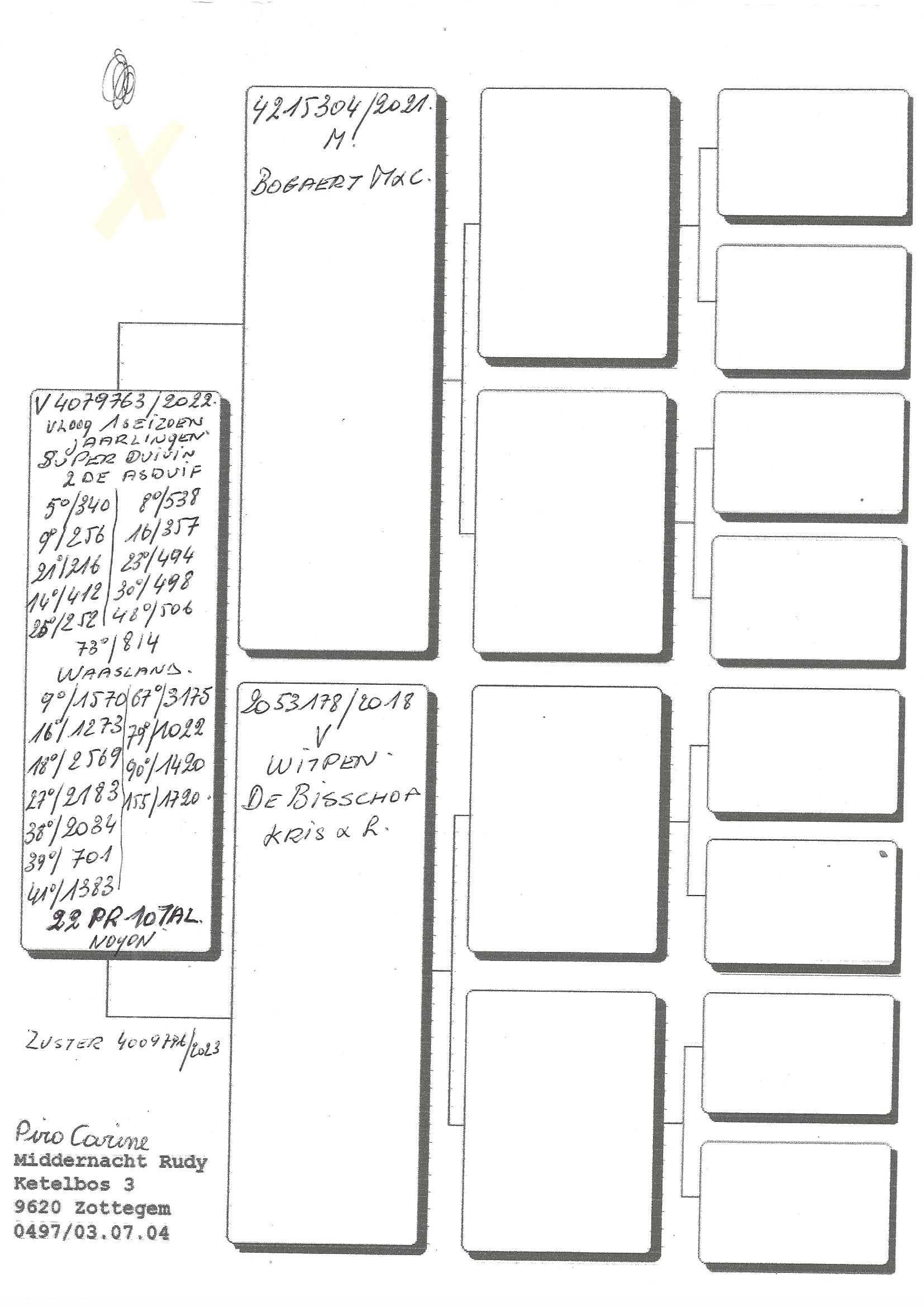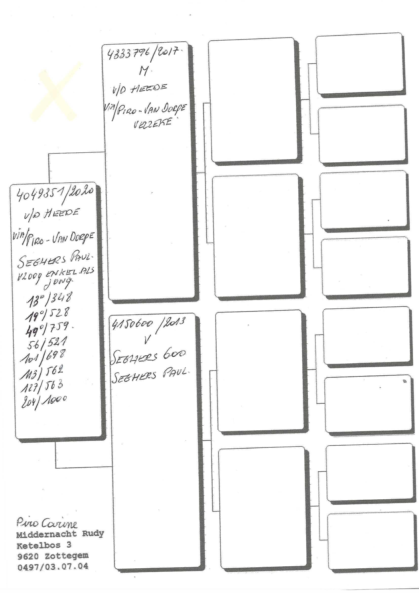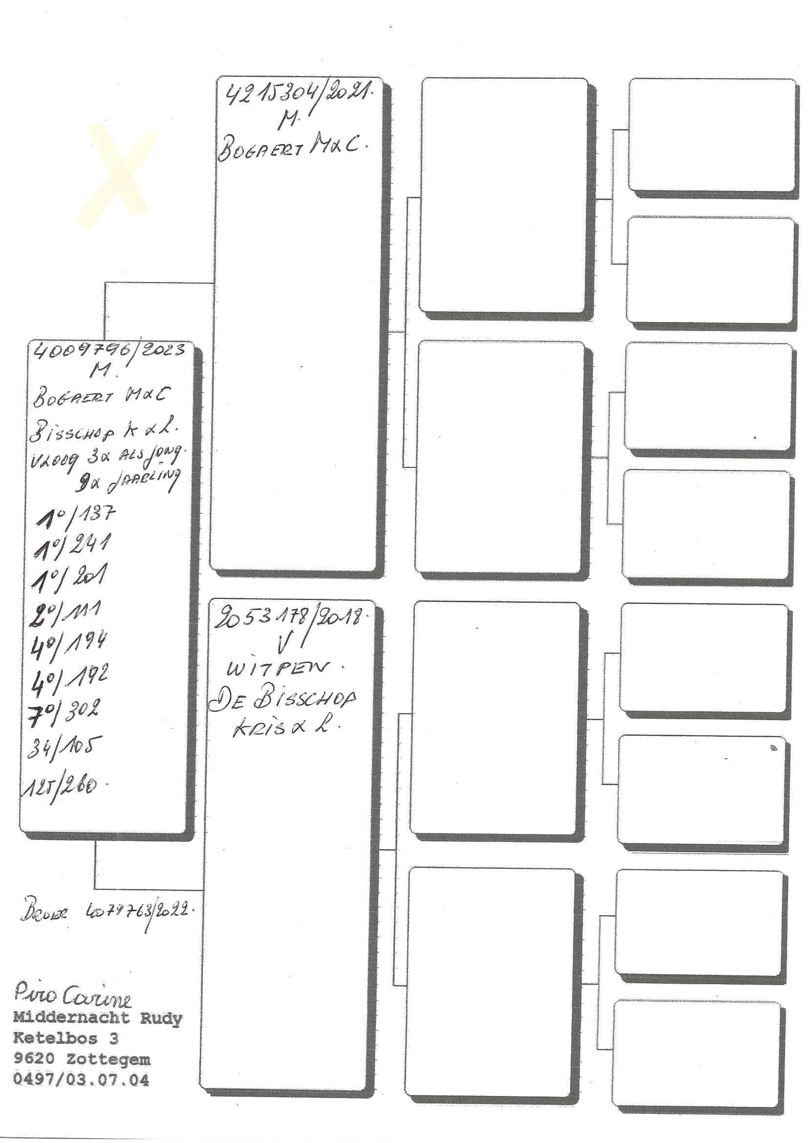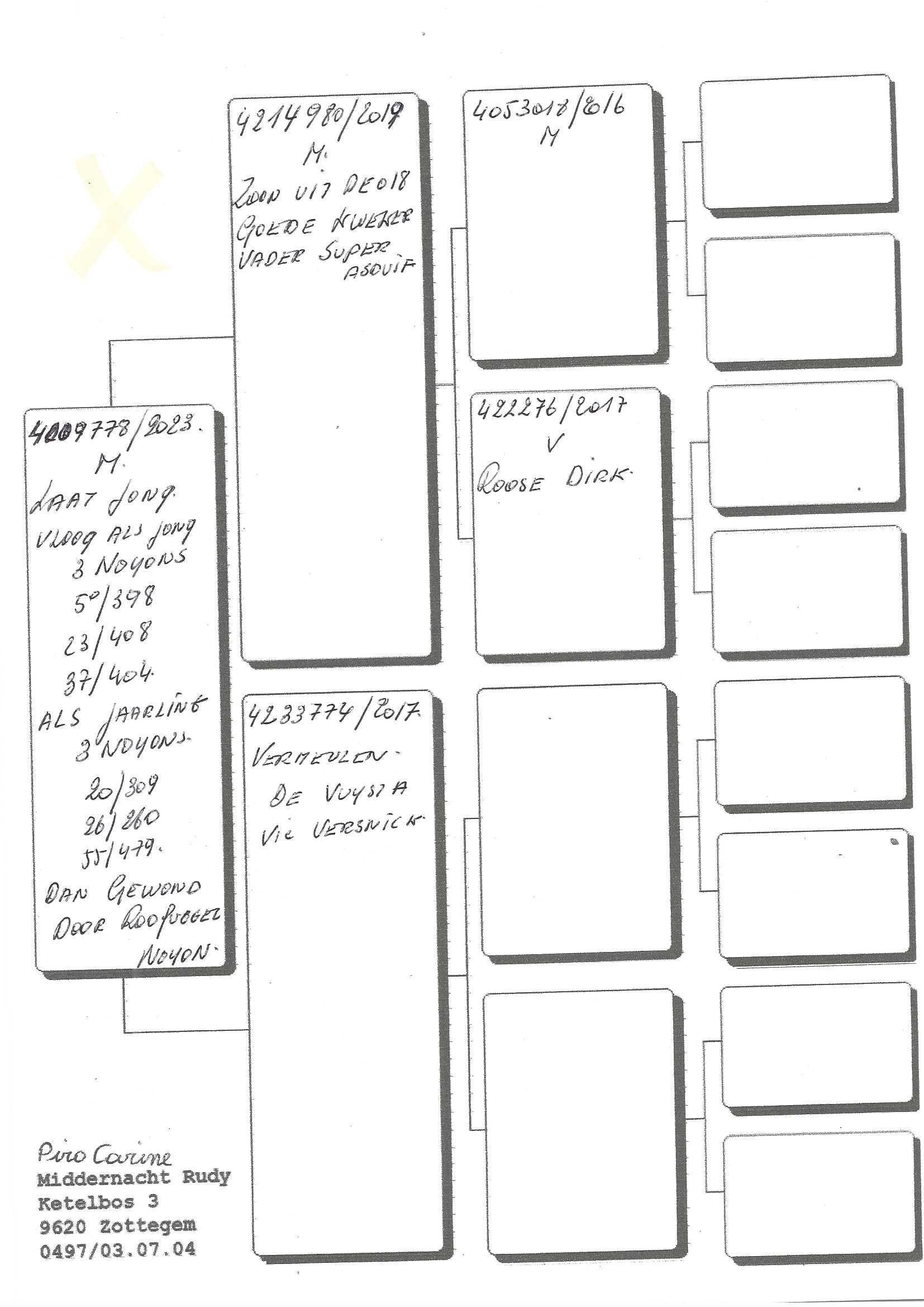 · Achterkleinkind wereldberoemd kweekkoppel Heremans Leo ‘Rossi x Spinneke’