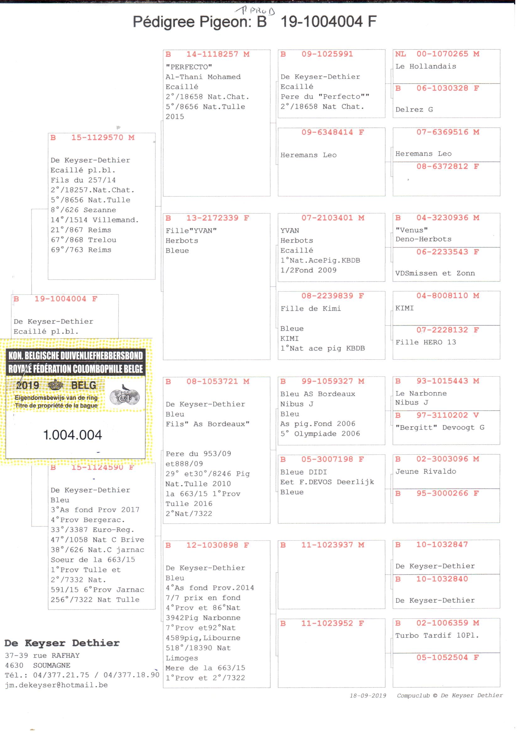 · 5e beste Belgische duif Perpignan 2018-2019
