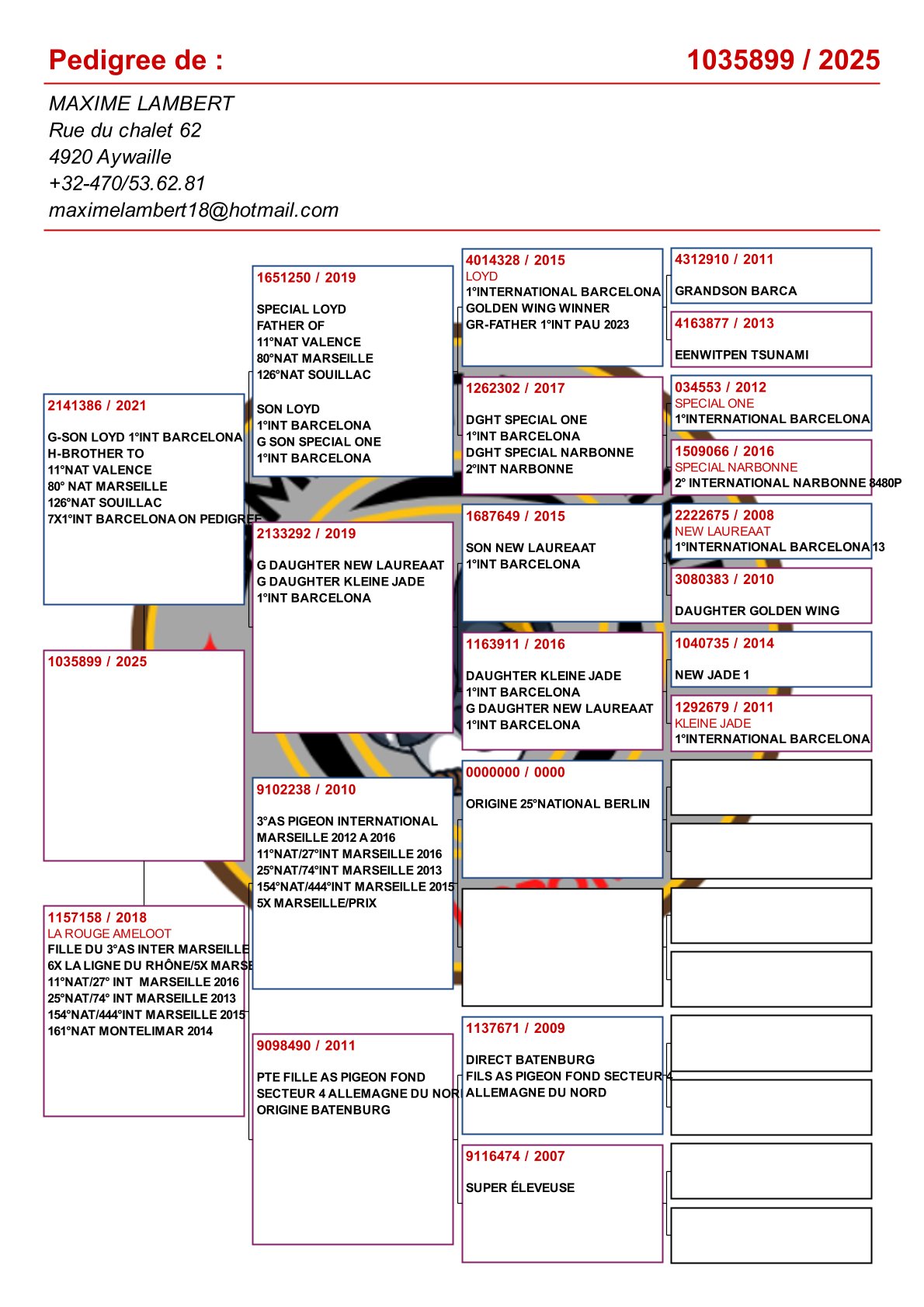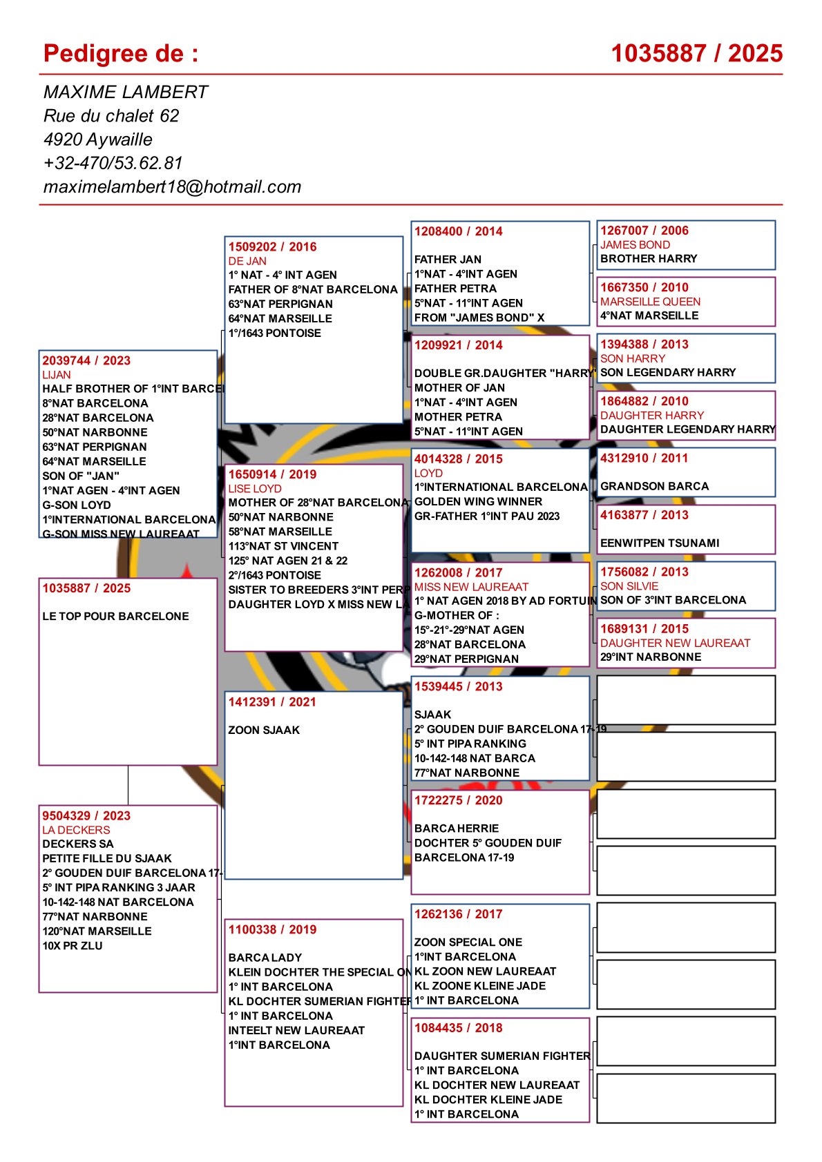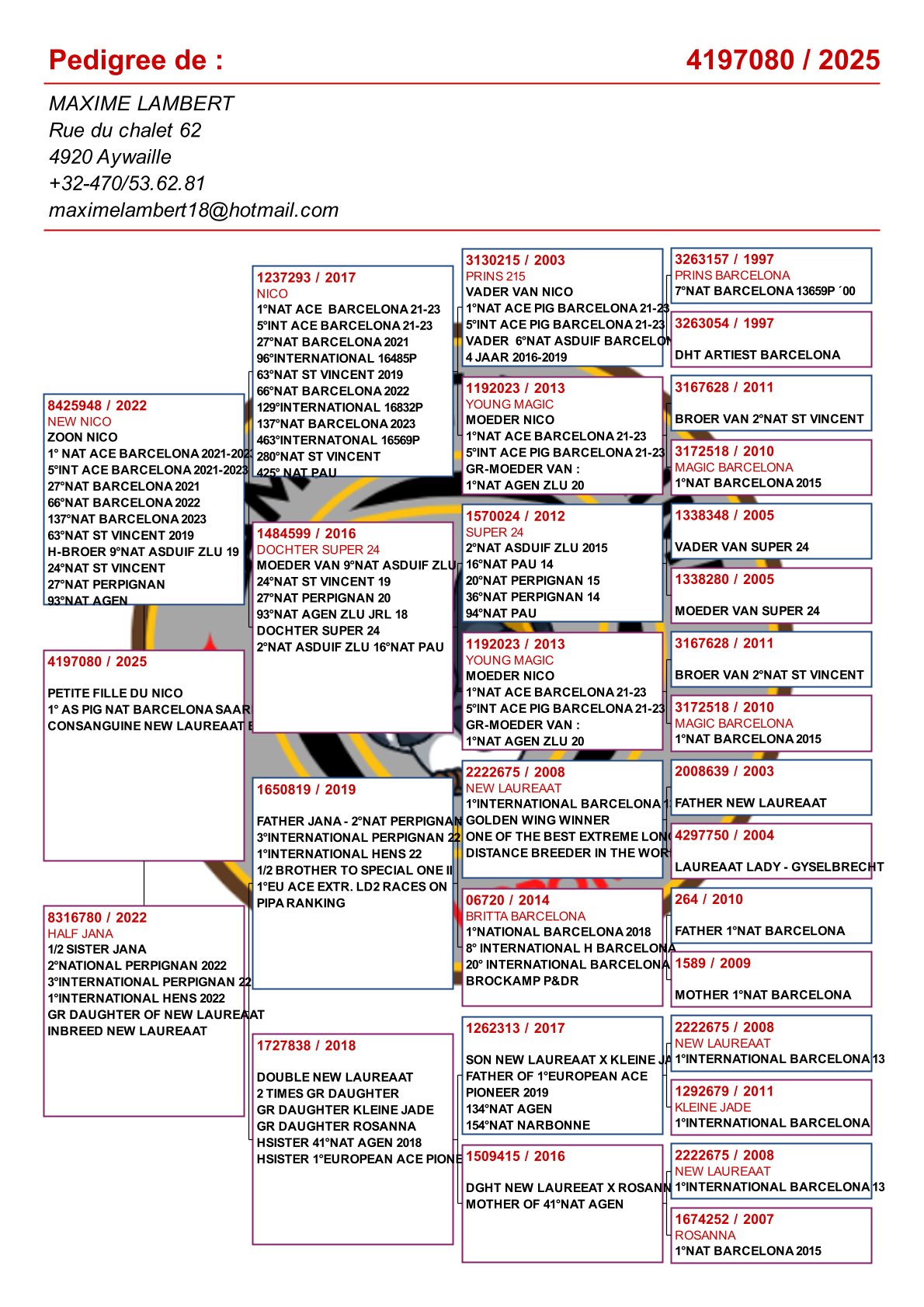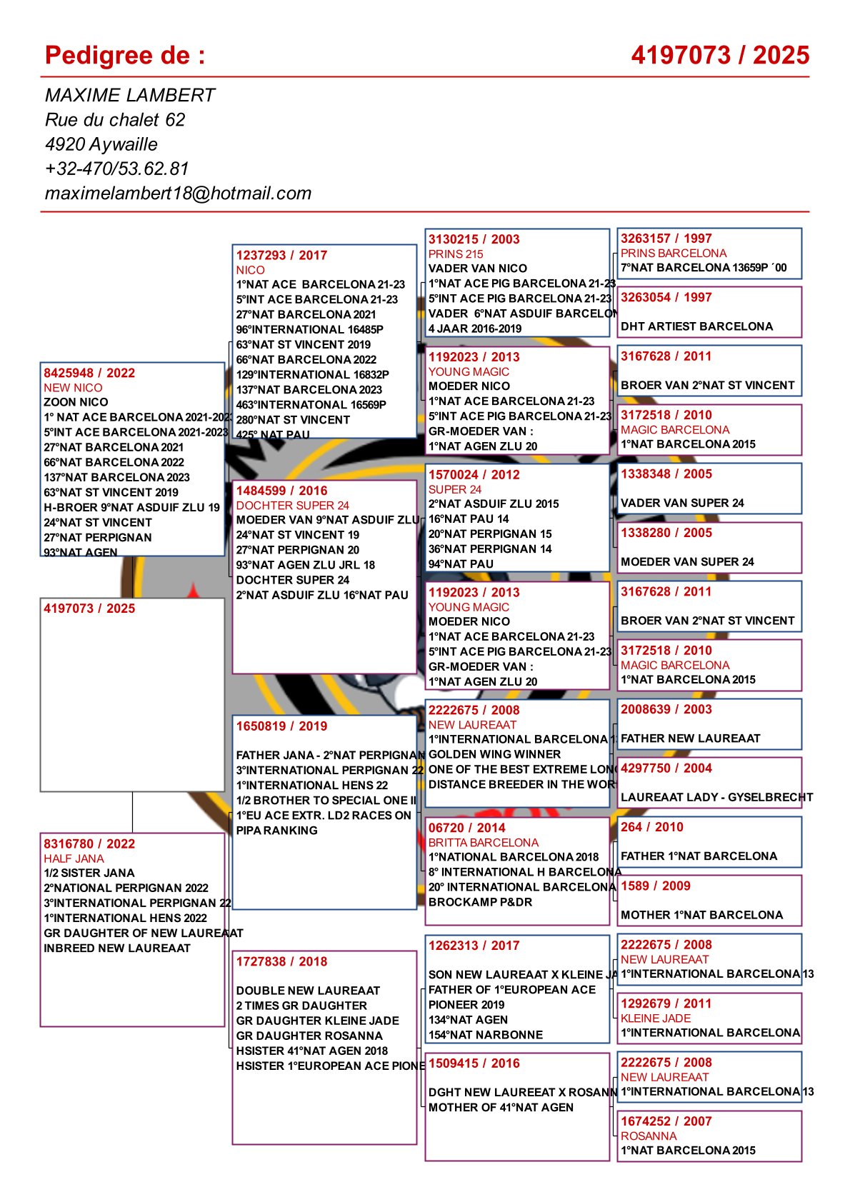 Is vader van 1. Nat Barcelona 2025 duivinnen / 2e Nat Barcelona 2025! En verder: