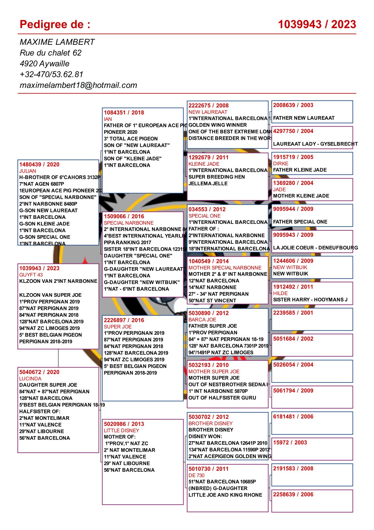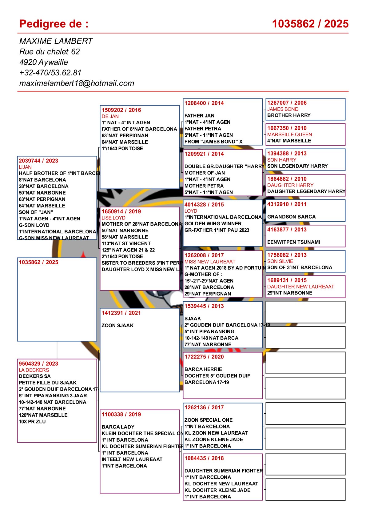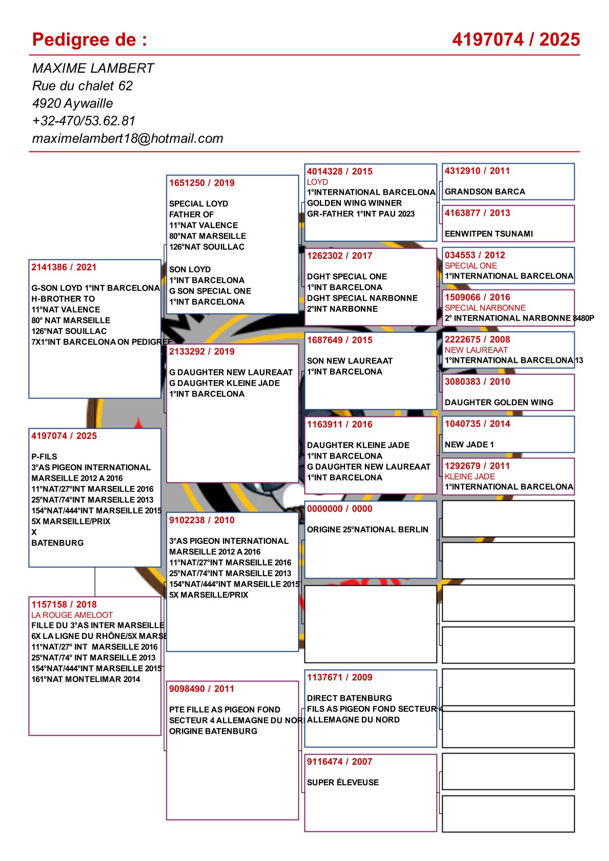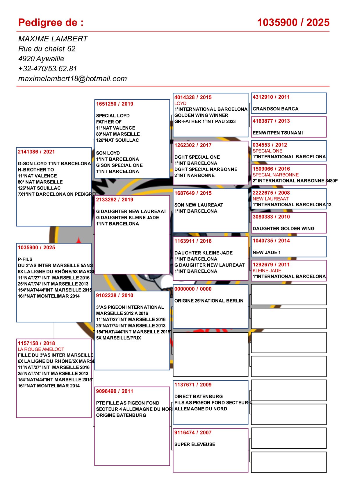 Is vader van 1. Nat Barcelona 2025 duivinnen / 2e Nat Barcelona 2025! En verder: