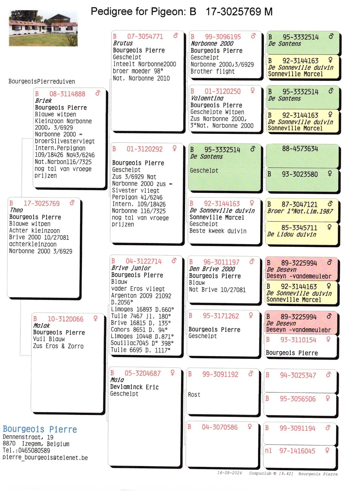 Dochter “Joost” (De Smeyter-Restiaen) Lijn 1. Internationaal Perpignan ’03, Vader van Choi” 3. Nationale Asduif , 1. Provinciale Asduif KBDB Zware Fond 2018 x “Tamaris” (moeder van “Charles” 1.Provinciaal, 2. Nationaal St-Vincent 2021) Dochter “Lempty Junior” Vloog oa 56./18390 Internationaal Perpignan x “Che Lempty”(Lempty Lijn Devooght Gast. & Danny).