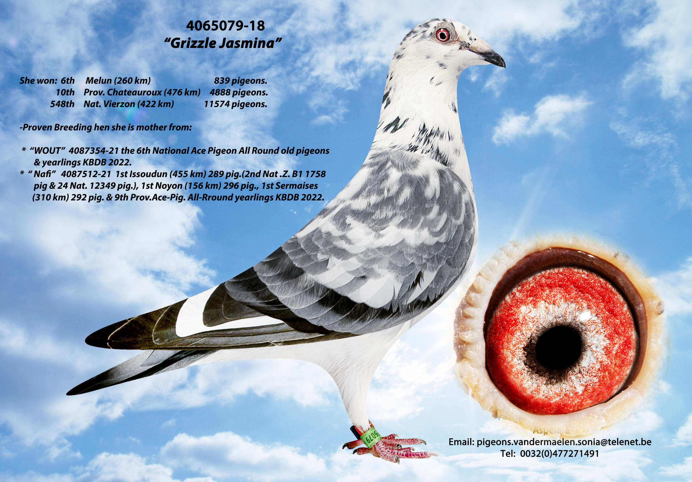 Is kleindochter van “Grizli Adams”, nestbroer van “Goed Grijs”; 7 x 1° prijs
