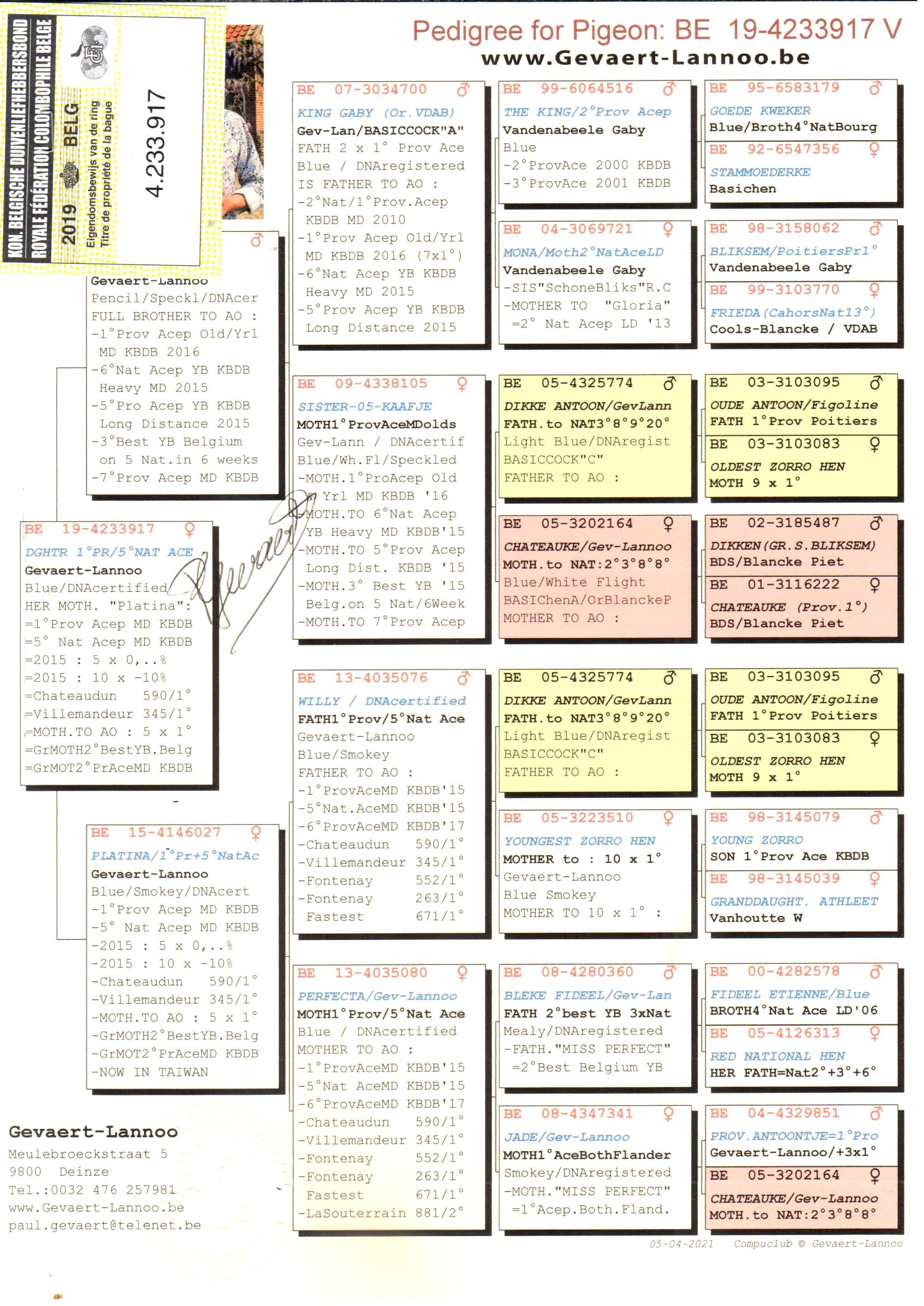 Volle Zus van “Miss Perfect” 2. Beste Duif Van België Jaarse