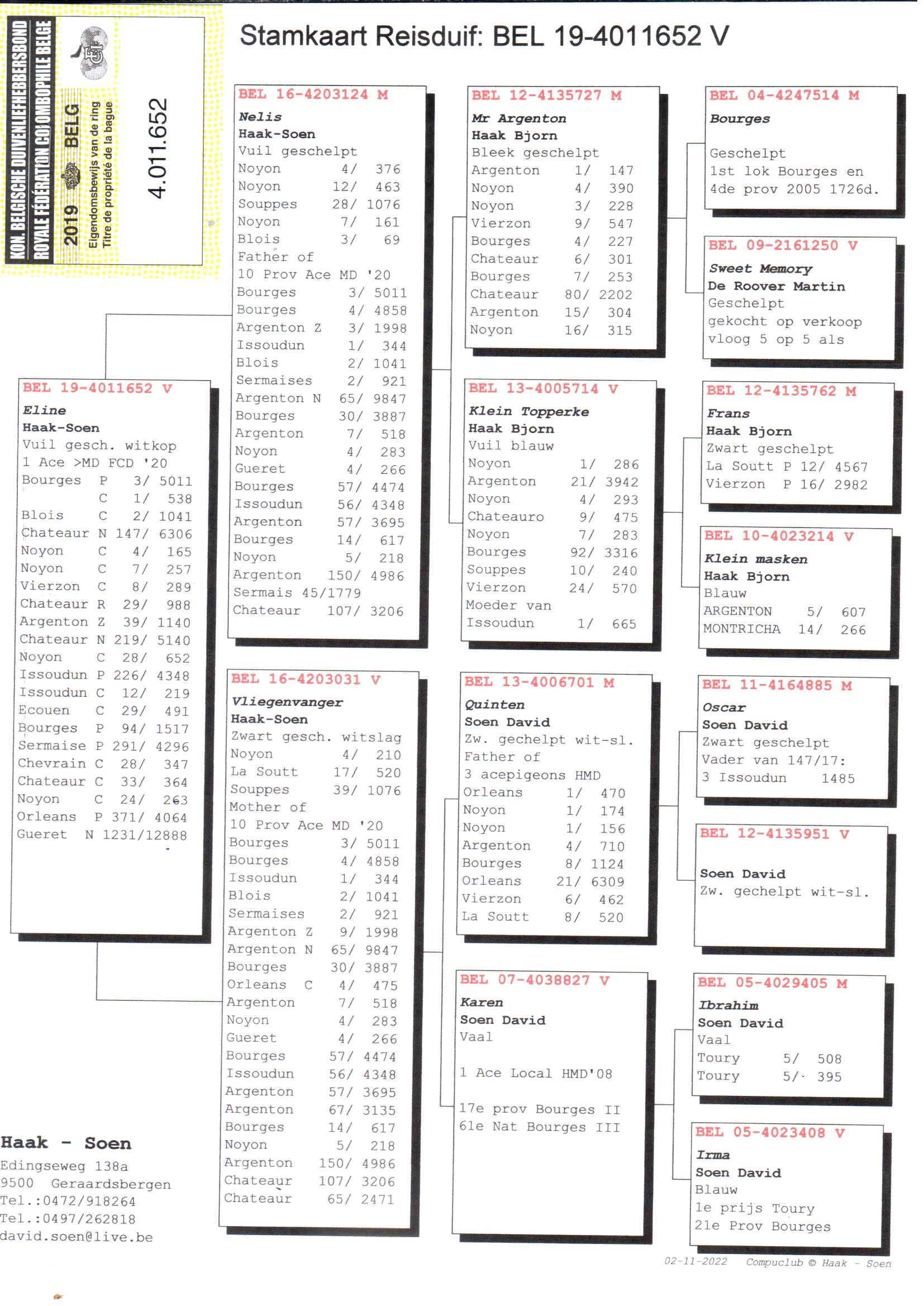 “Quinten”: Vader 3. Asduif Grote Halve Fond & 1. Club Orleans, 2 x 1. Club Noyon