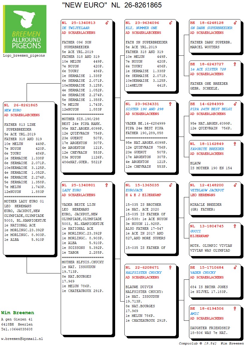 Lijn moederskant “Euro”, “Jackpot”, “New Olympiade”, “Olympiade 5003” (Eijerkamp/Heremans Leo)