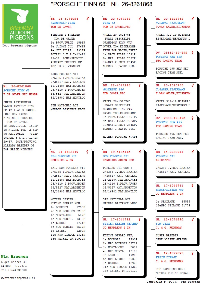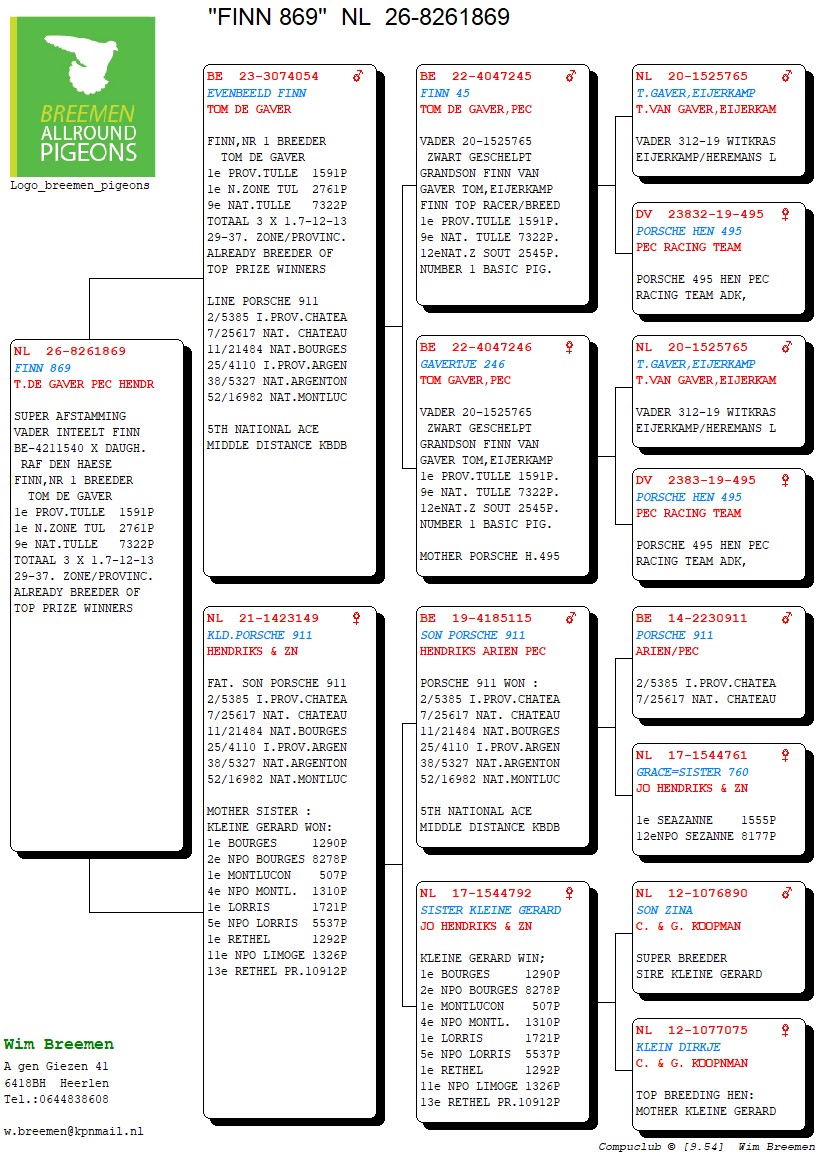 Super afstamming vaderskant “Evenbeeld Finn” (Van Gaver Tom)
