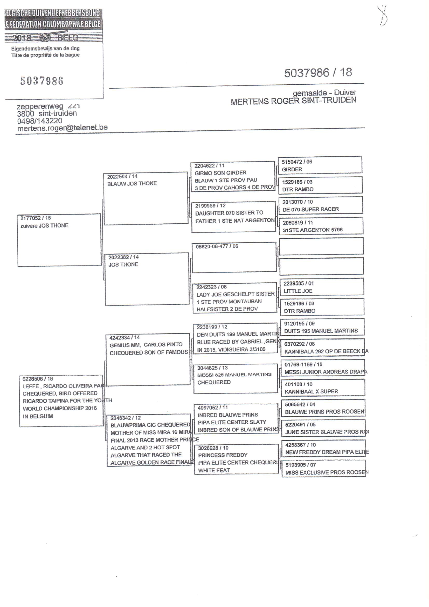 Moeder top vlieger; 30° Prov; 62° Prov; 71° Prov,...