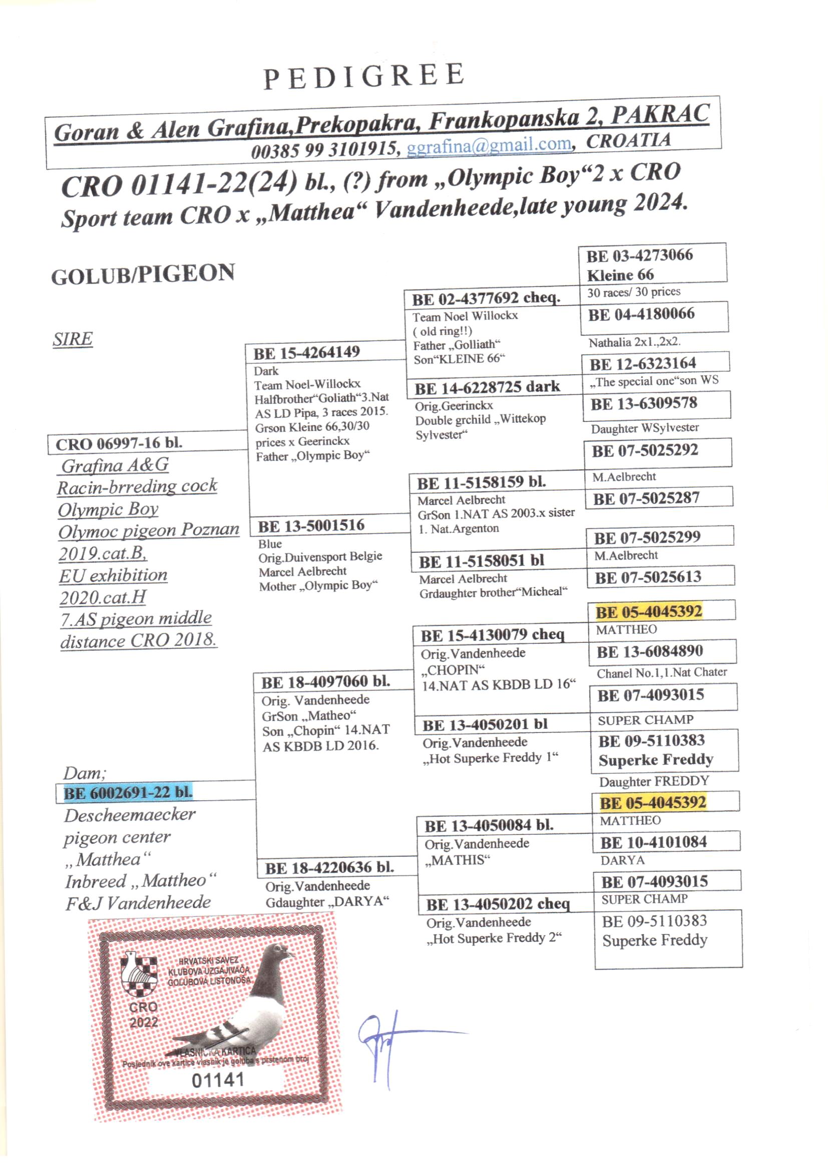· Olymiade duif Cat B 2019