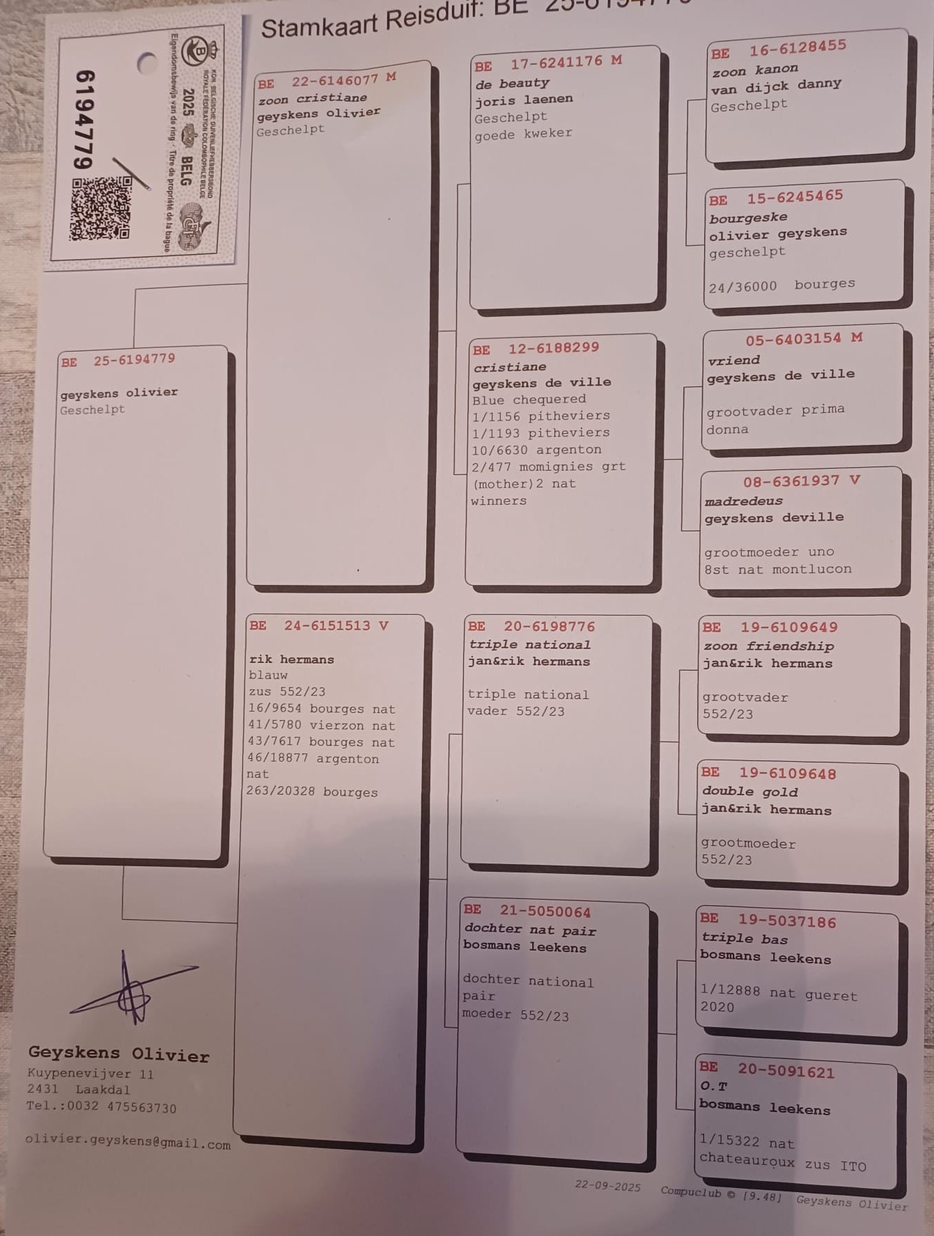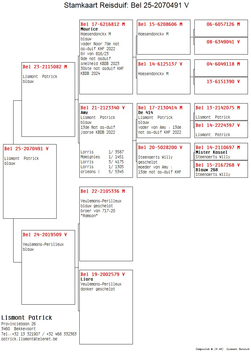 Van Limbergen Gert, Lede - duif ter plaatse