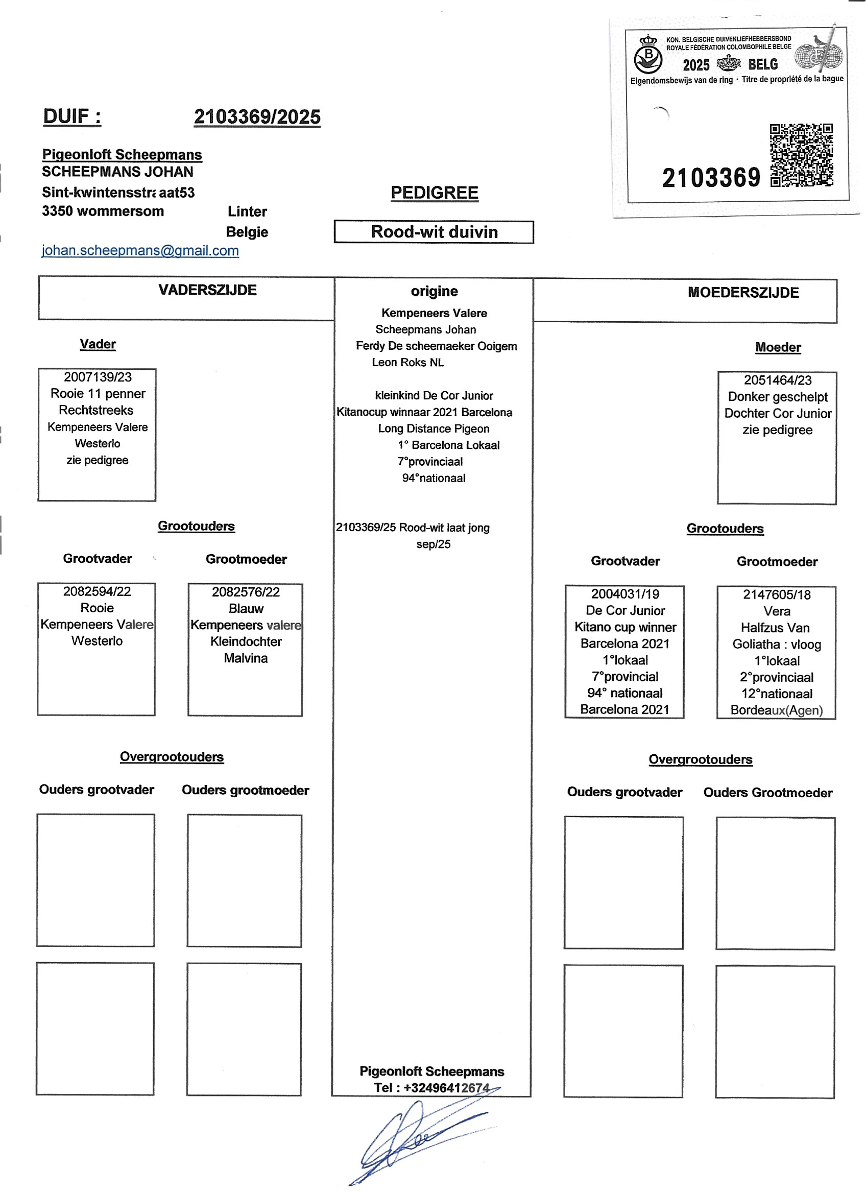 Janssens Eddy, Zandhoven - duif ter plaatse