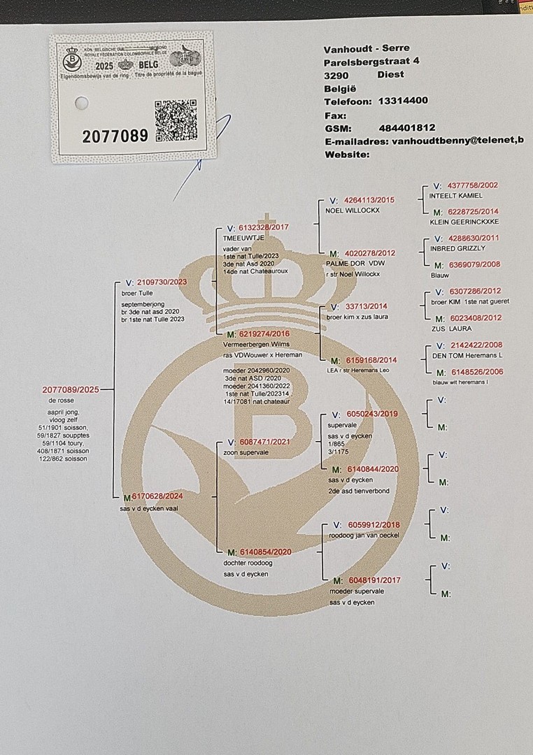Haesevoets Flor en zonen, Nieuwerkerken-Kozen - jonge duif op afspraak