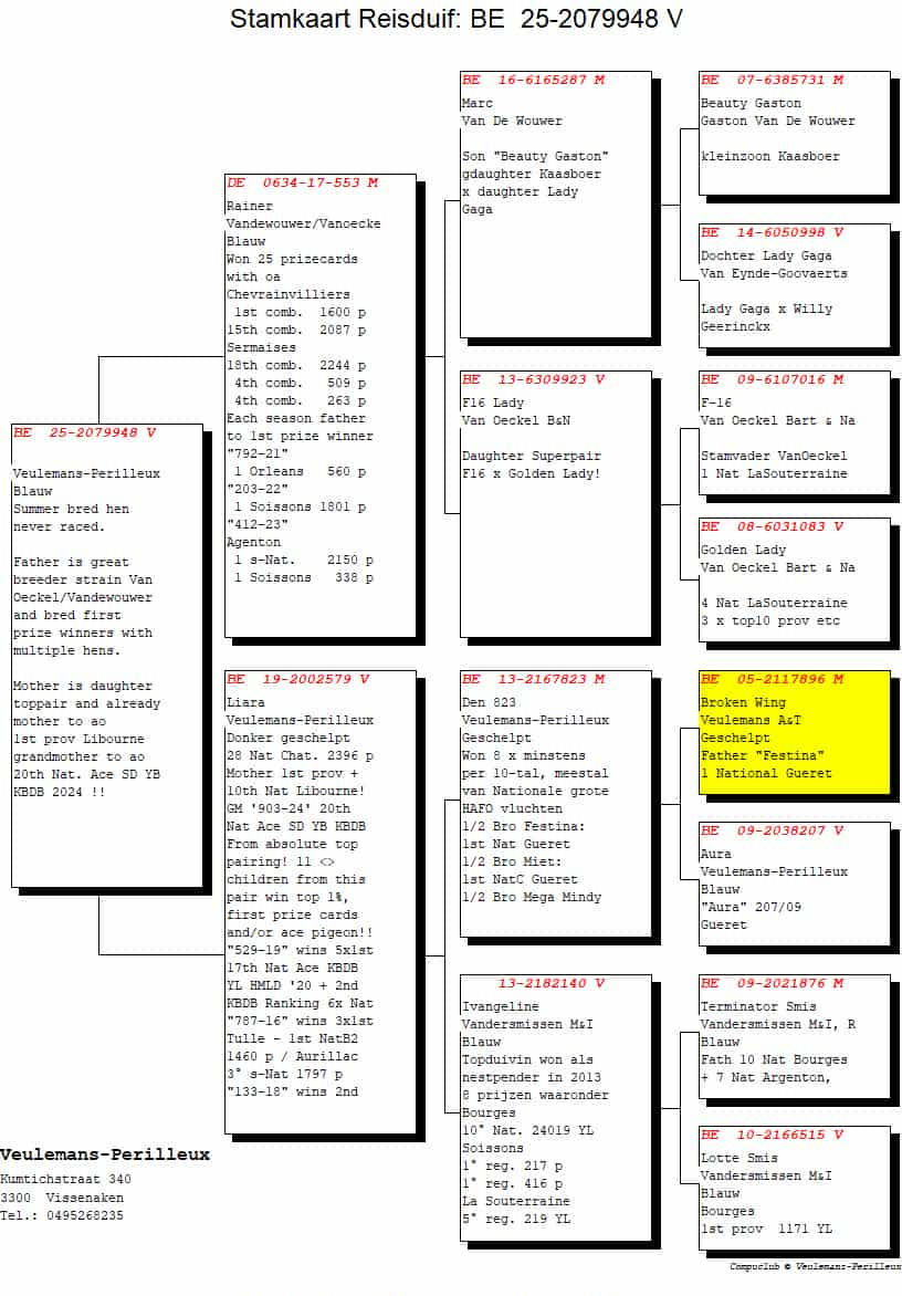 Veulemans-Perilleux, Vissenaken - duif ter plaatse