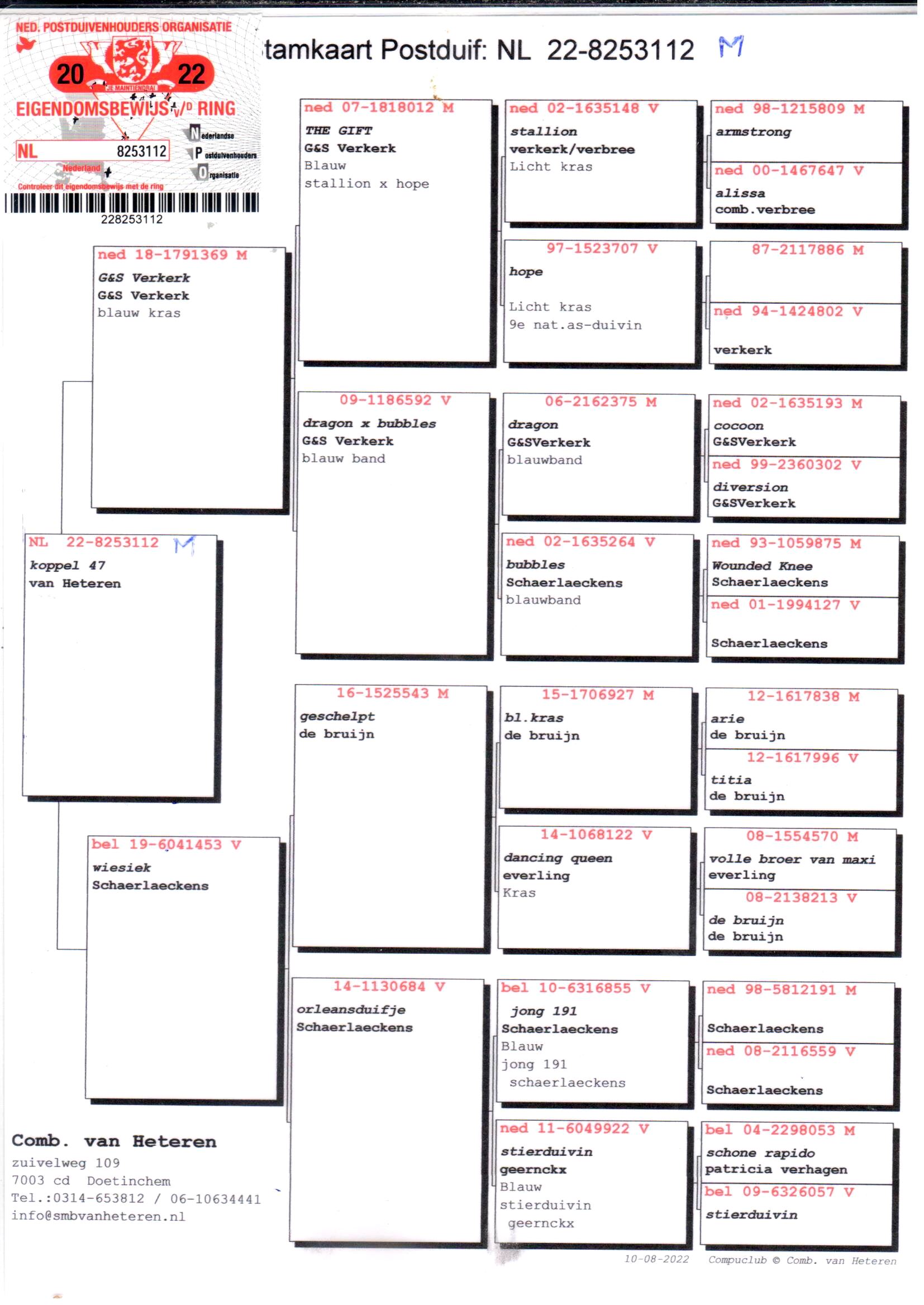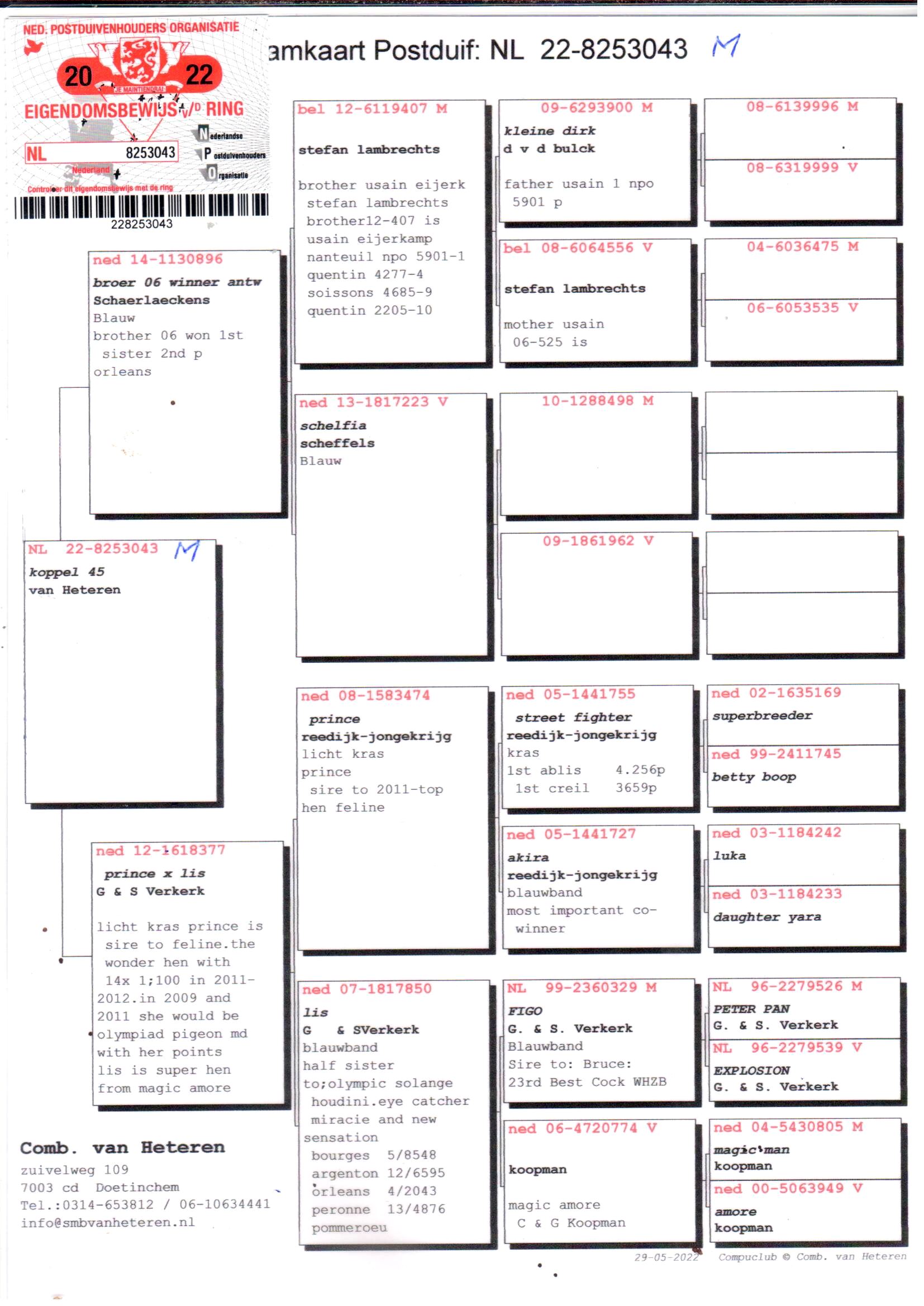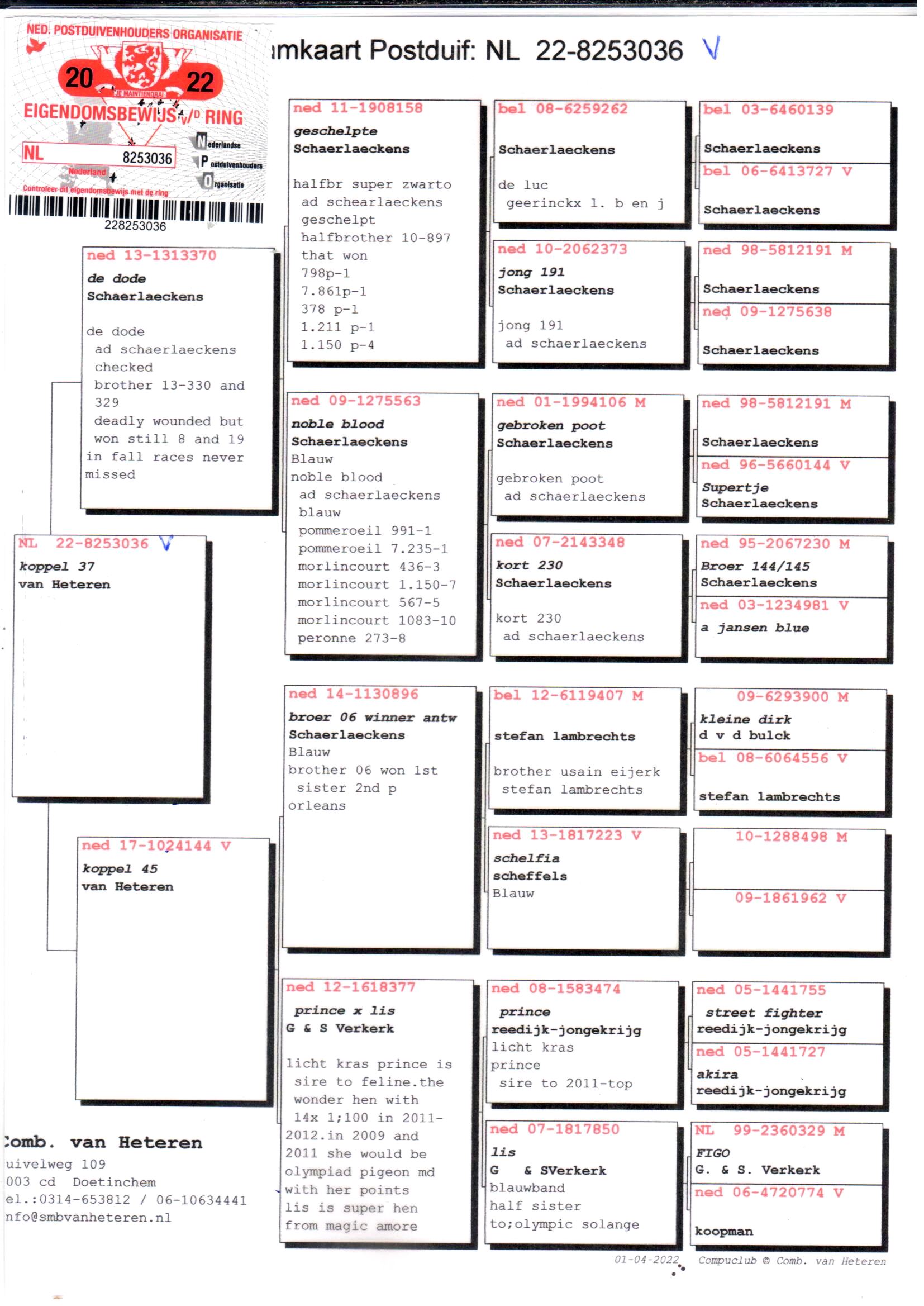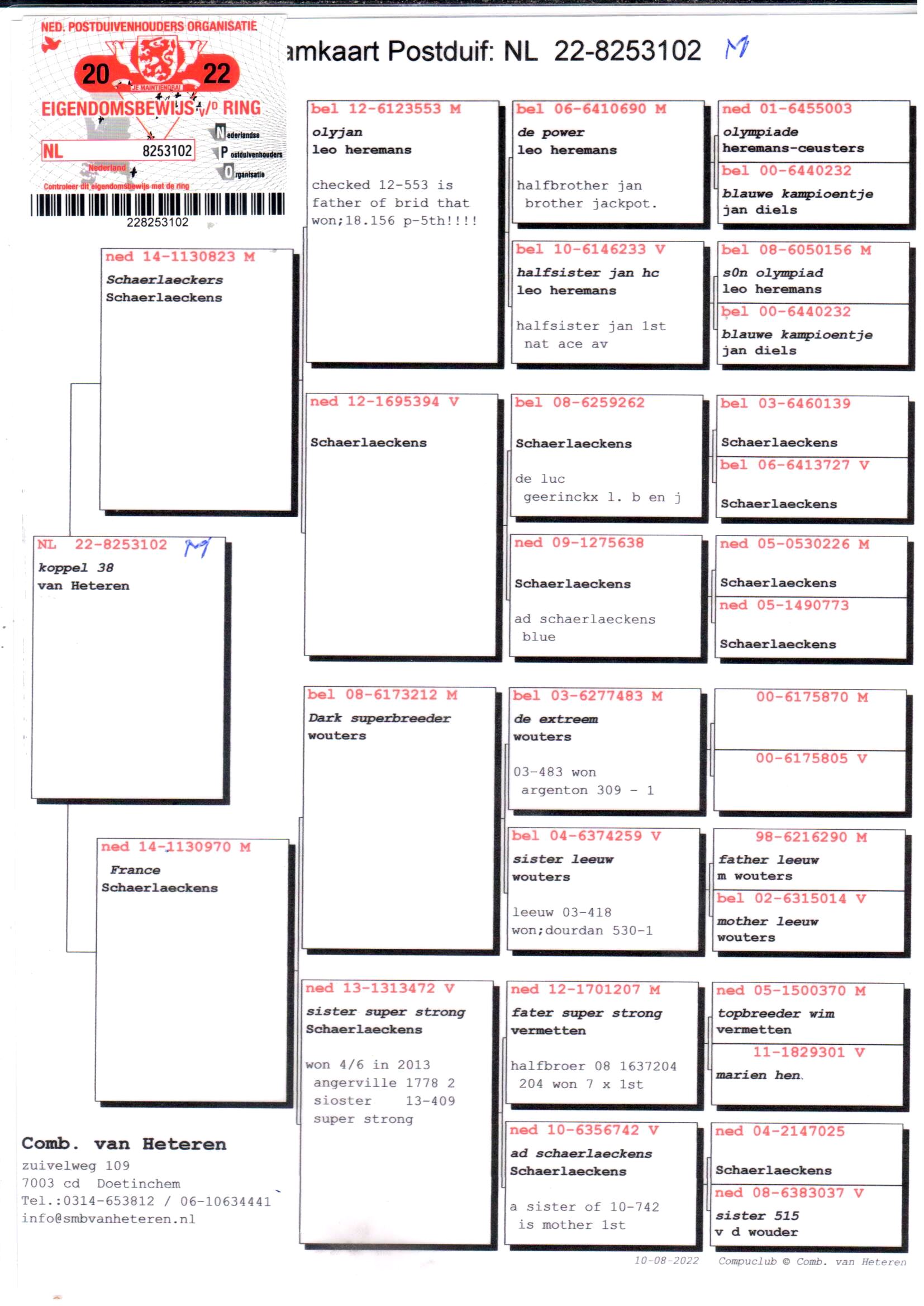At the end of 2024, the curtain fell for good on the colony of Frans and Betsie van Heteren. Well known among our northern neighbours as one of the best lofts in the sprint and middle distance, they were not afraid to go all out with chain wins. The Combinatie van Heteren team was built on two bloodlines: G&S Verkerk and Ad Schaerlaeckens. These two world-class breeds also formed the world-famous ‘Pair 45’. This top pair produced a series of true thoroughbreds that were able to win against thousands of pigeons. Direct offspring of this pair won, among others: