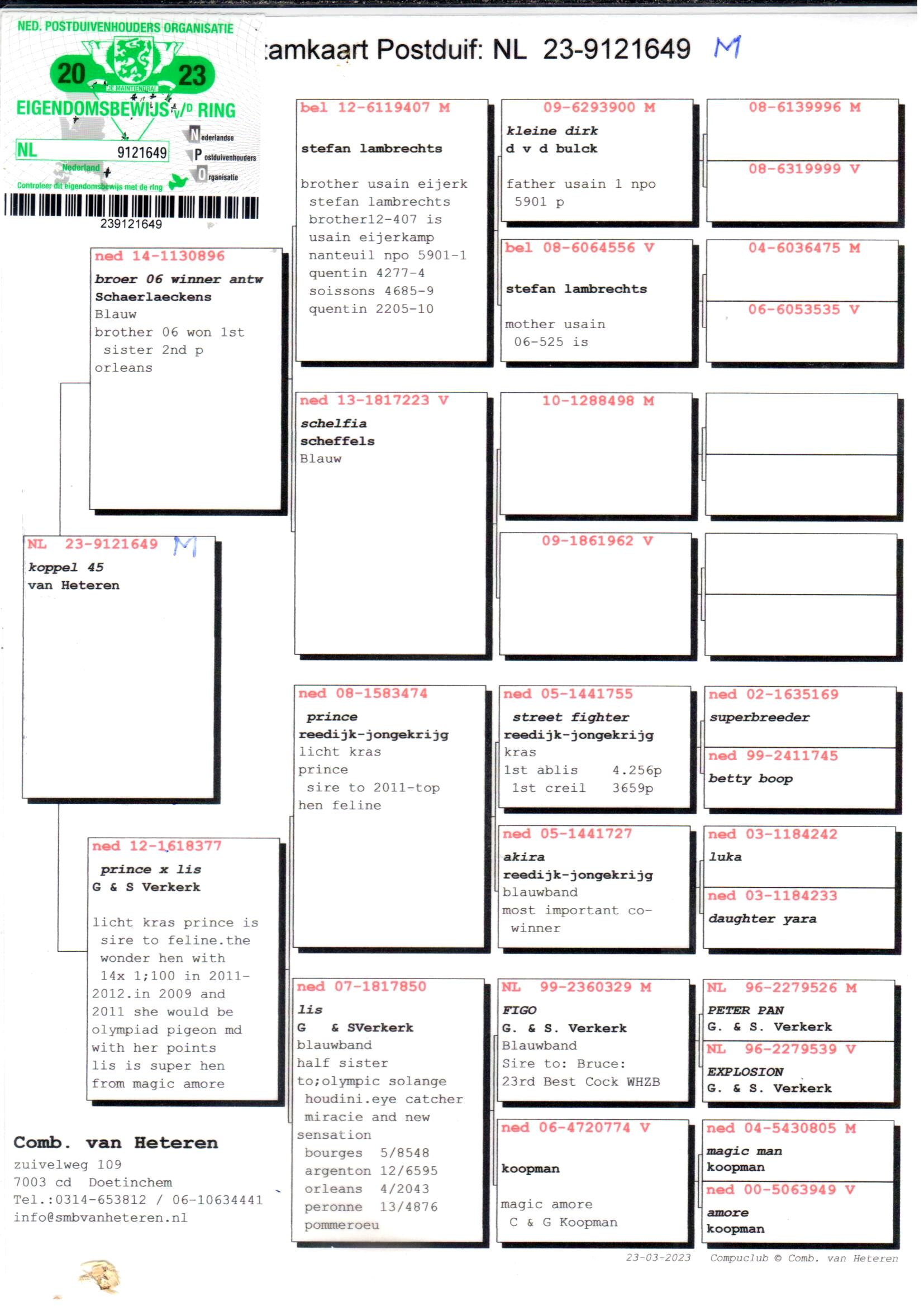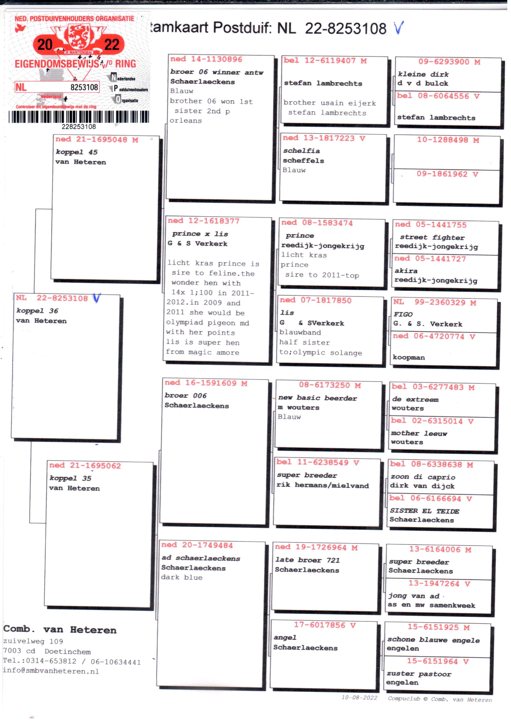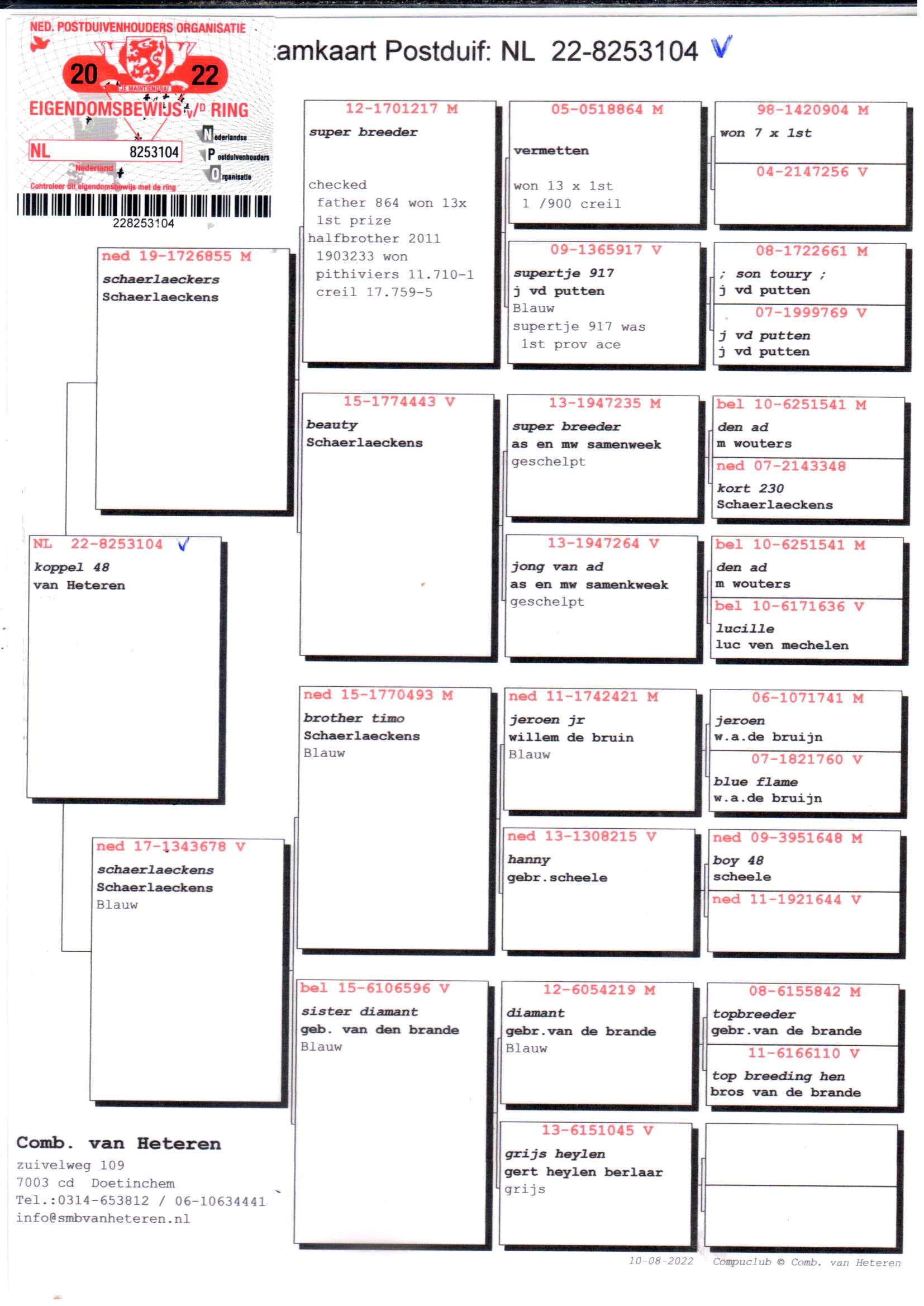 At the end of 2024, the curtain fell for good on the colony of Frans and Betsie van Heteren. Well known among our northern neighbours as one of the best lofts in the sprint and middle distance, they were not afraid to go all out with chain wins. The Combinatie van Heteren team was built on two bloodlines: G&S Verkerk and Ad Schaerlaeckens. These two world-class breeds also formed the world-famous ‘Pair 45’. This top pair produced a series of true thoroughbreds that were able to win against thousands of pigeons. Direct offspring of this pair won, among others: