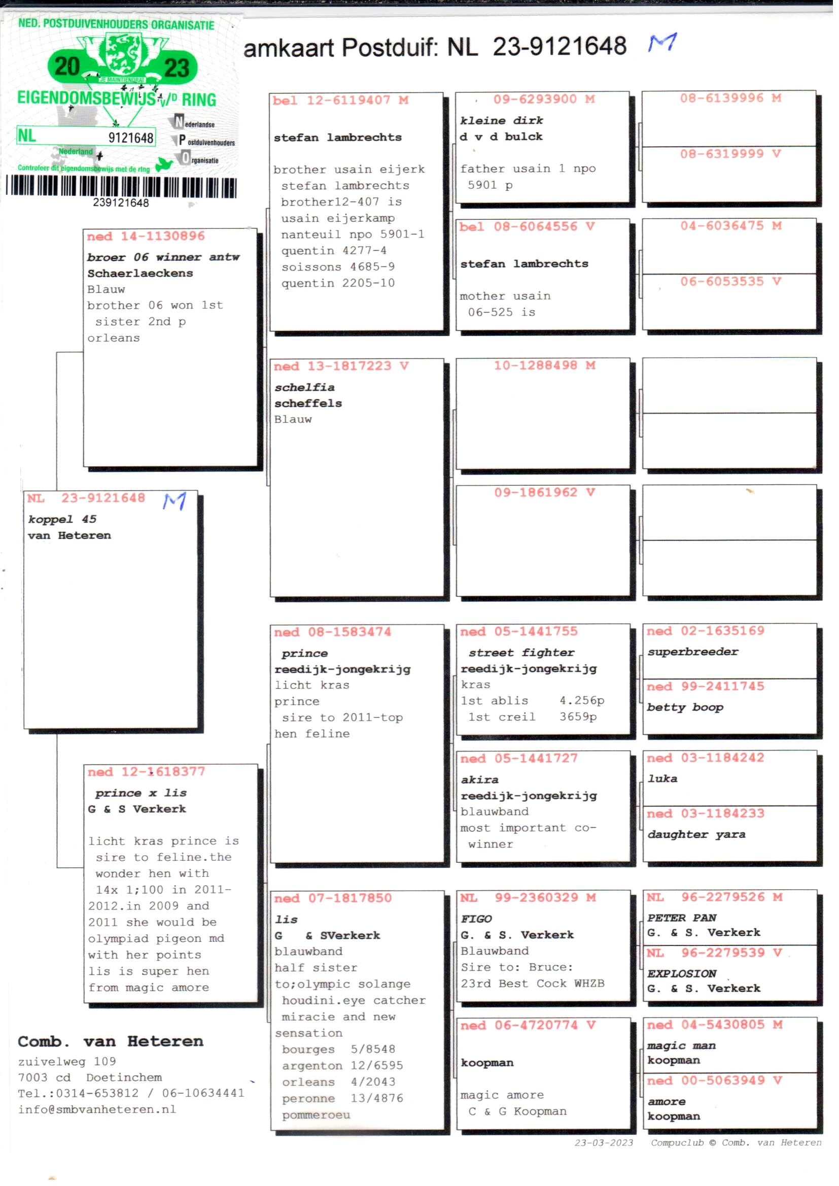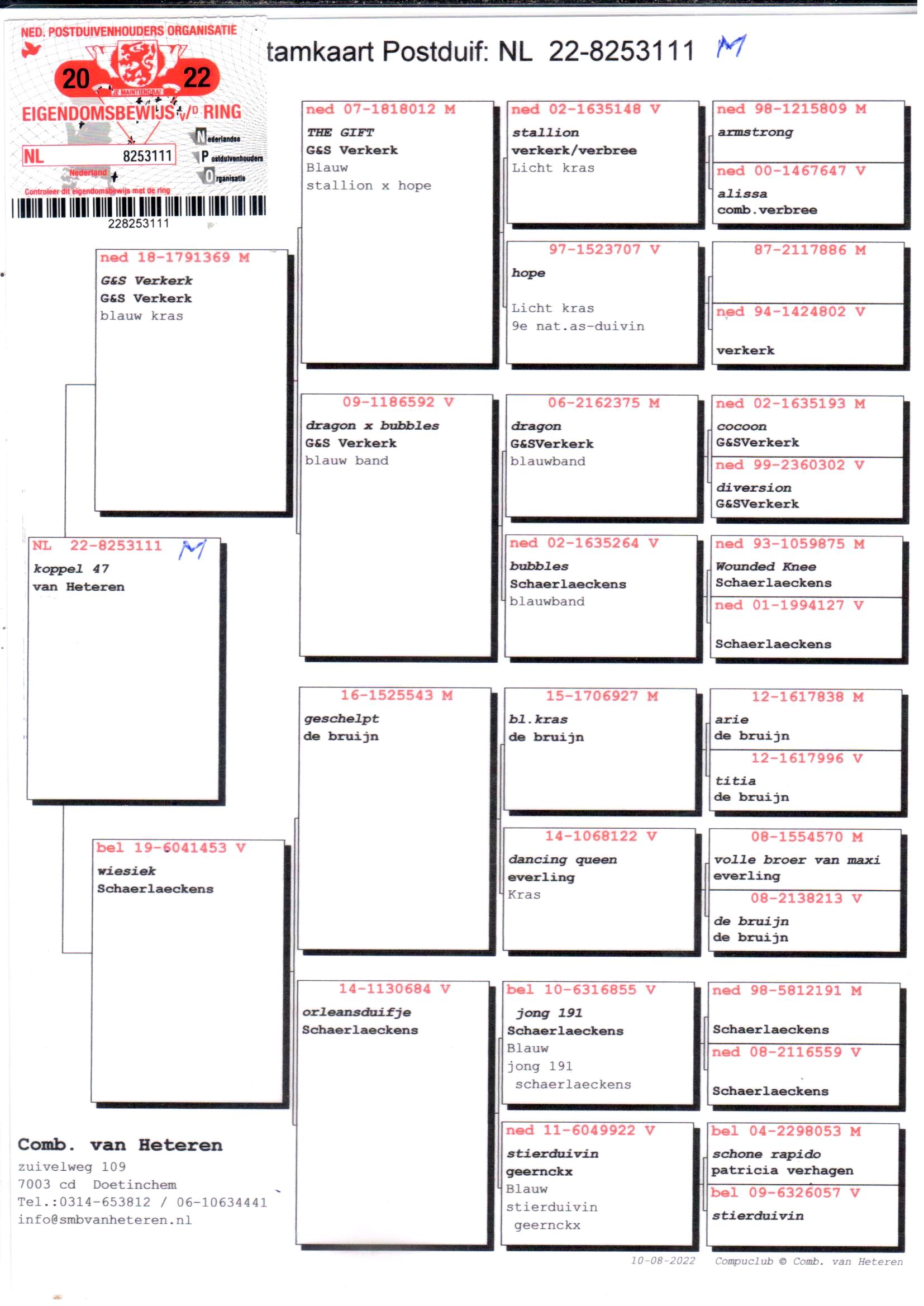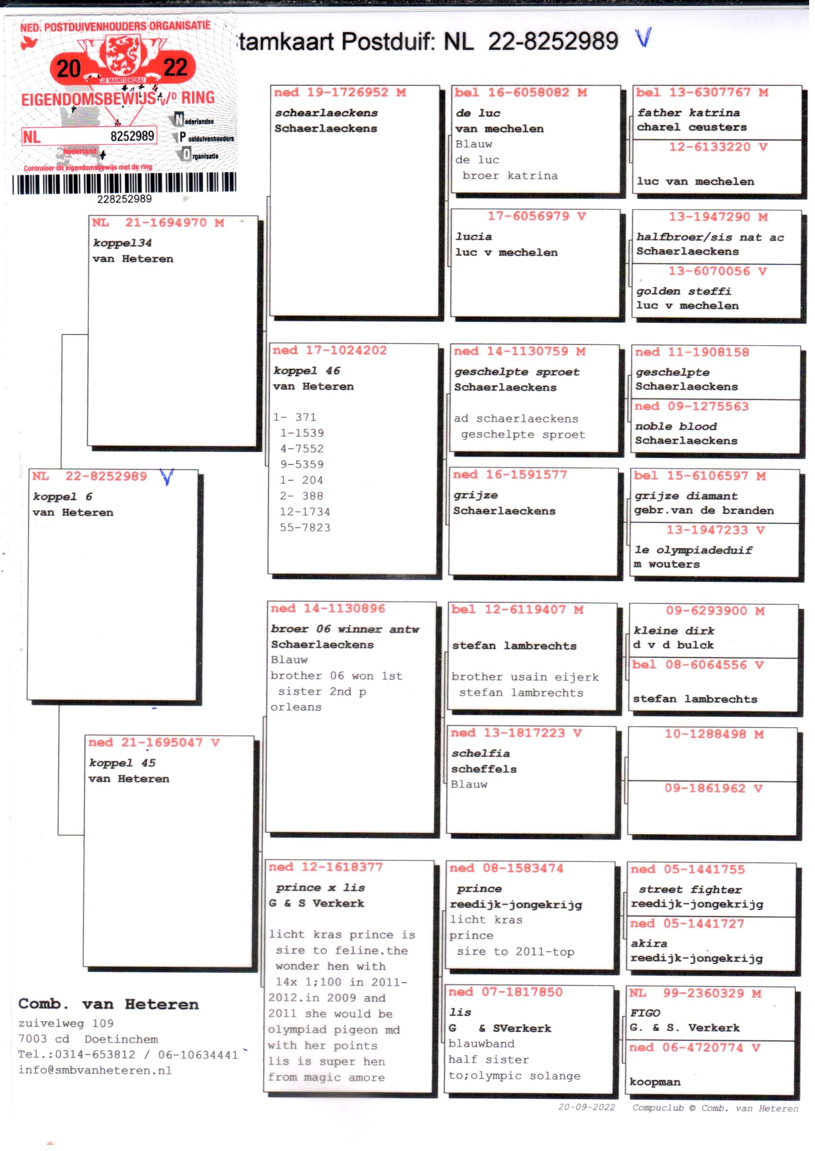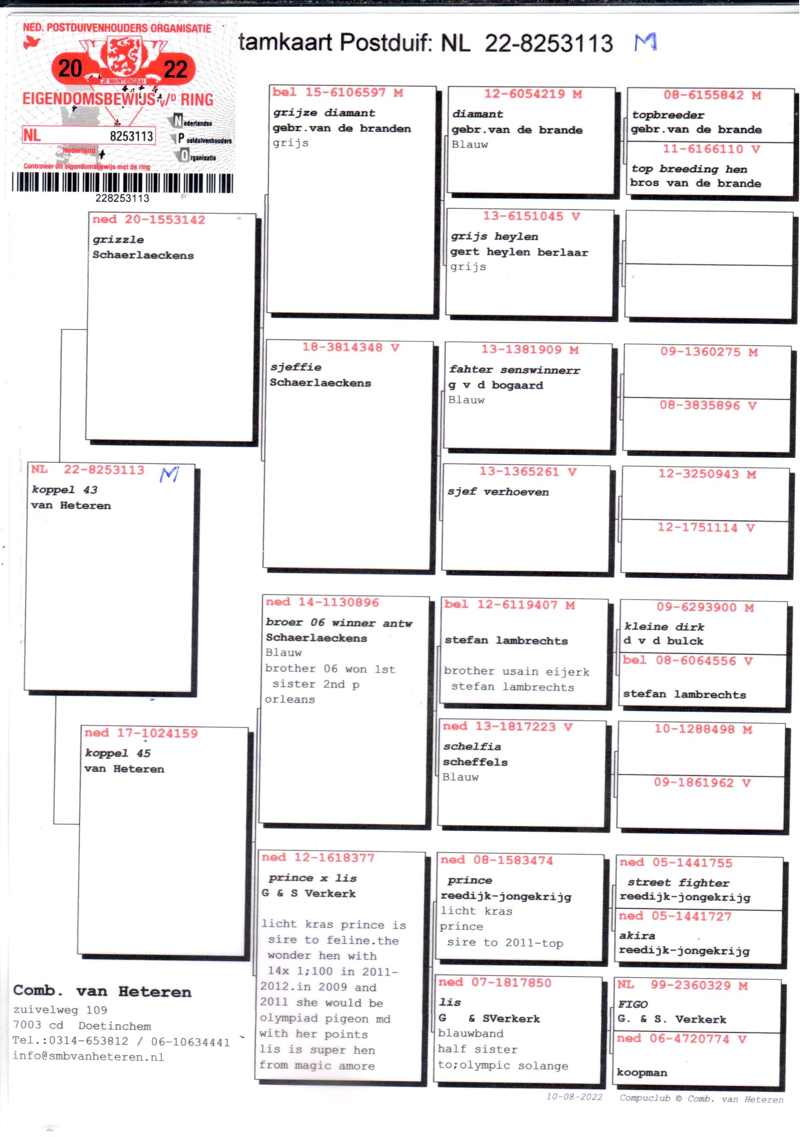 At the end of 2024, the curtain fell for good on the colony of Frans and Betsie van Heteren. Well known among our northern neighbours as one of the best lofts in the sprint and middle distance, they were not afraid to go all out with chain wins. The Combinatie van Heteren team was built on two bloodlines: G&S Verkerk and Ad Schaerlaeckens. These two world-class breeds also formed the world-famous ‘Pair 45’. This top pair produced a series of true thoroughbreds that were able to win against thousands of pigeons. Direct offspring of this pair won, among others: