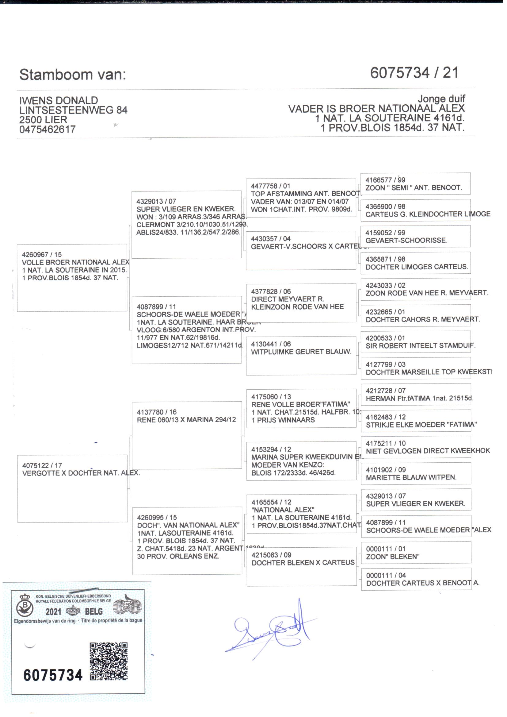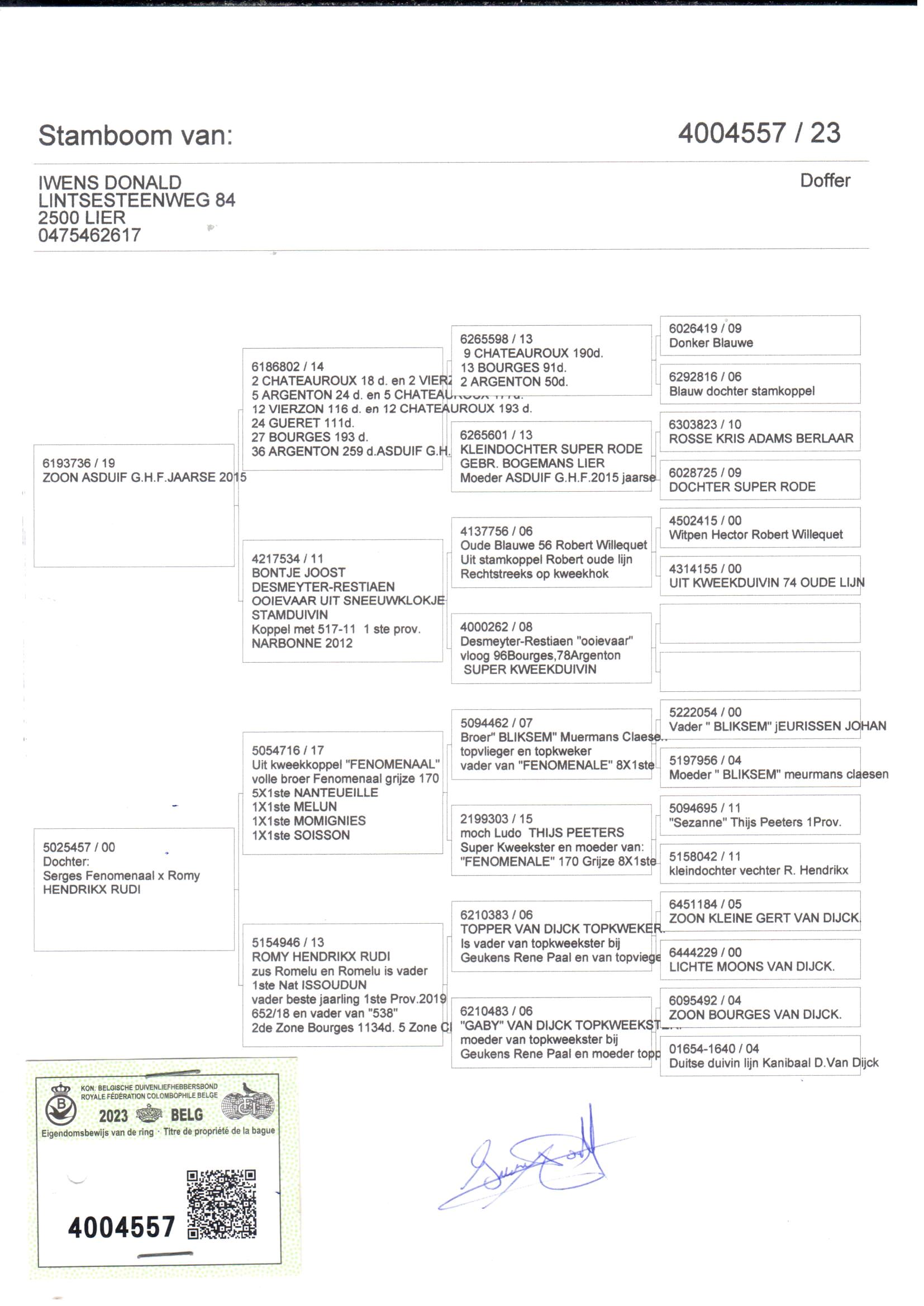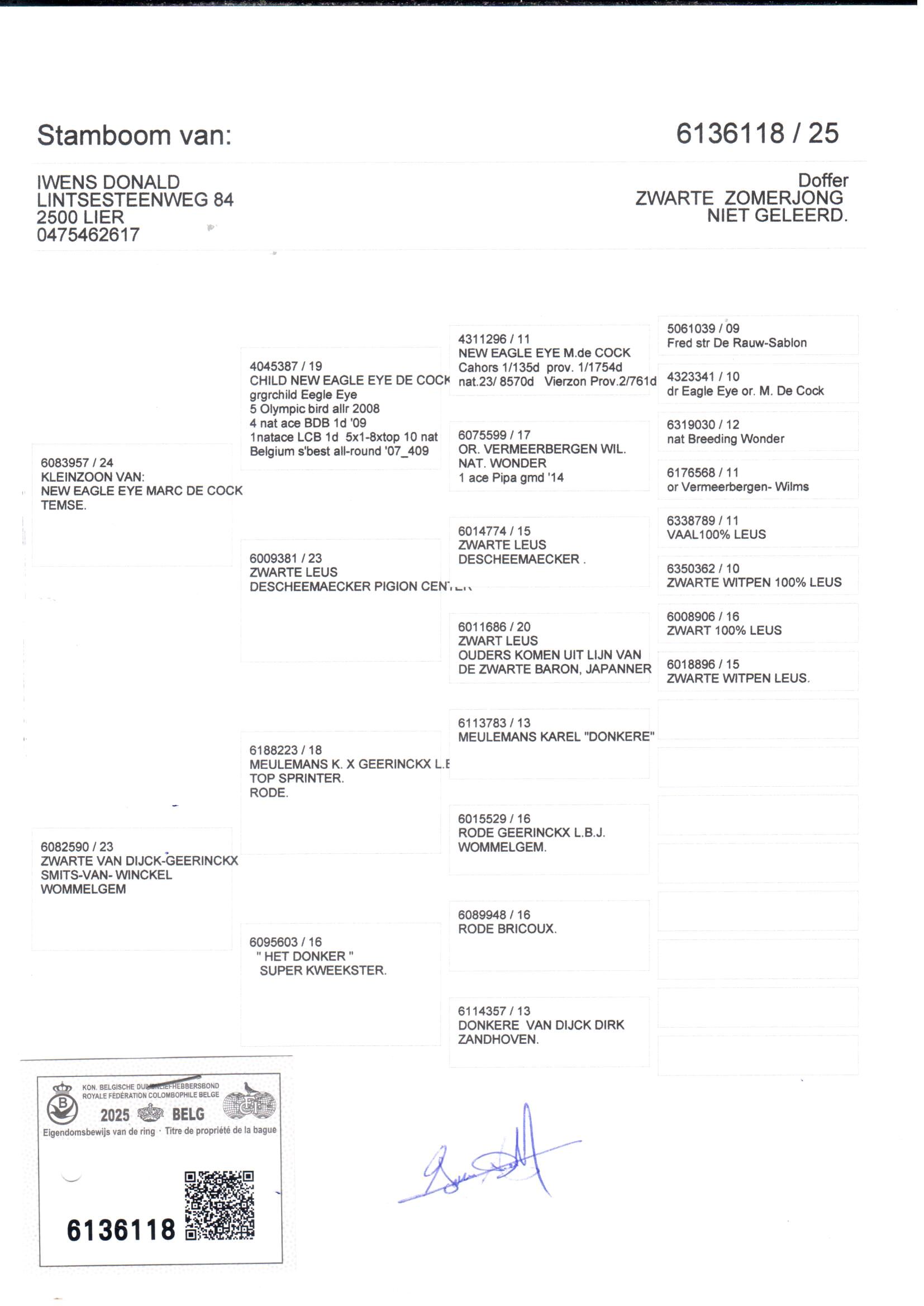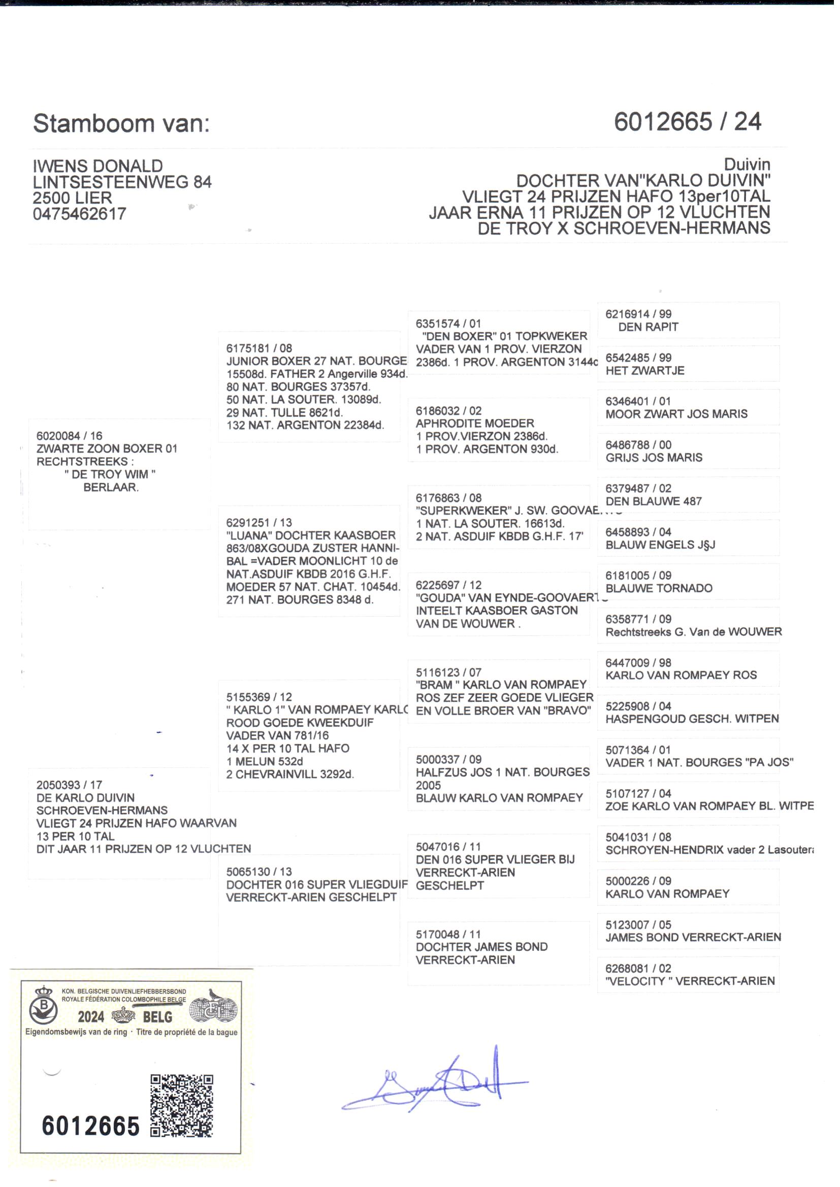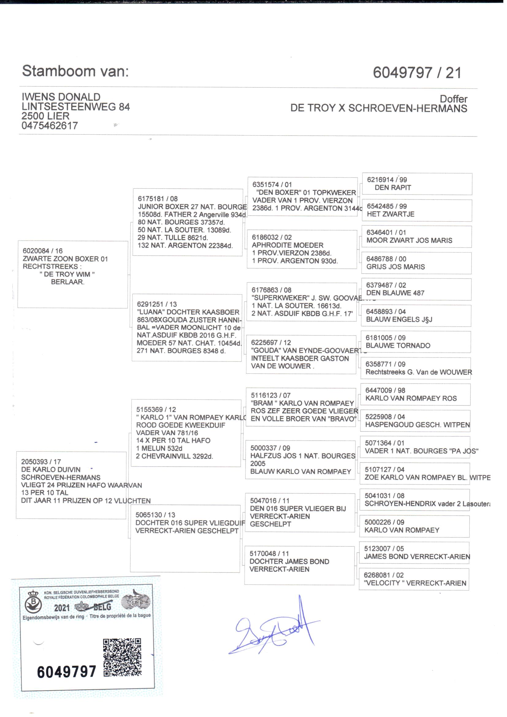 Mother BE23-6009381 – Descheemaecker Pigeon Center