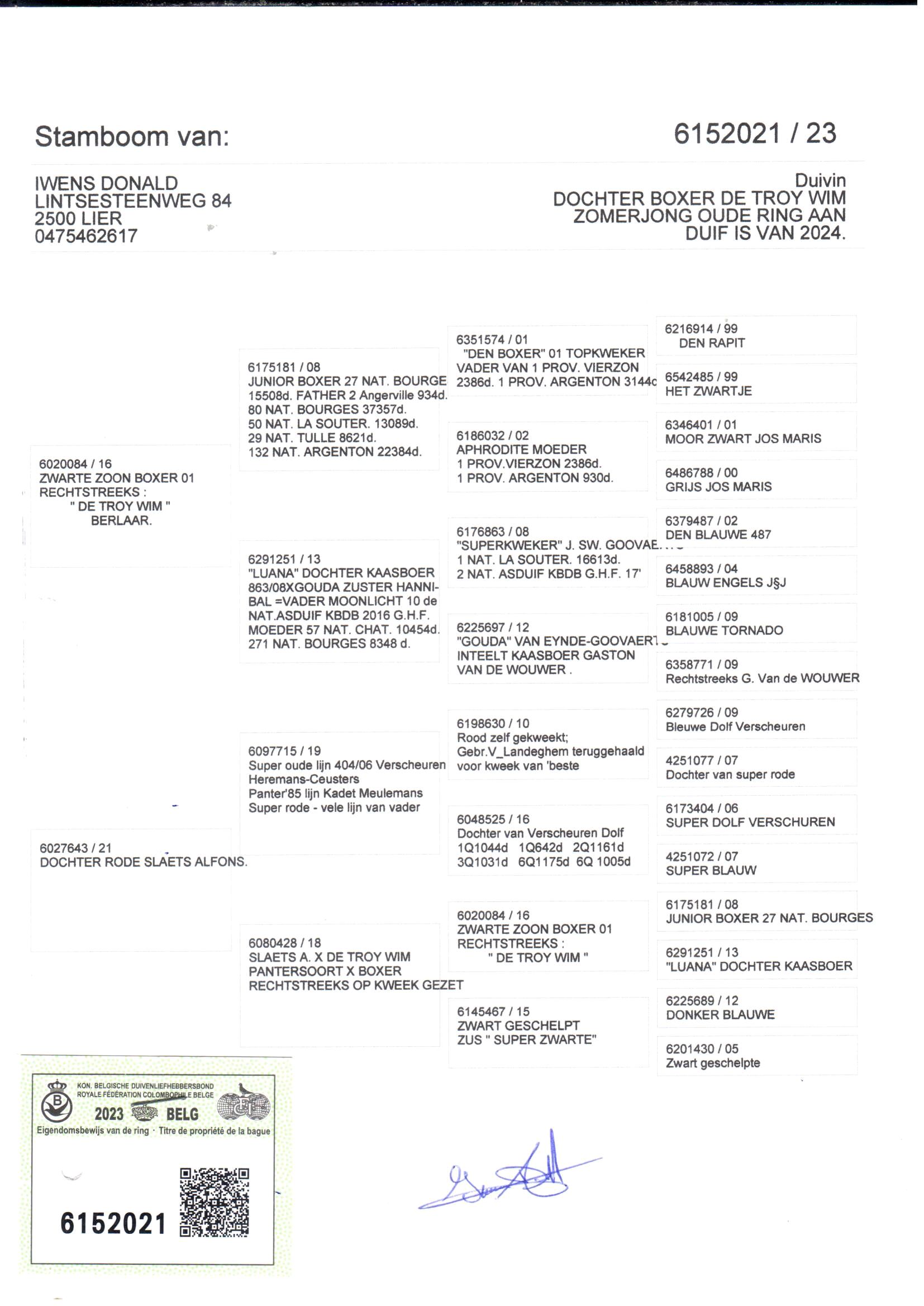 Zwarte zoon Boxer x Dochter Rode Slaets Alfons