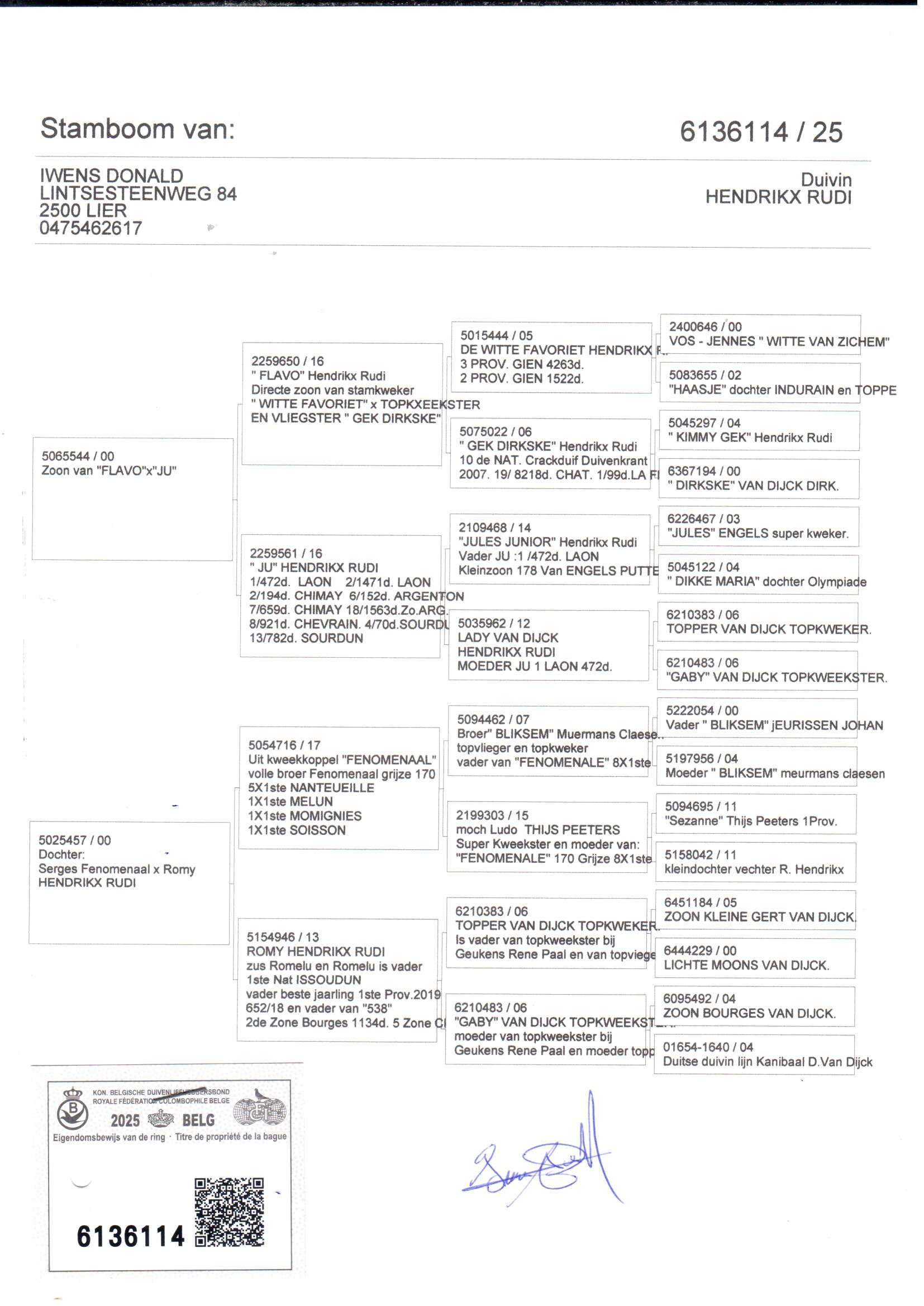 Zoon Flavo x Dochter kweekkoppel Fenomenaal