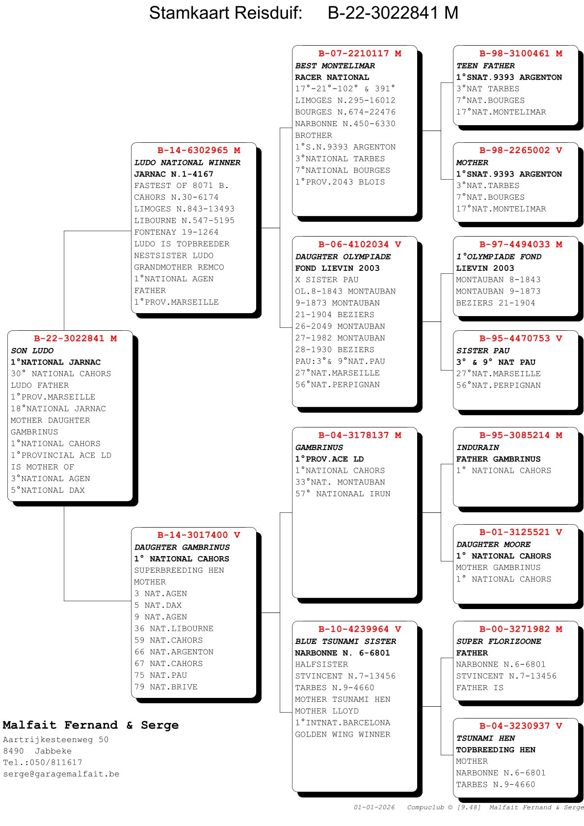 Mother is daughter of “Ludo”; 1st Nat Jarnac – fastest of 8071d and daughter of “Gambrinus”; 1st Nat Cahors