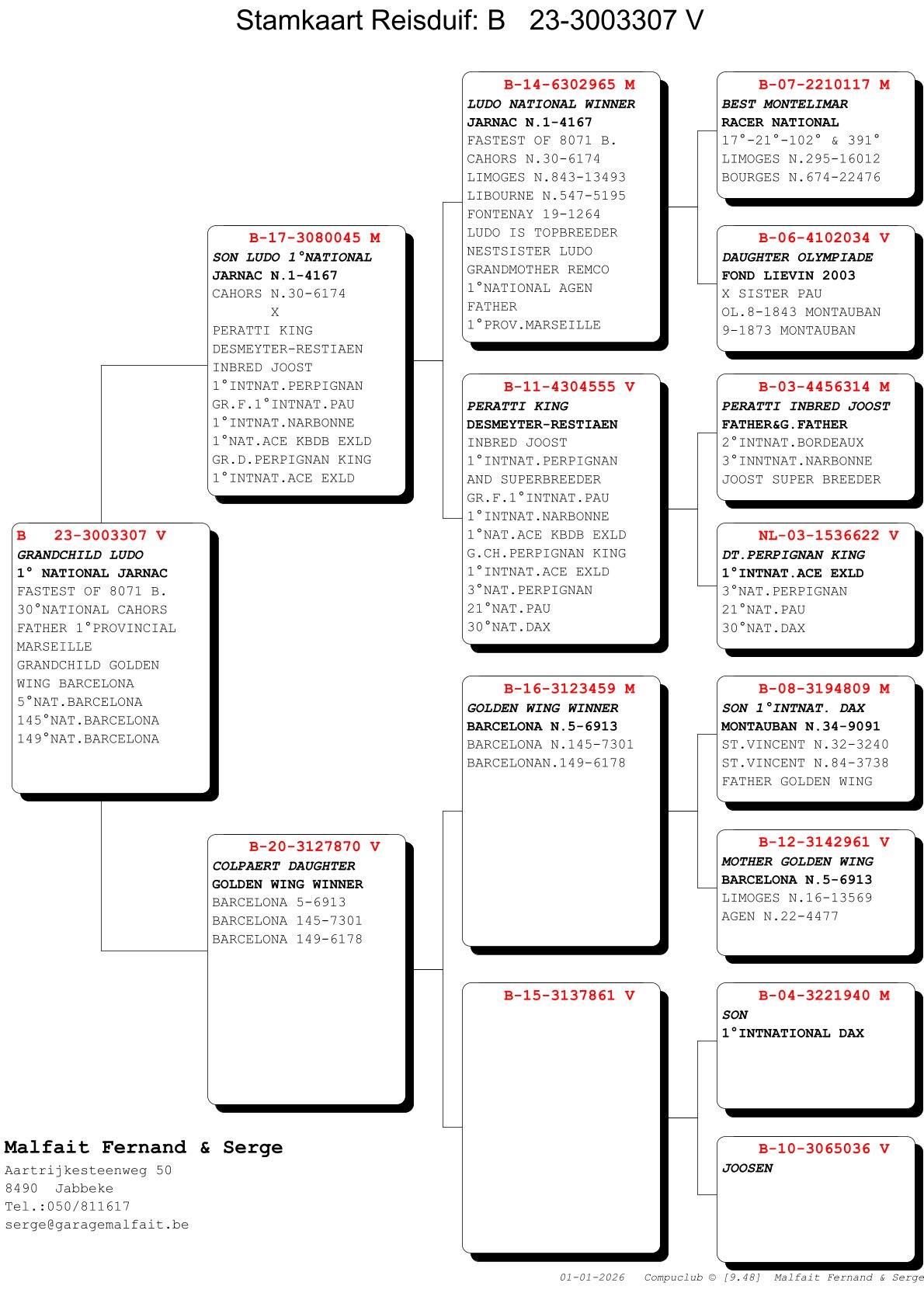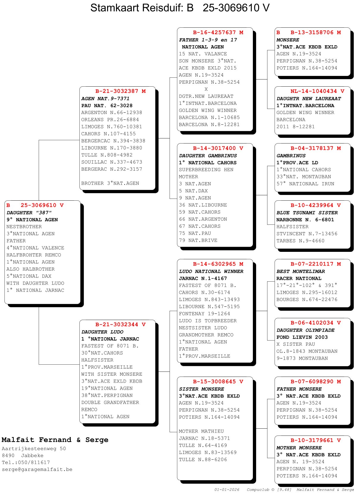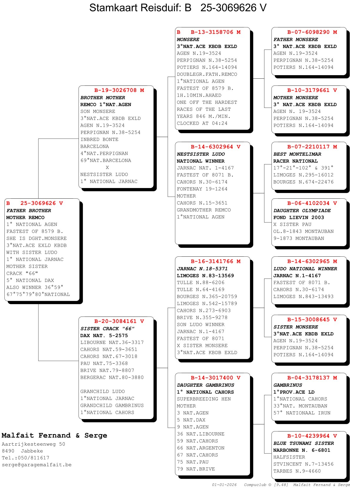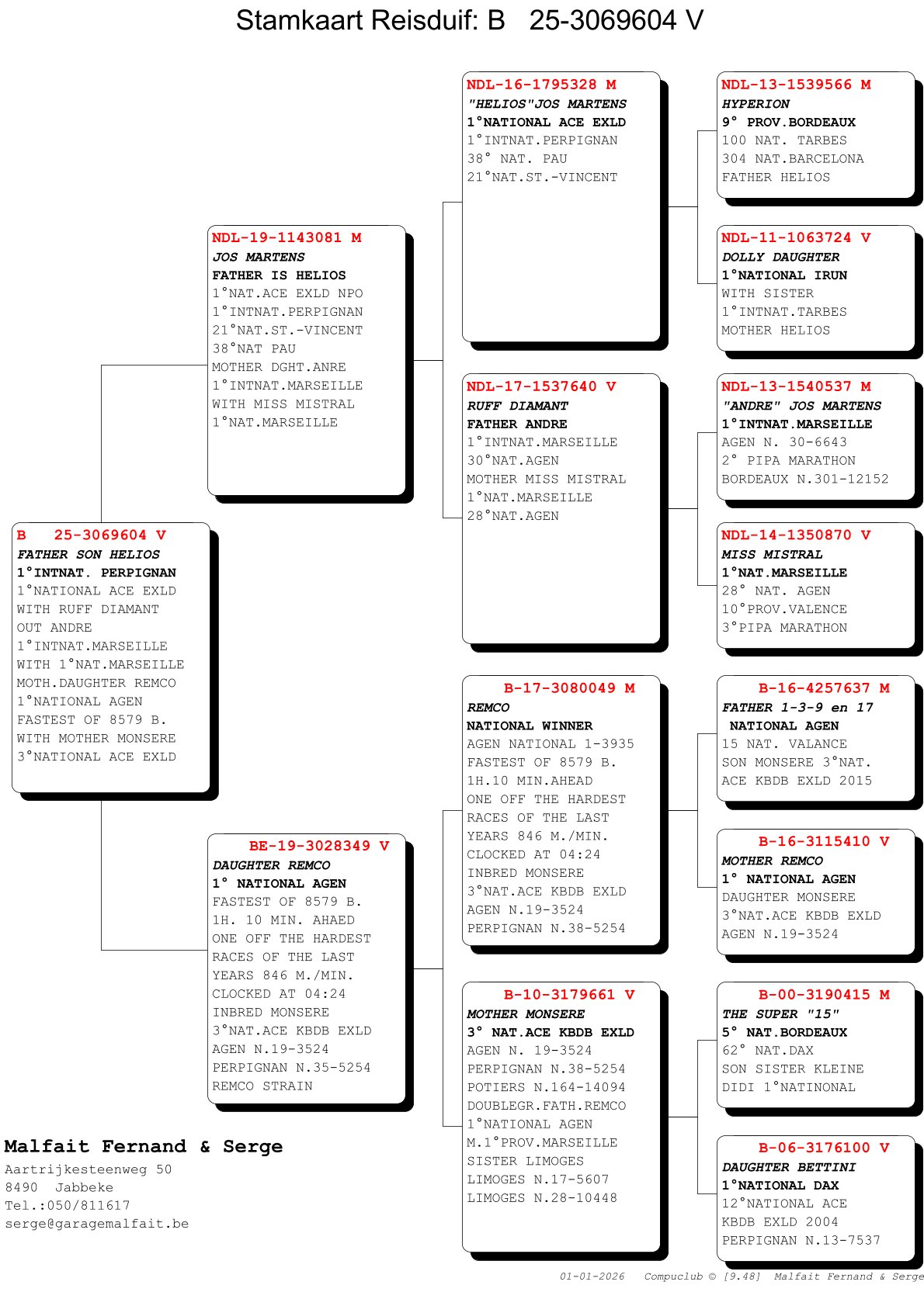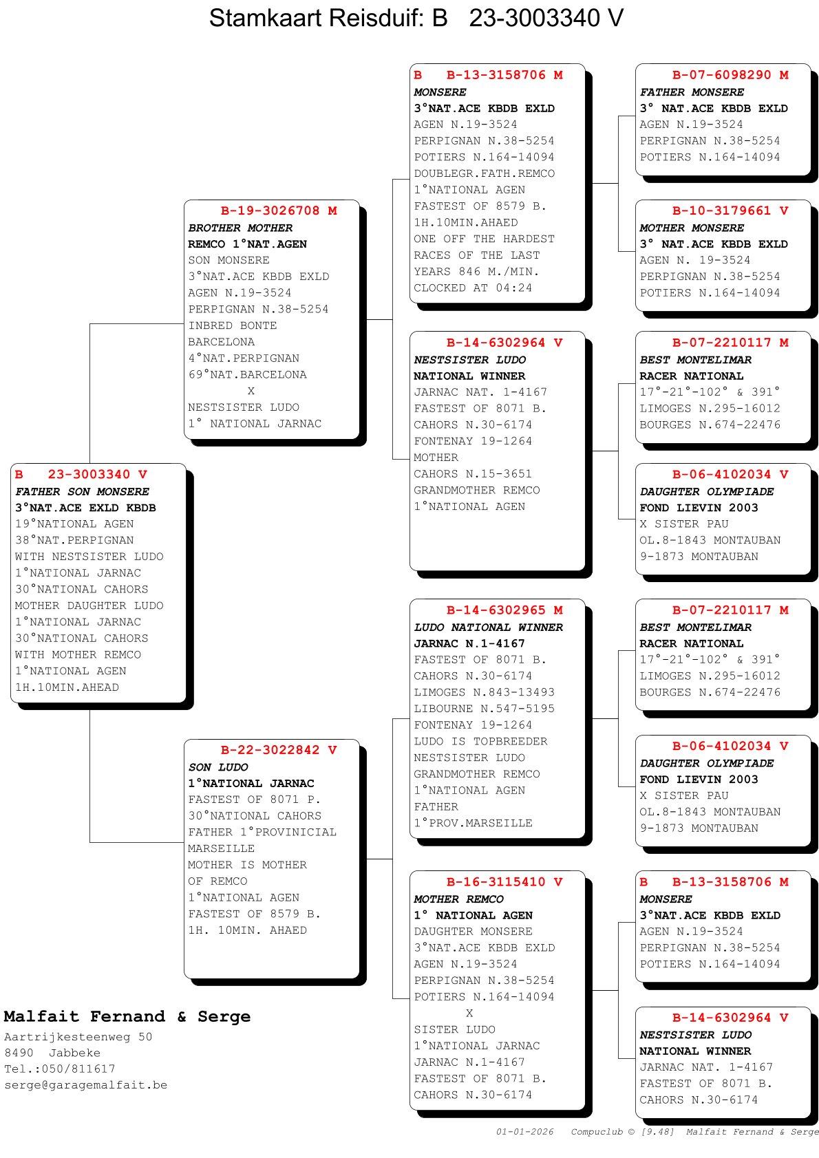 Nest sister of “Ludo” is grandmother of “Remco”; 1st Nat Agen and father of 1st Prov Marseille